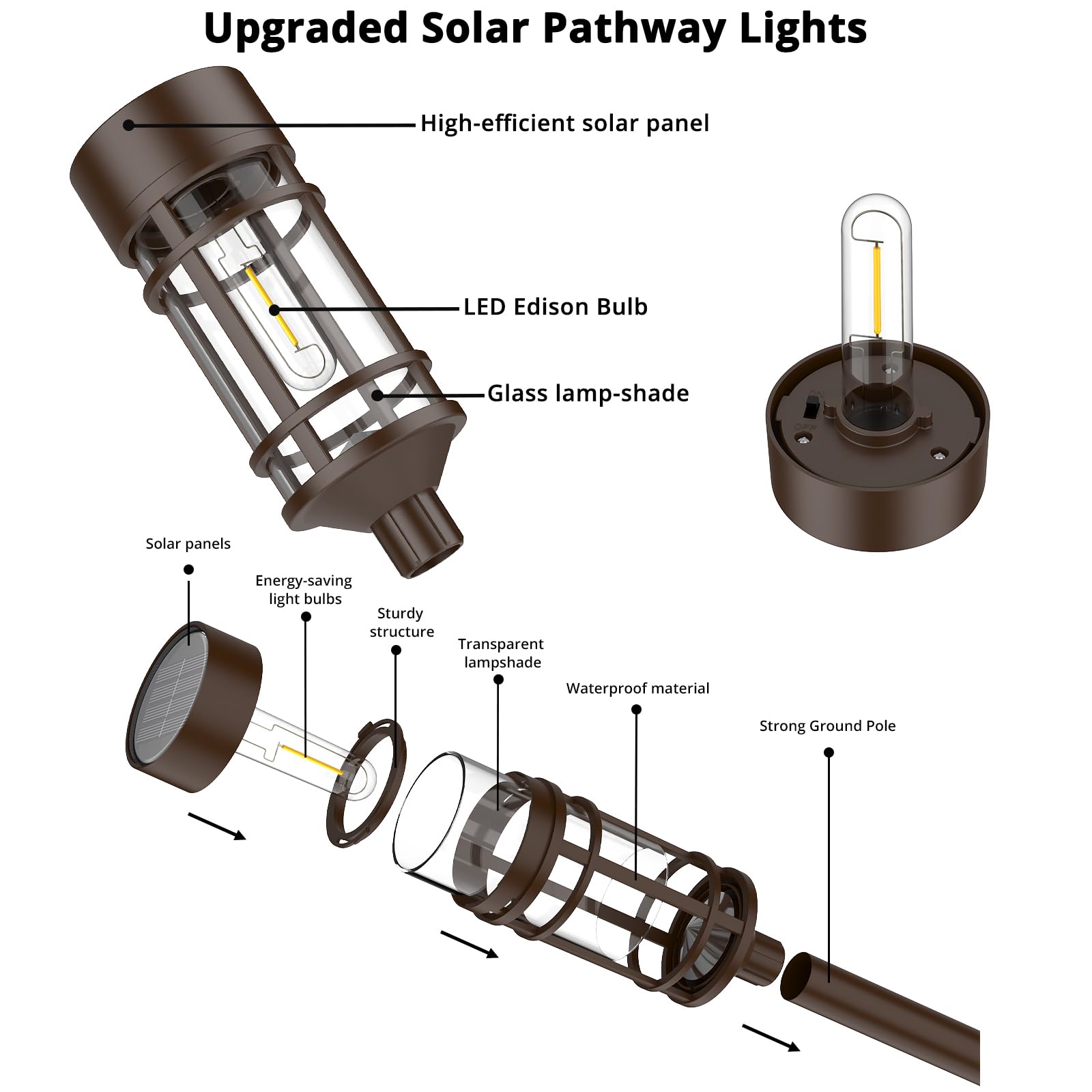 - Made to Last : Our outdoor lights are of quality material that includes: Glass housing, stainless steel poles, durable stake. A rust-resistant powder coating adds additional weather resistance with a vintage metallic texture.