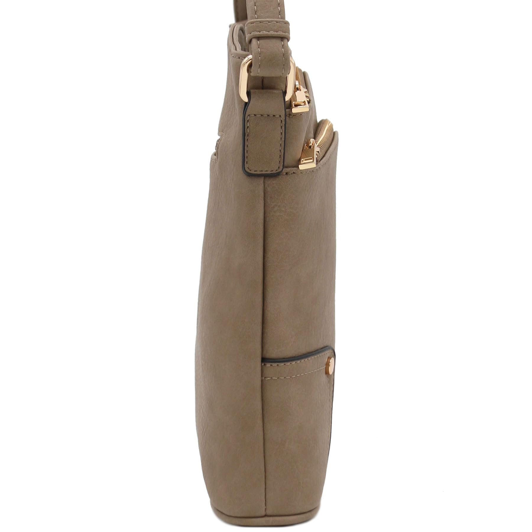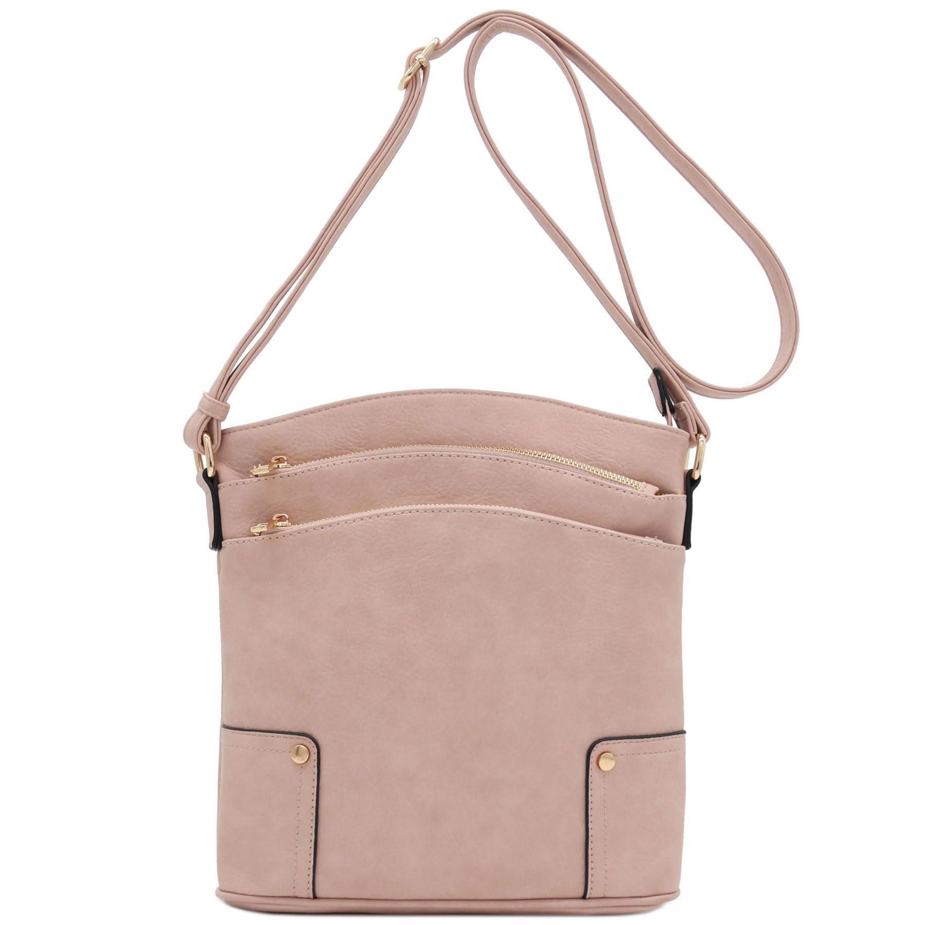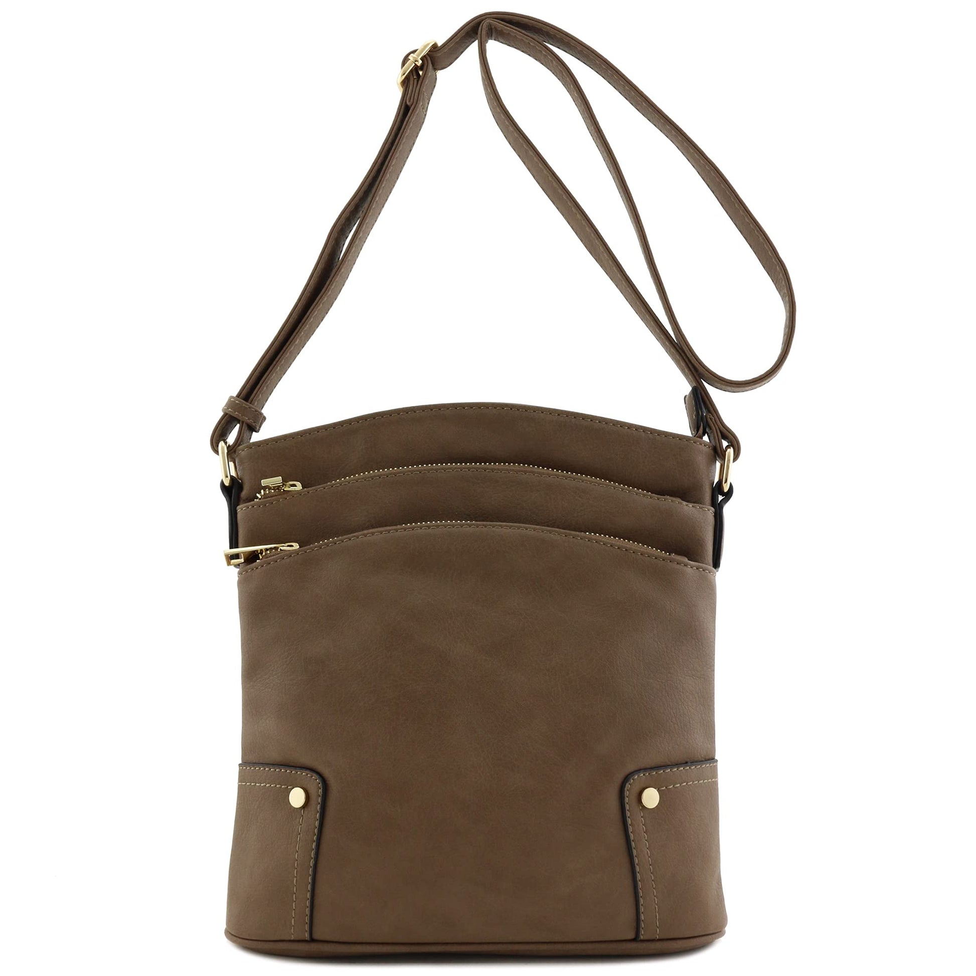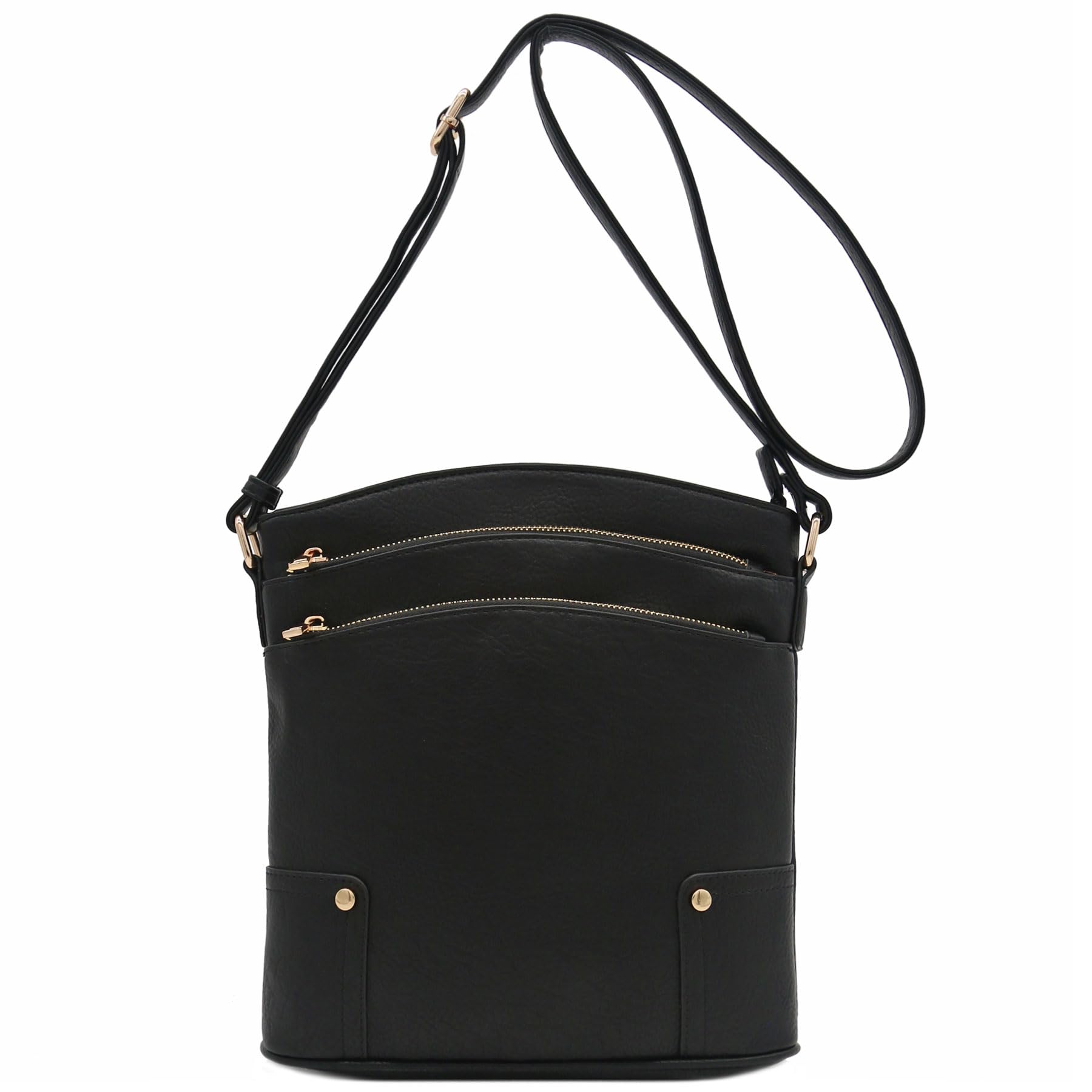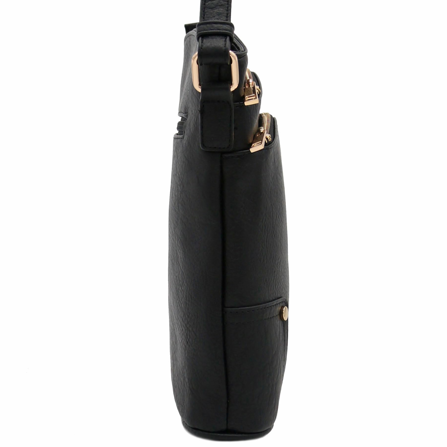 FashionPuzzle Triple Zipper Pocket Medium Crossbody Bag