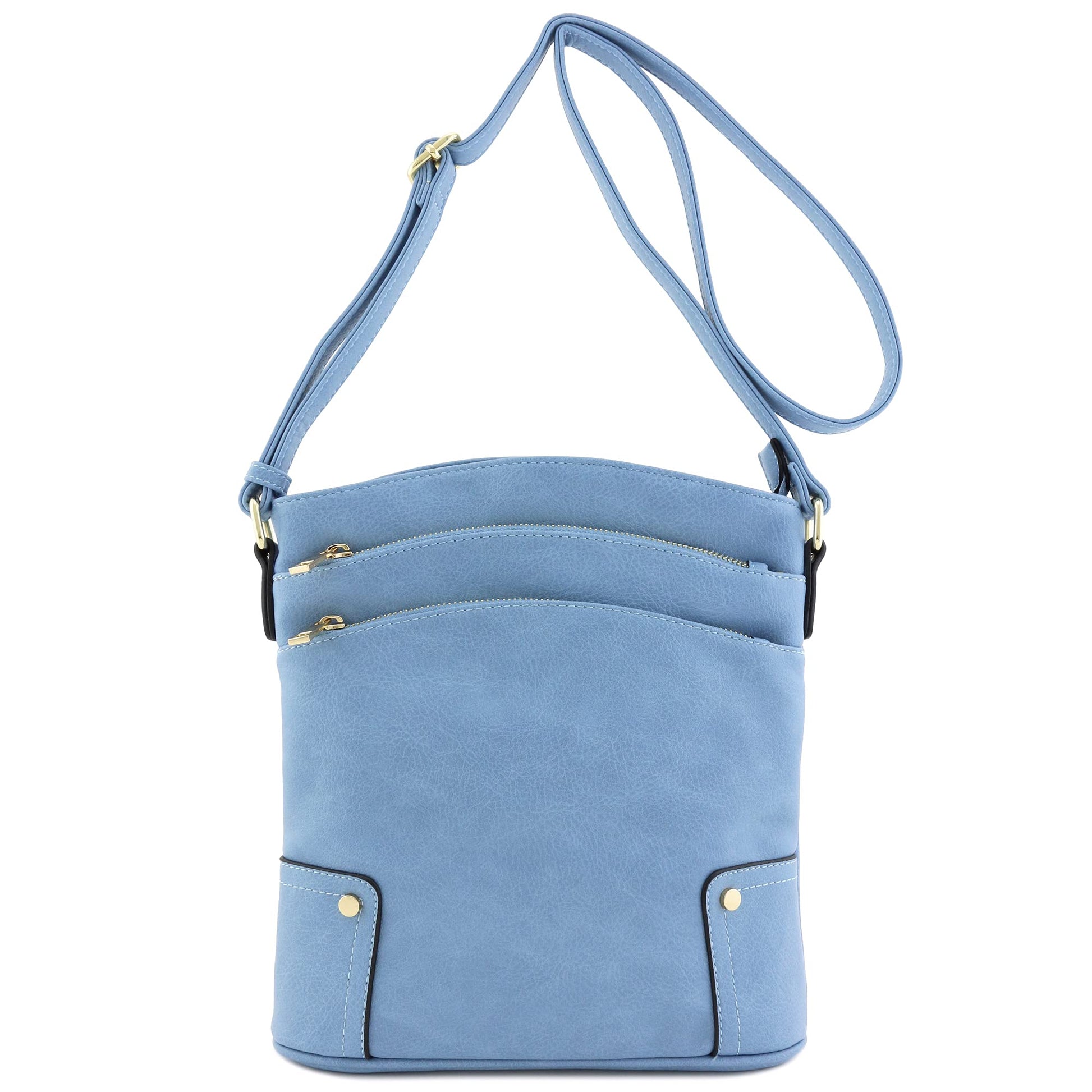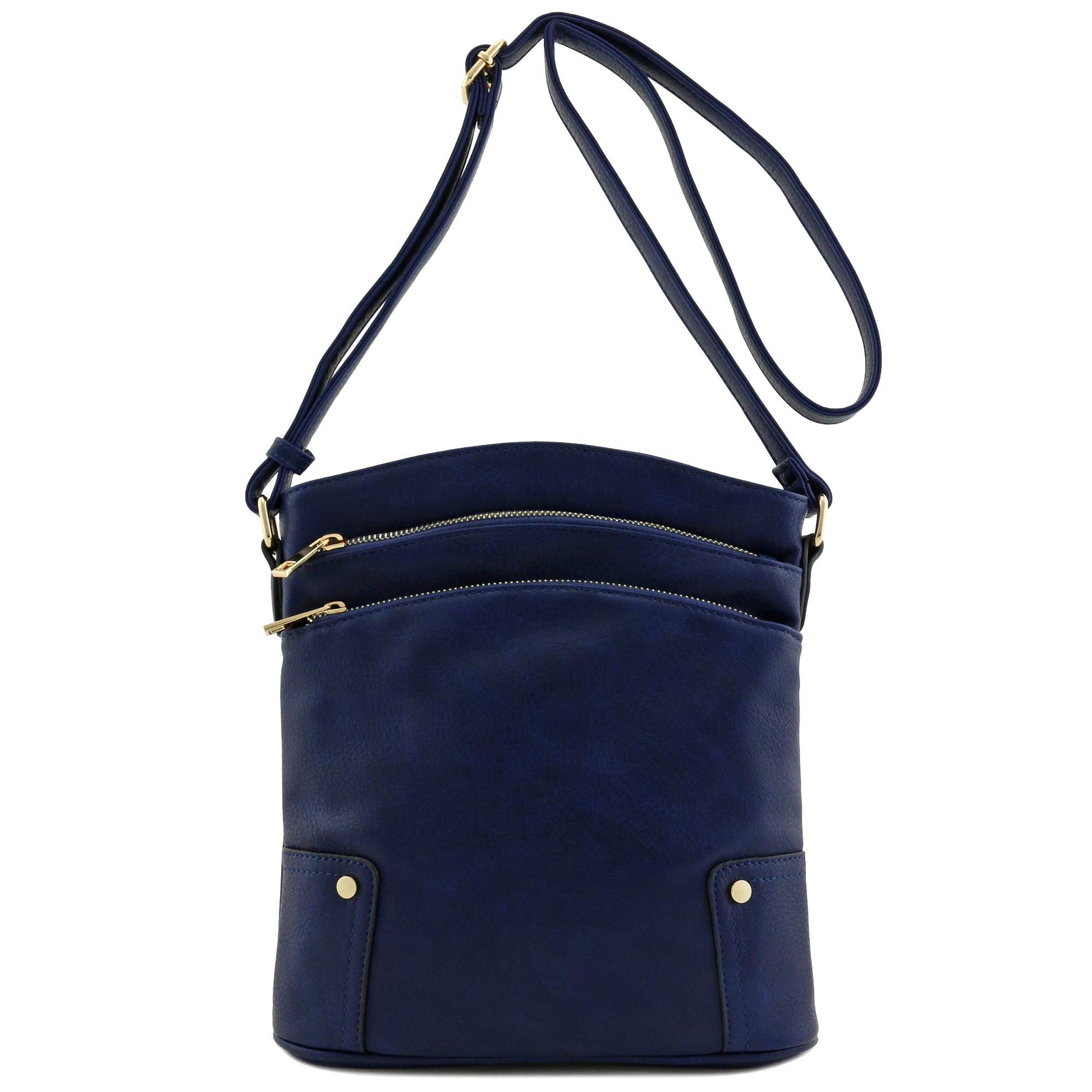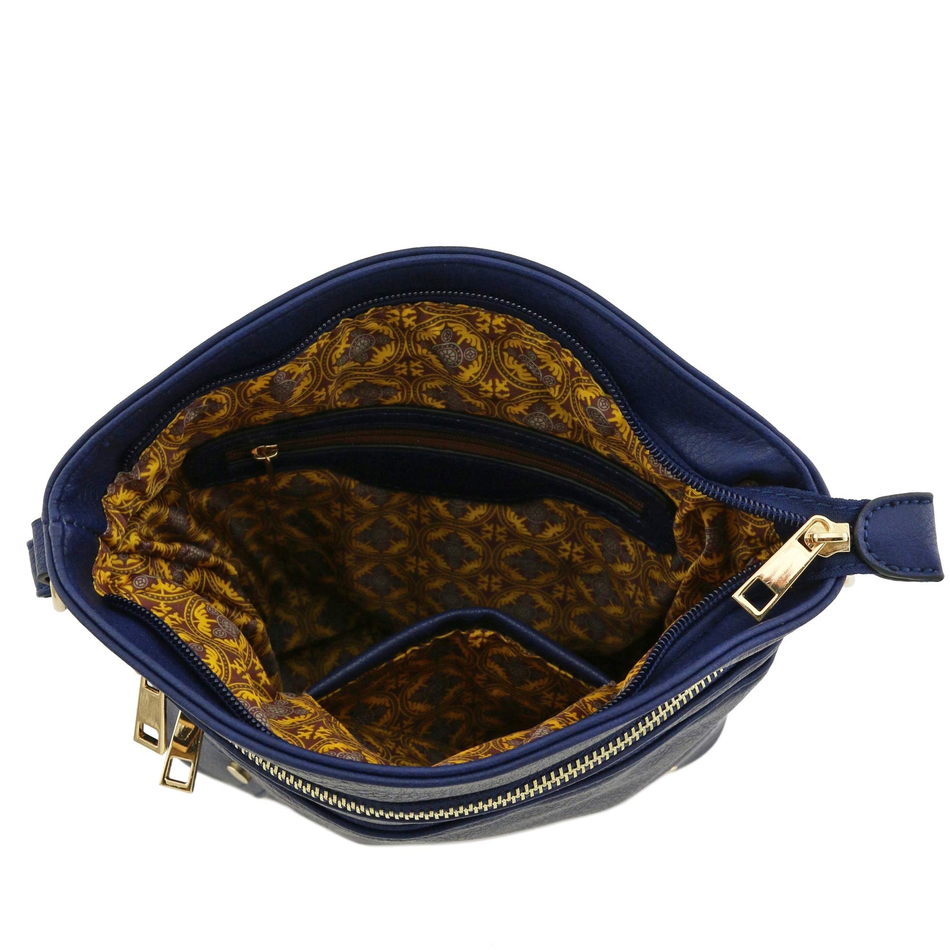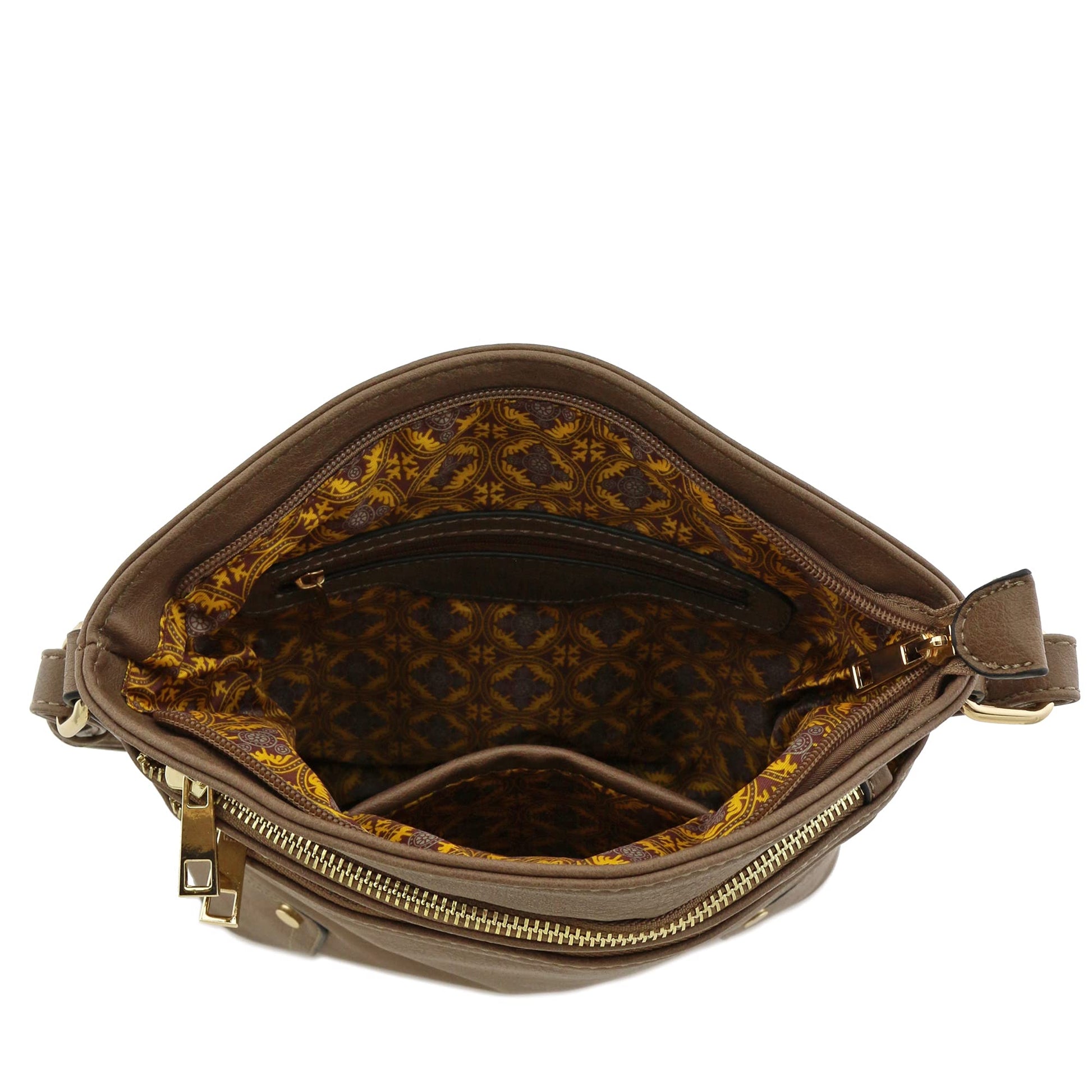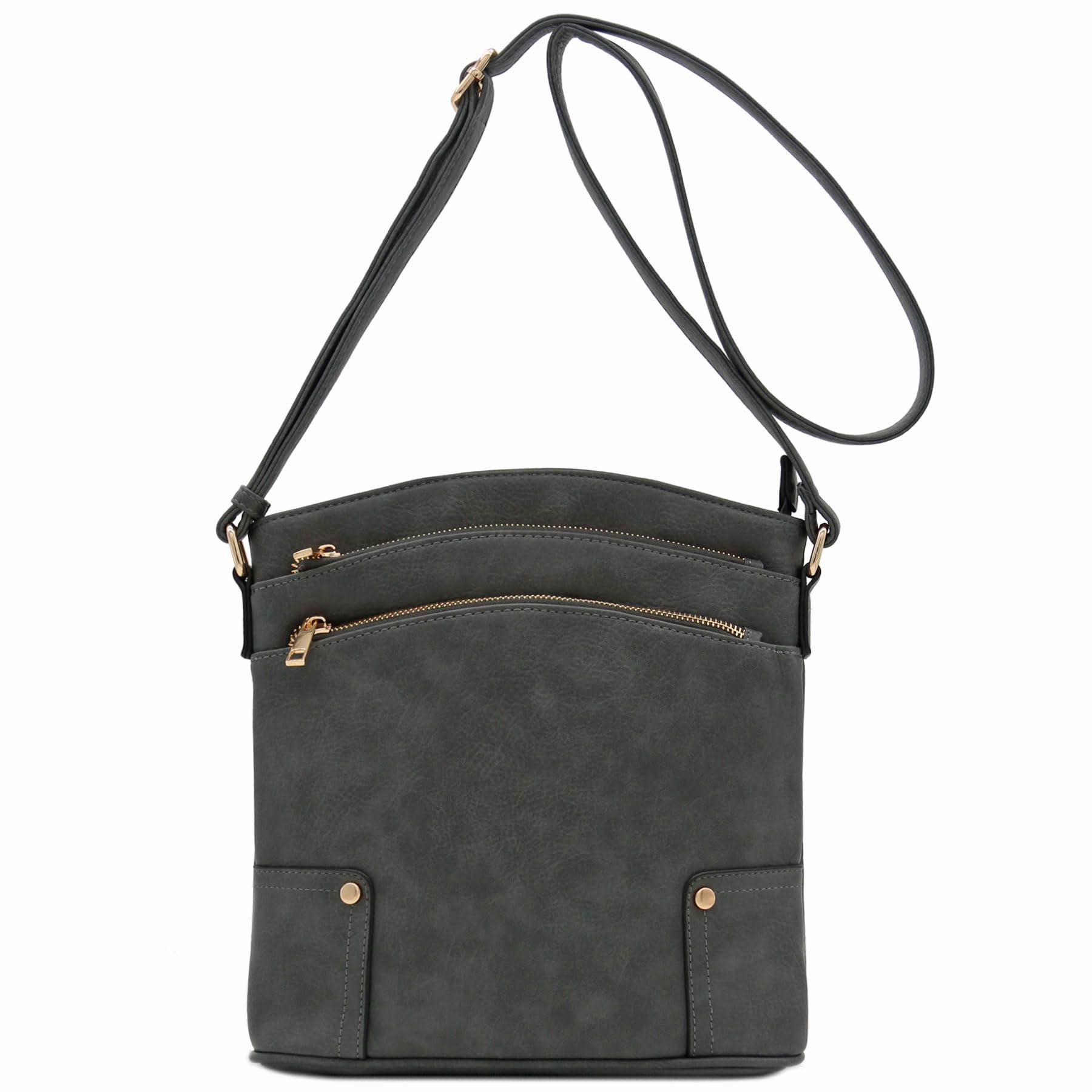 FashionPuzzle Triple Zipper Pocket Medium Crossbody Bag