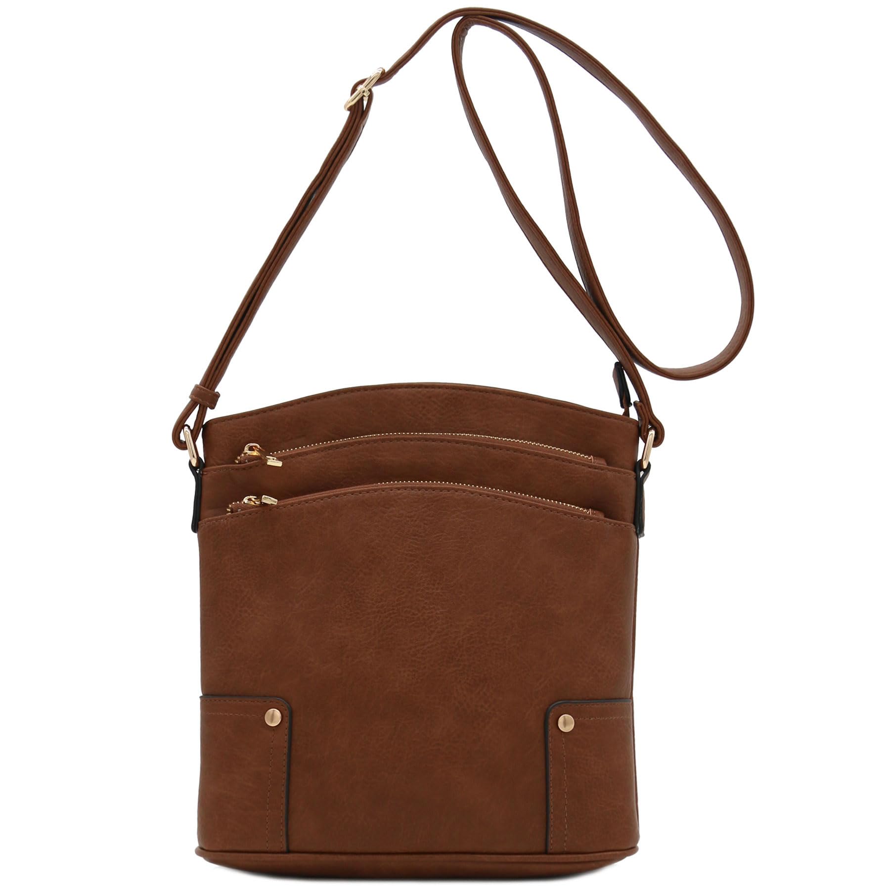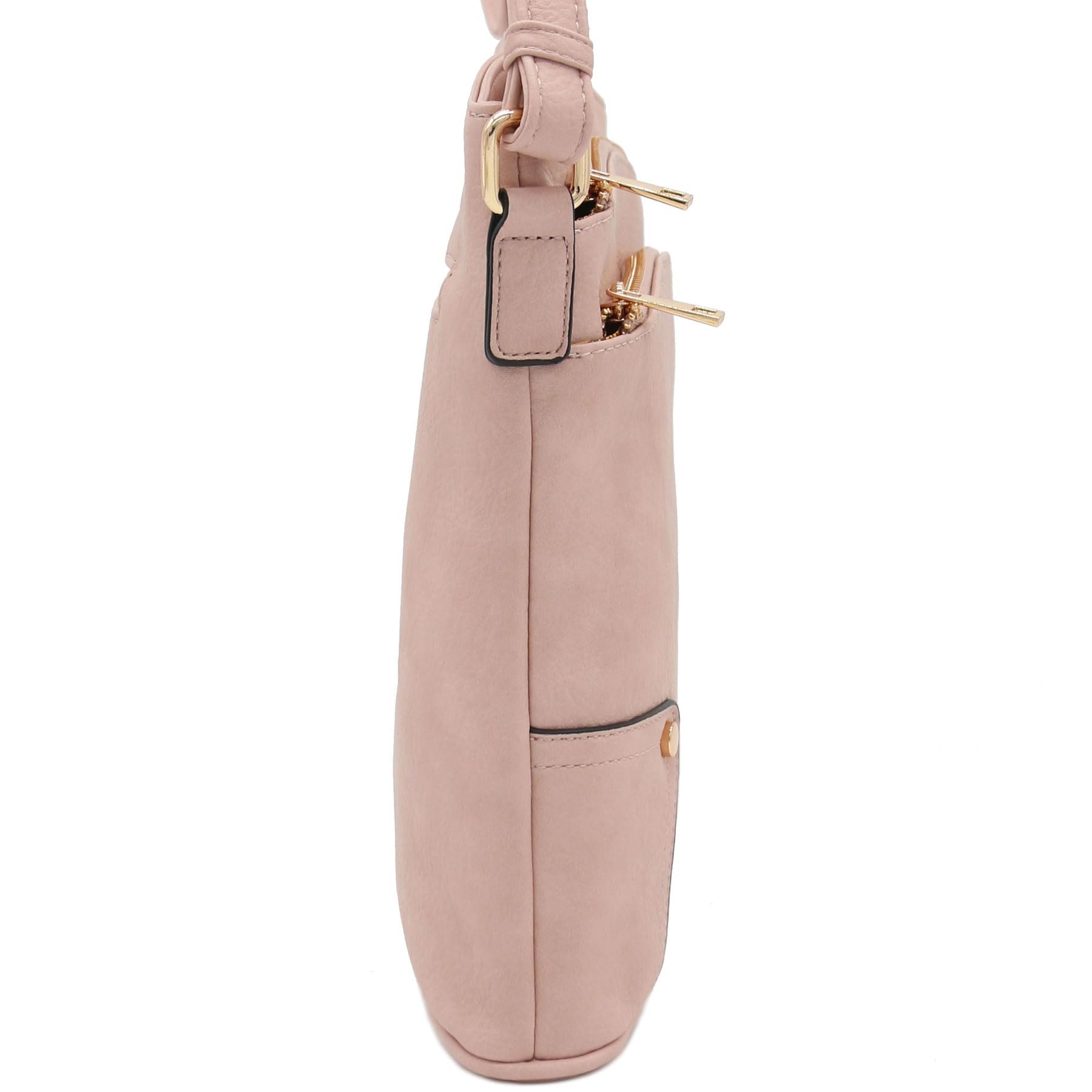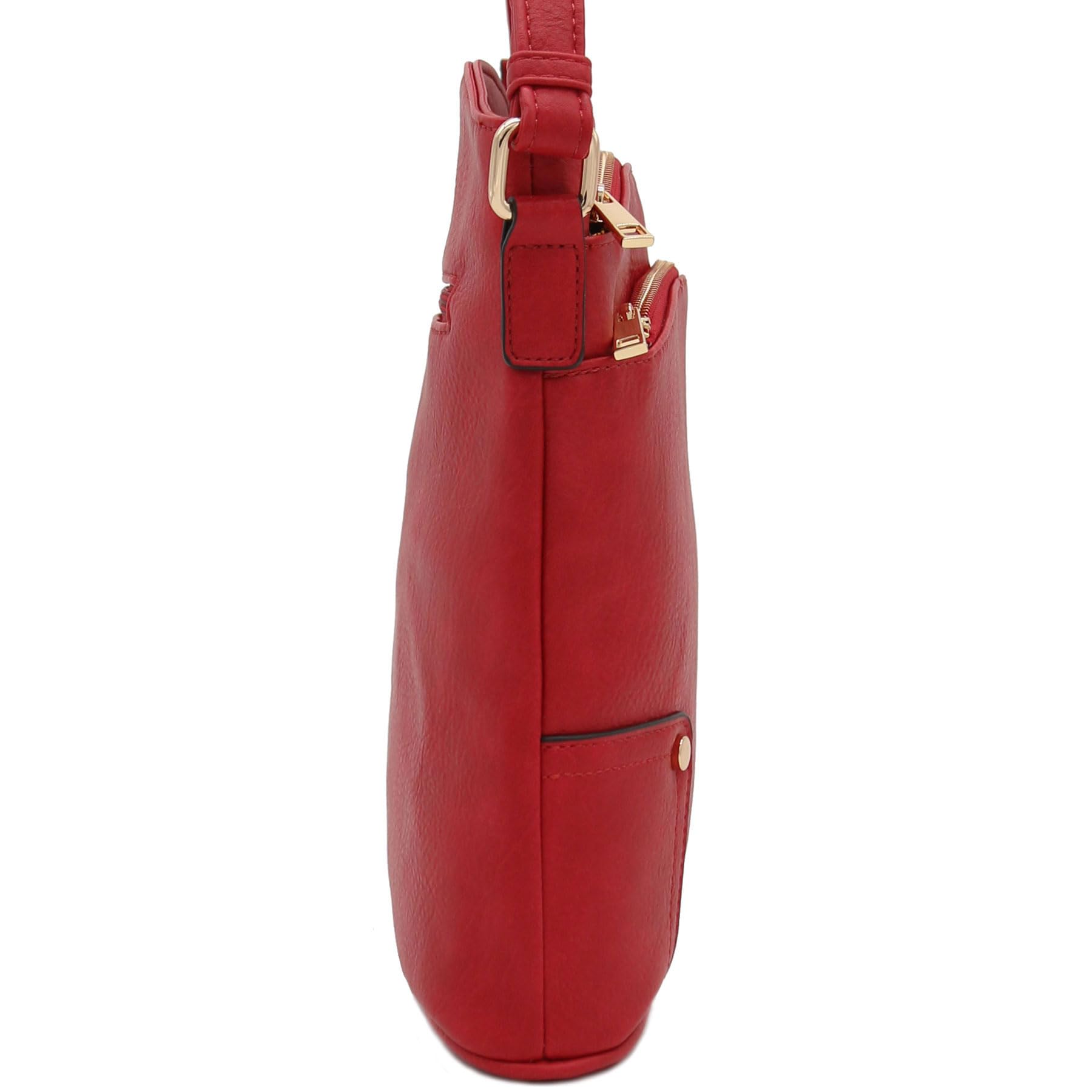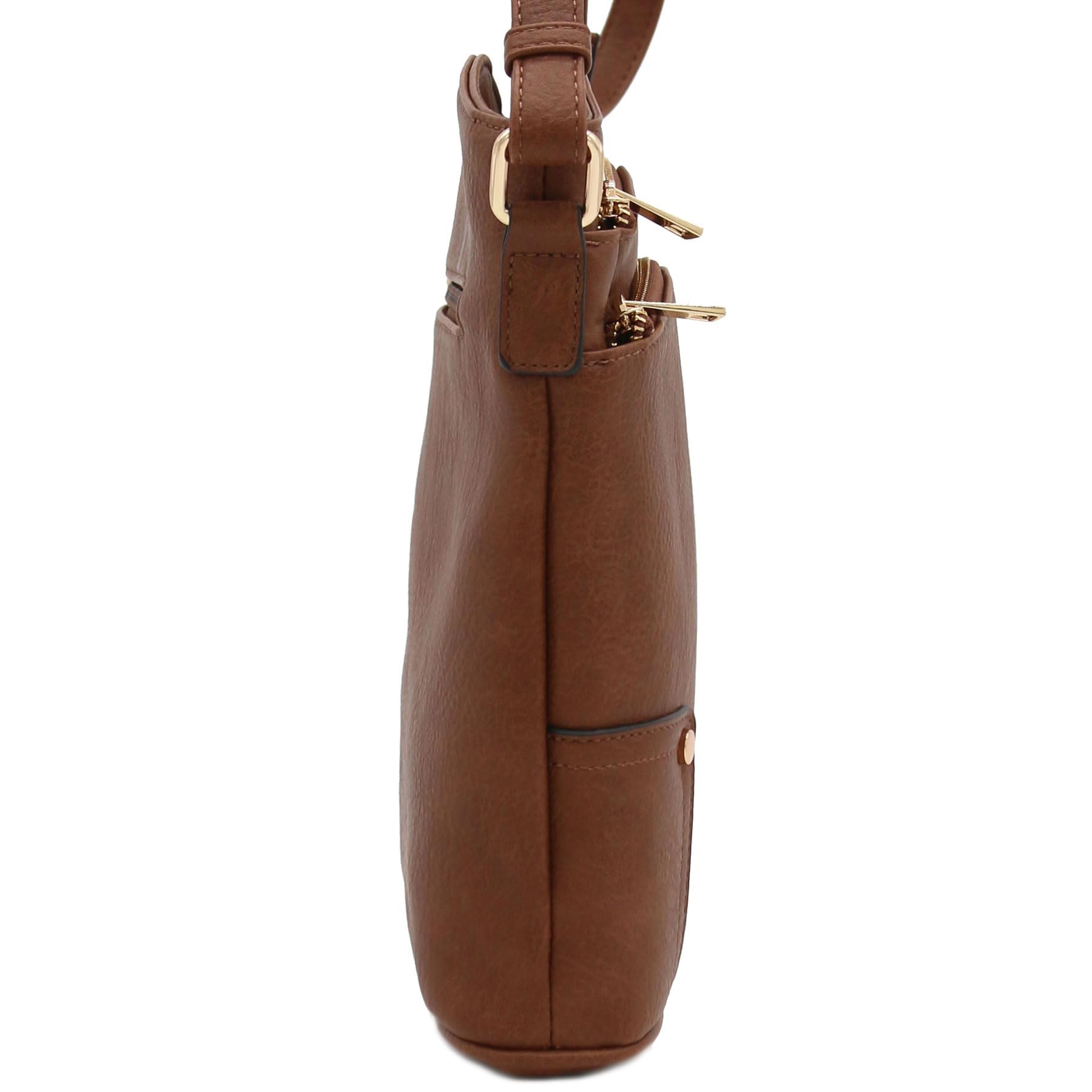 FashionPuzzle Triple Zipper Pocket Medium Crossbody Bag