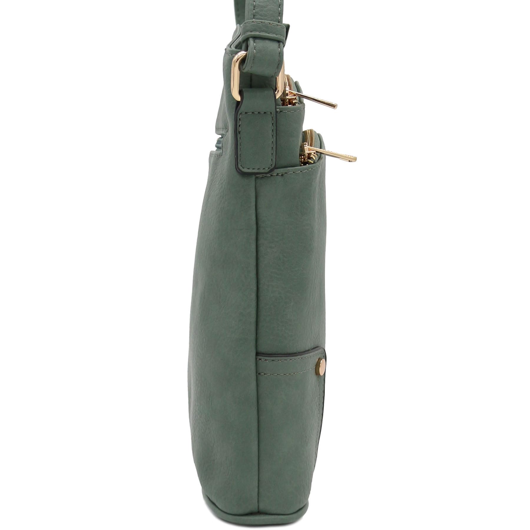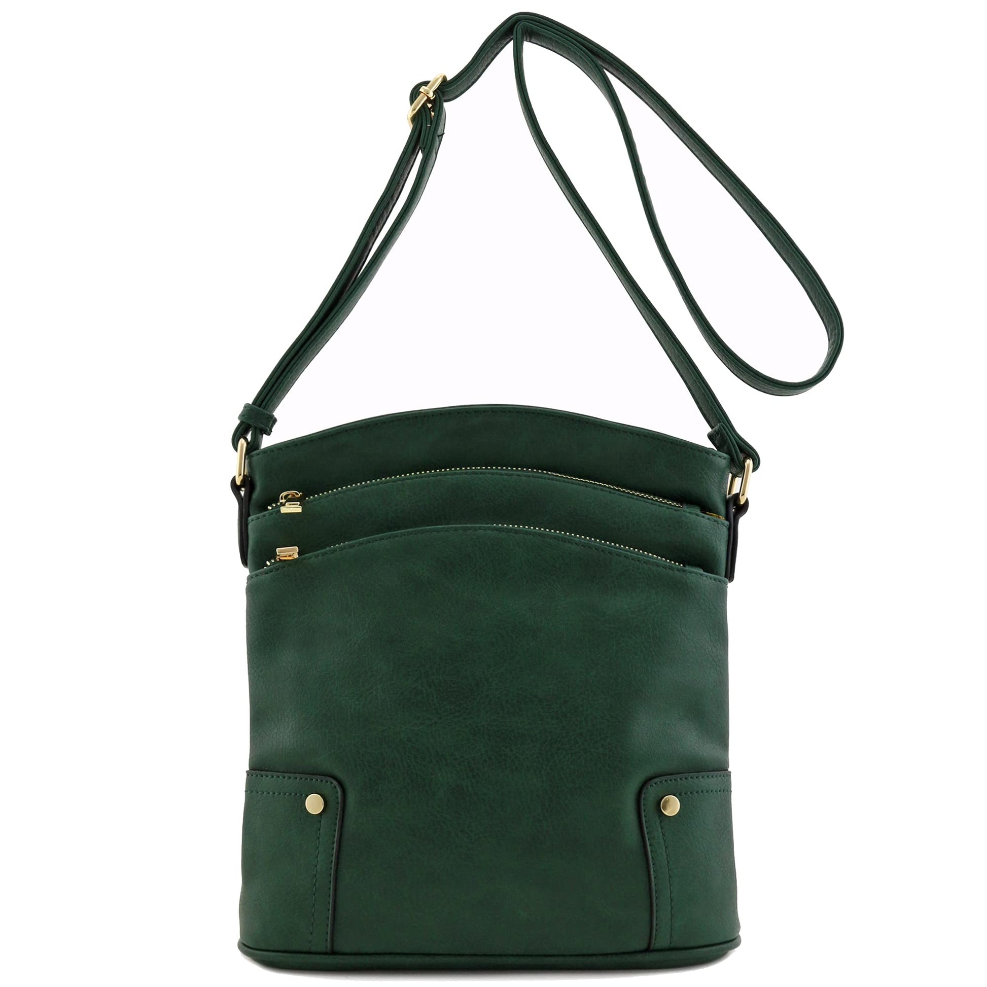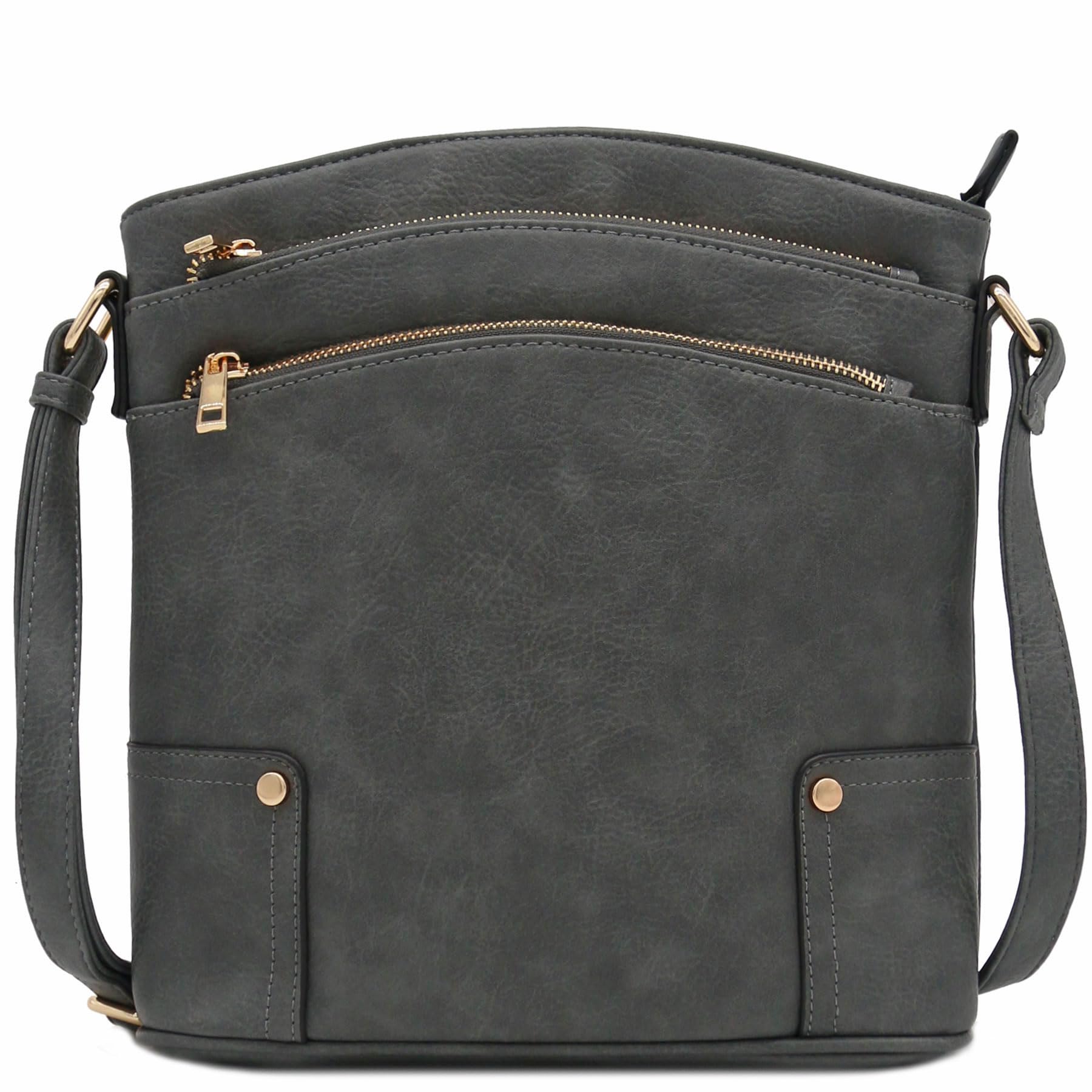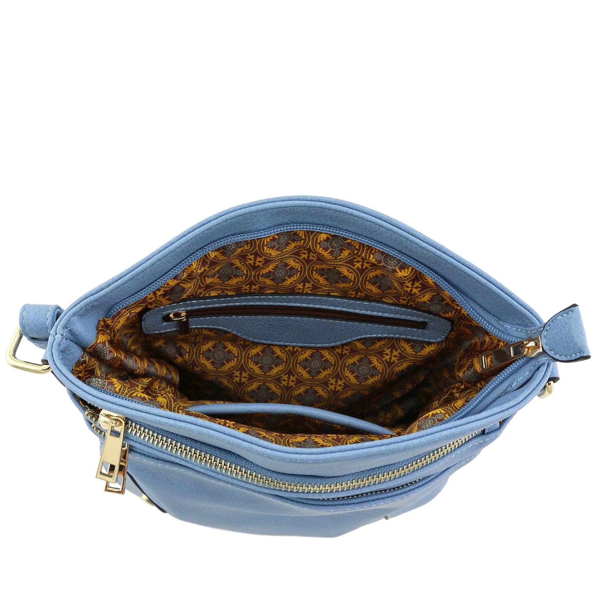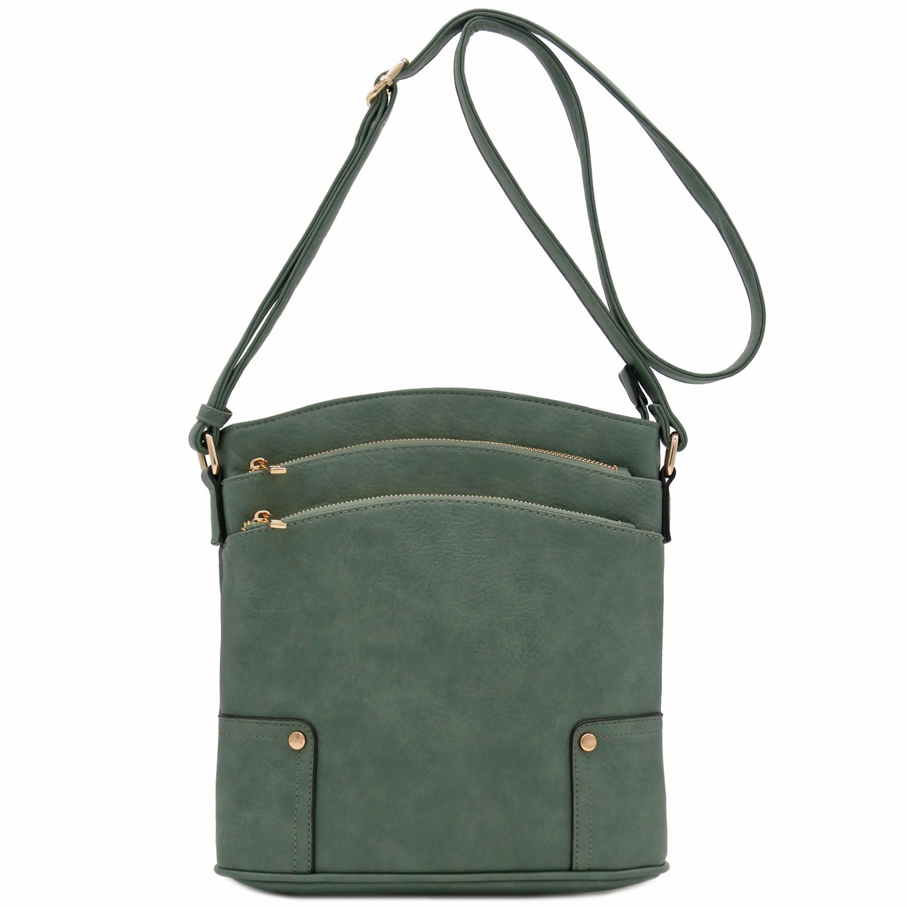 FashionPuzzle Triple Zipper Pocket Medium Crossbody Bag
