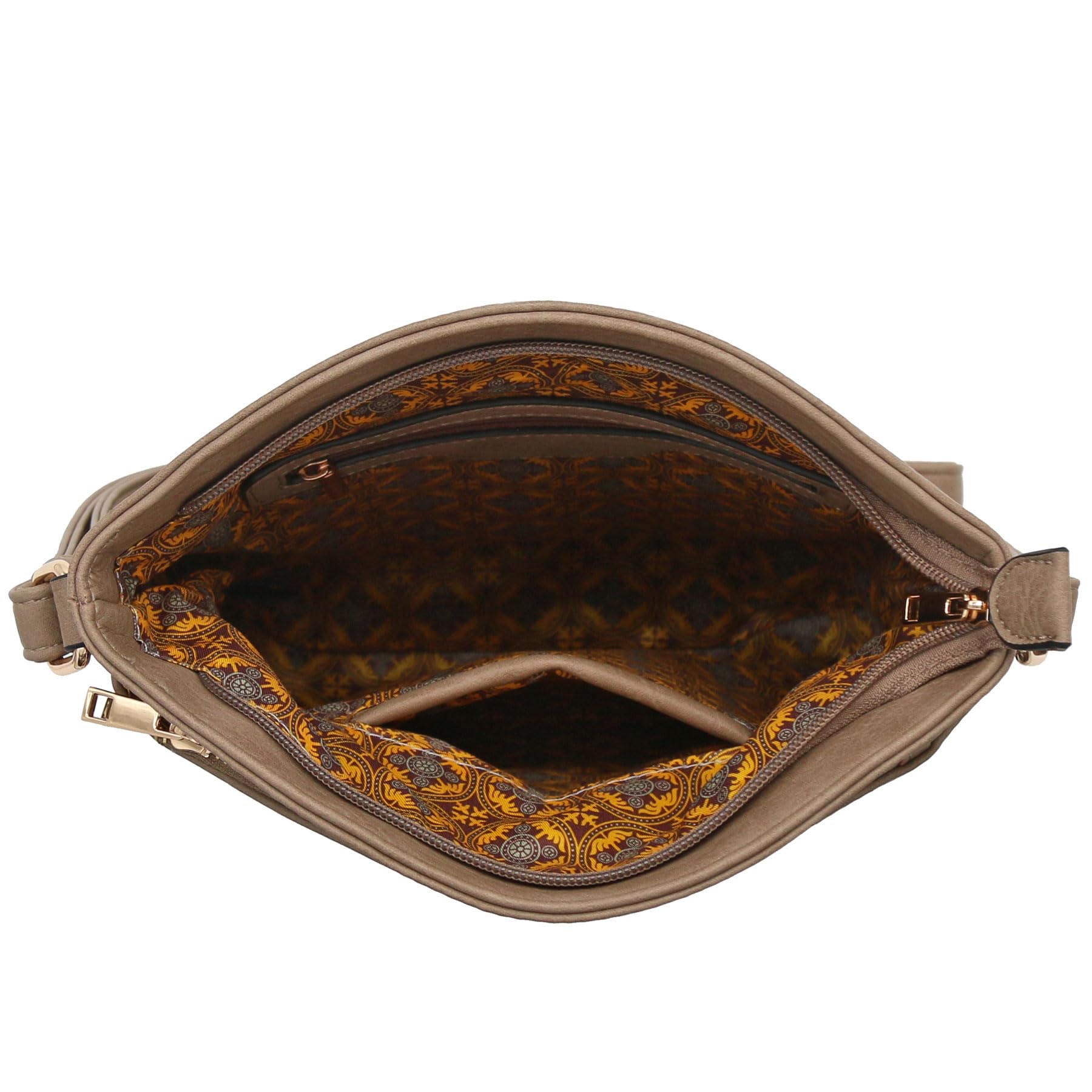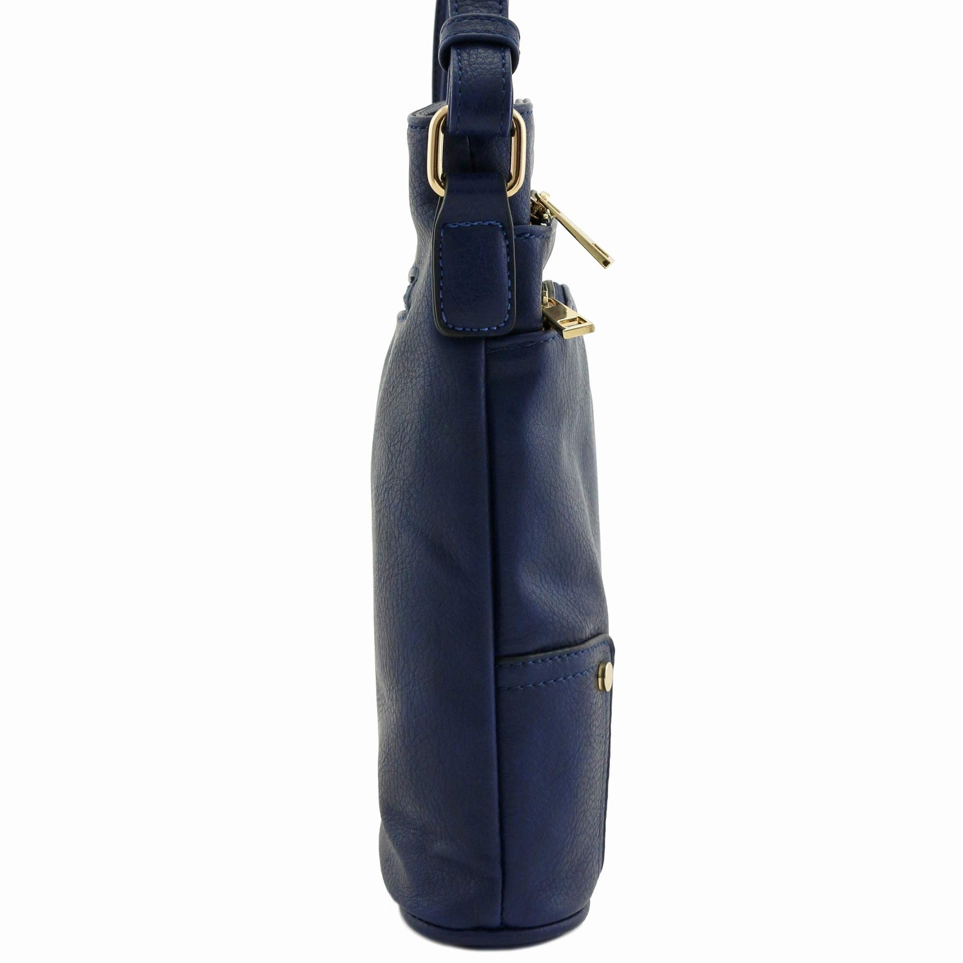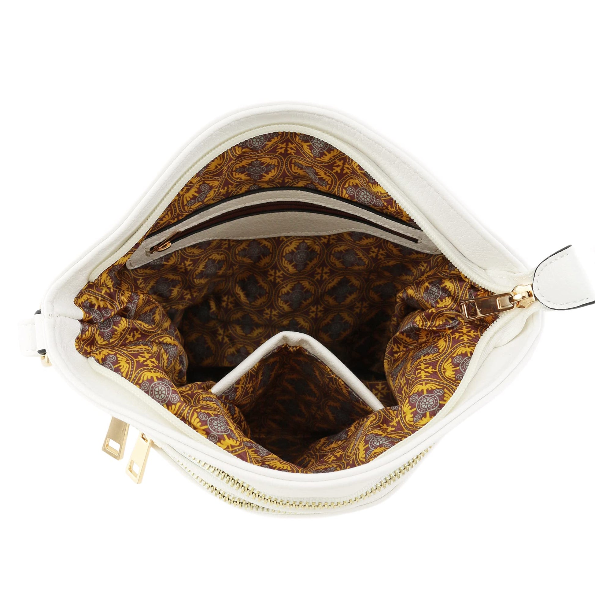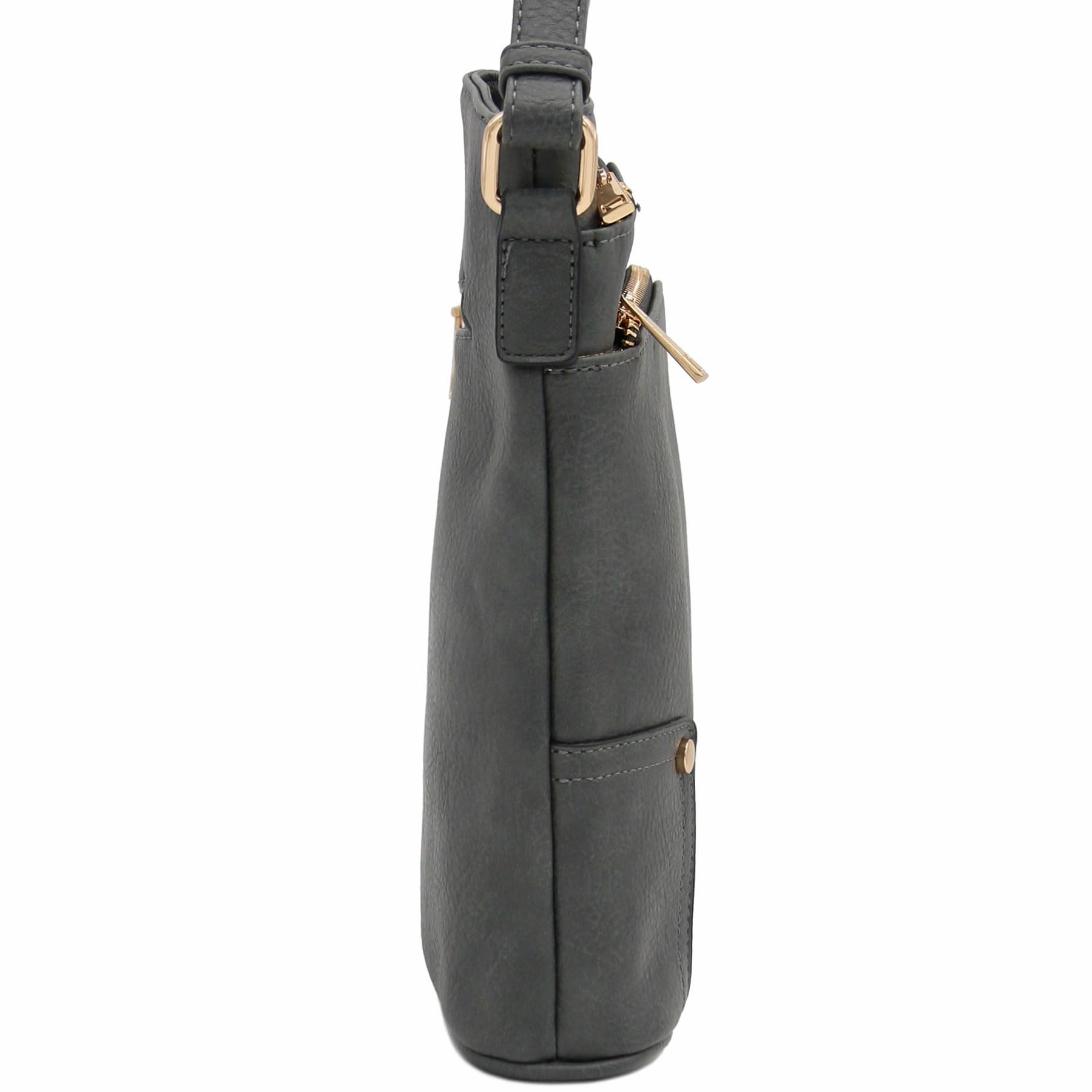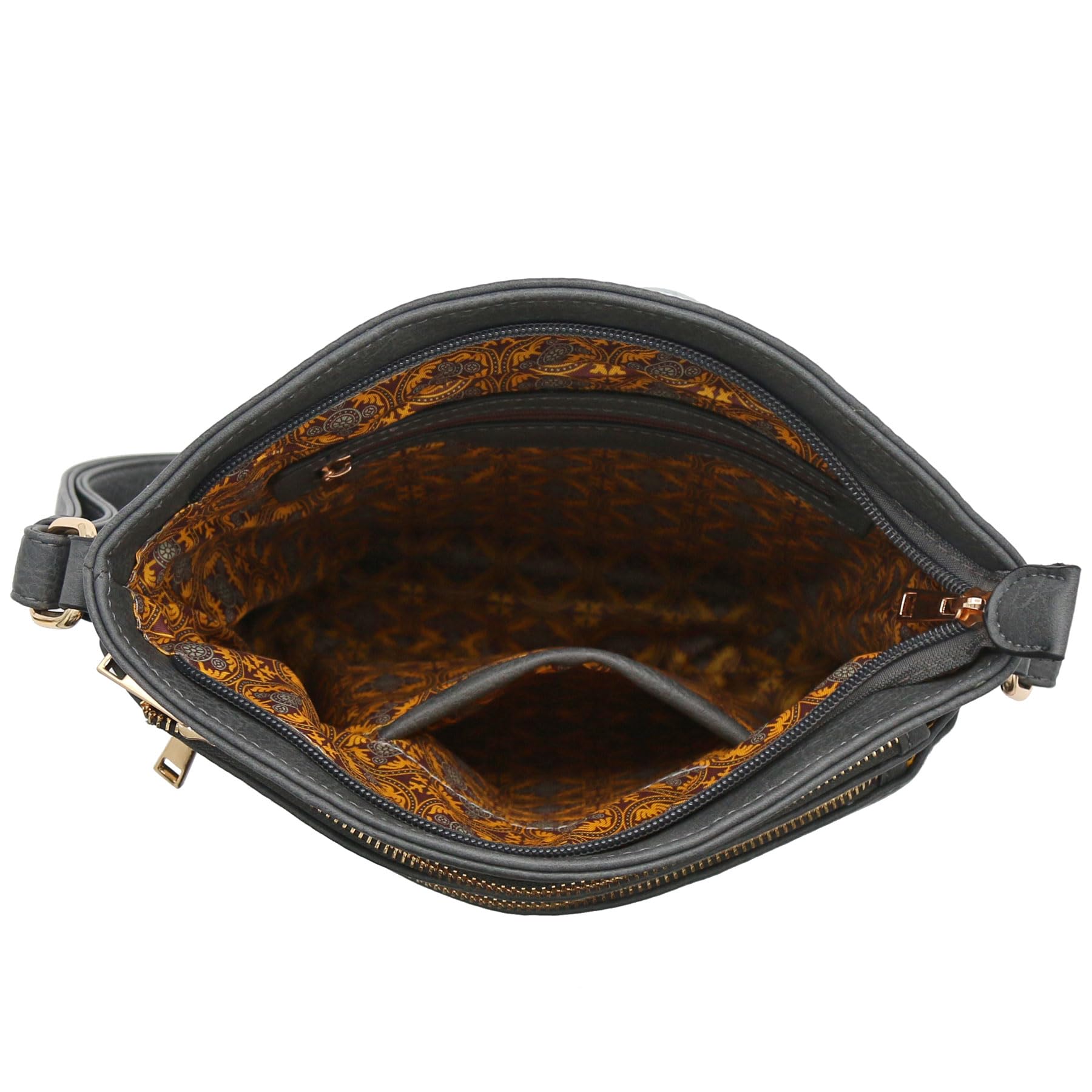 FashionPuzzle Triple Zipper Pocket Medium Crossbody Bag