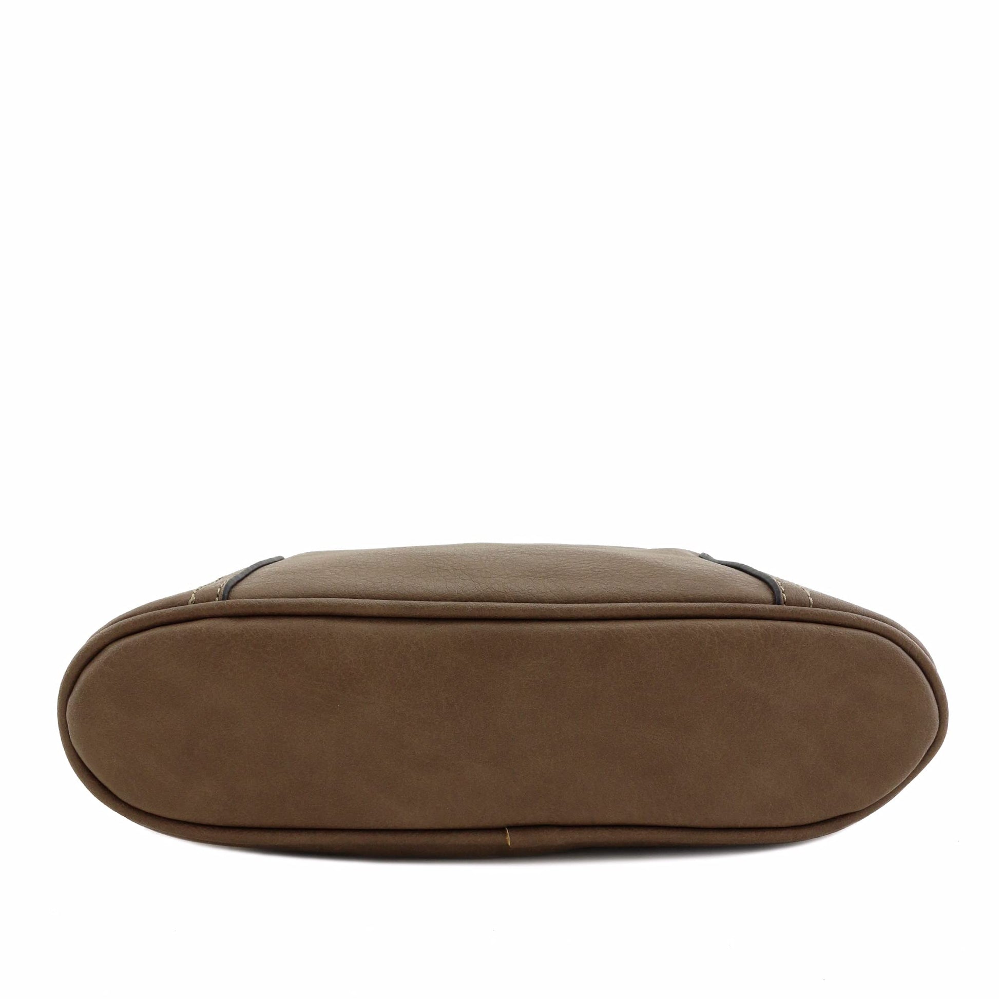 Lightweight 3 Compartment Faux Leather Medium Hobo Bag