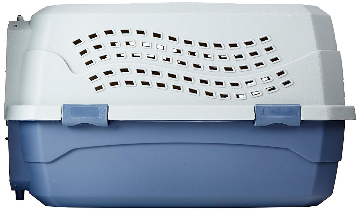 Amazon Basics 2-Door Top-Load Hard-Sided Dogs, Cats Pet Travel Carrier, Gray & Blue, 22.8"L x 15.0"W x 13.0"H