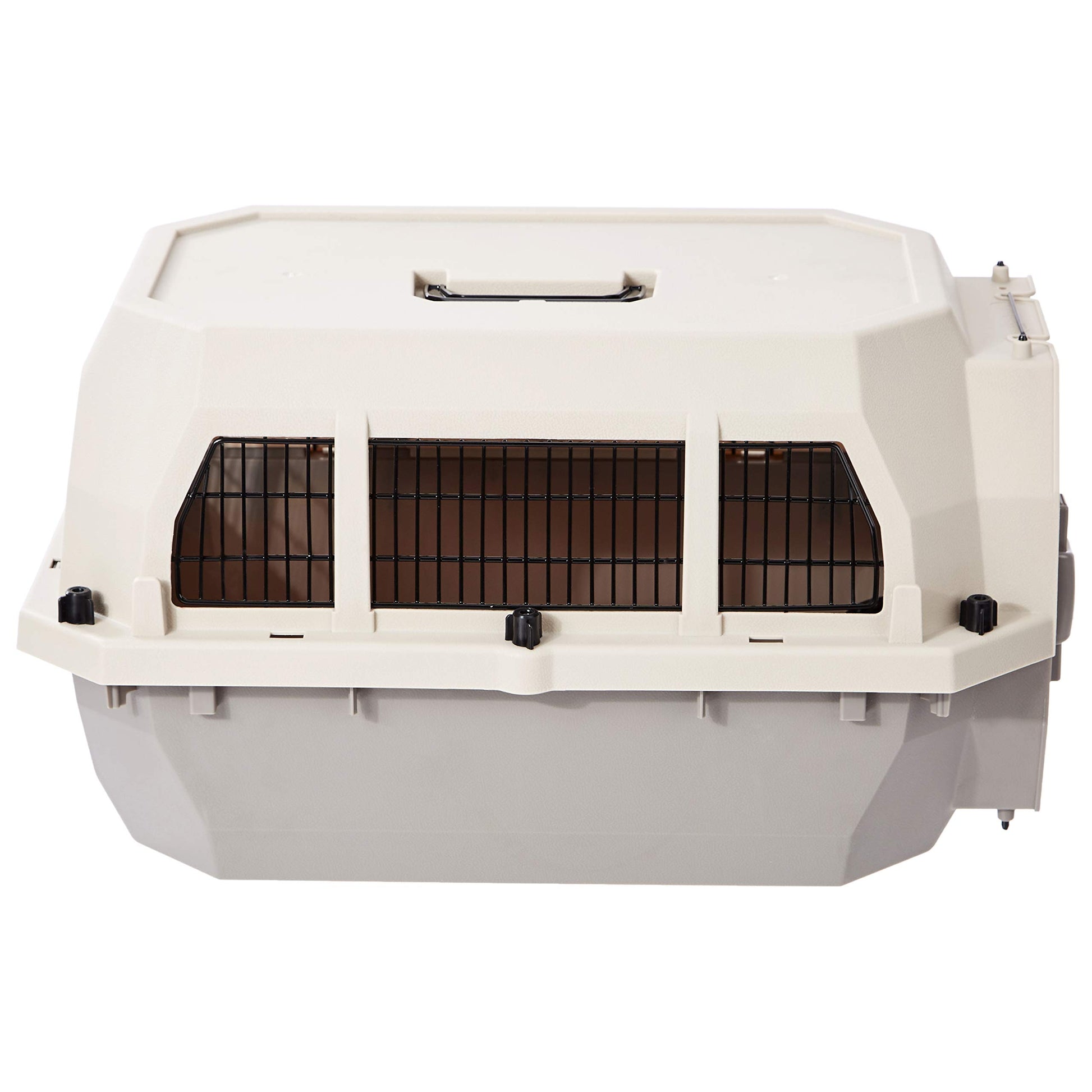 - Hard sided pet carrier with 2 doors for front and top entry; suitable for cat or medium size dog weighing 12 - 20 pounds