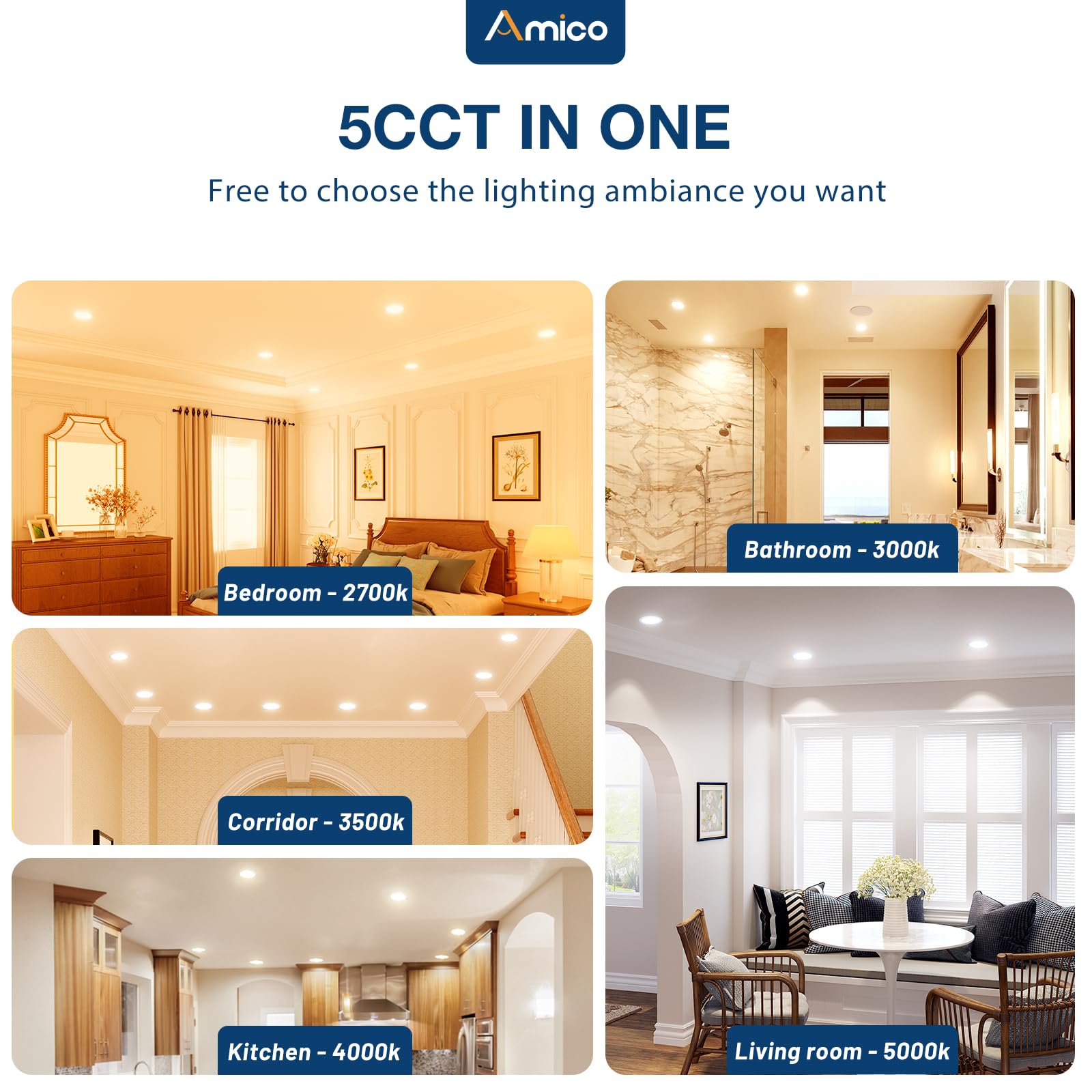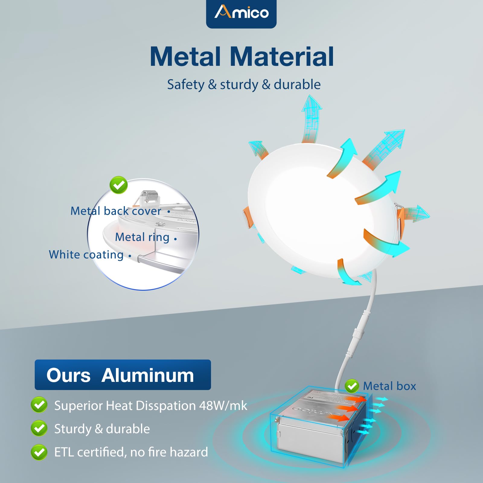 - Amico Benefits: Its long lifespan also reduces maintenance costs. All Amico's recessed lighting are certified by ETL of a high standard. Our customer support team will also address your concerns within 12 hours.