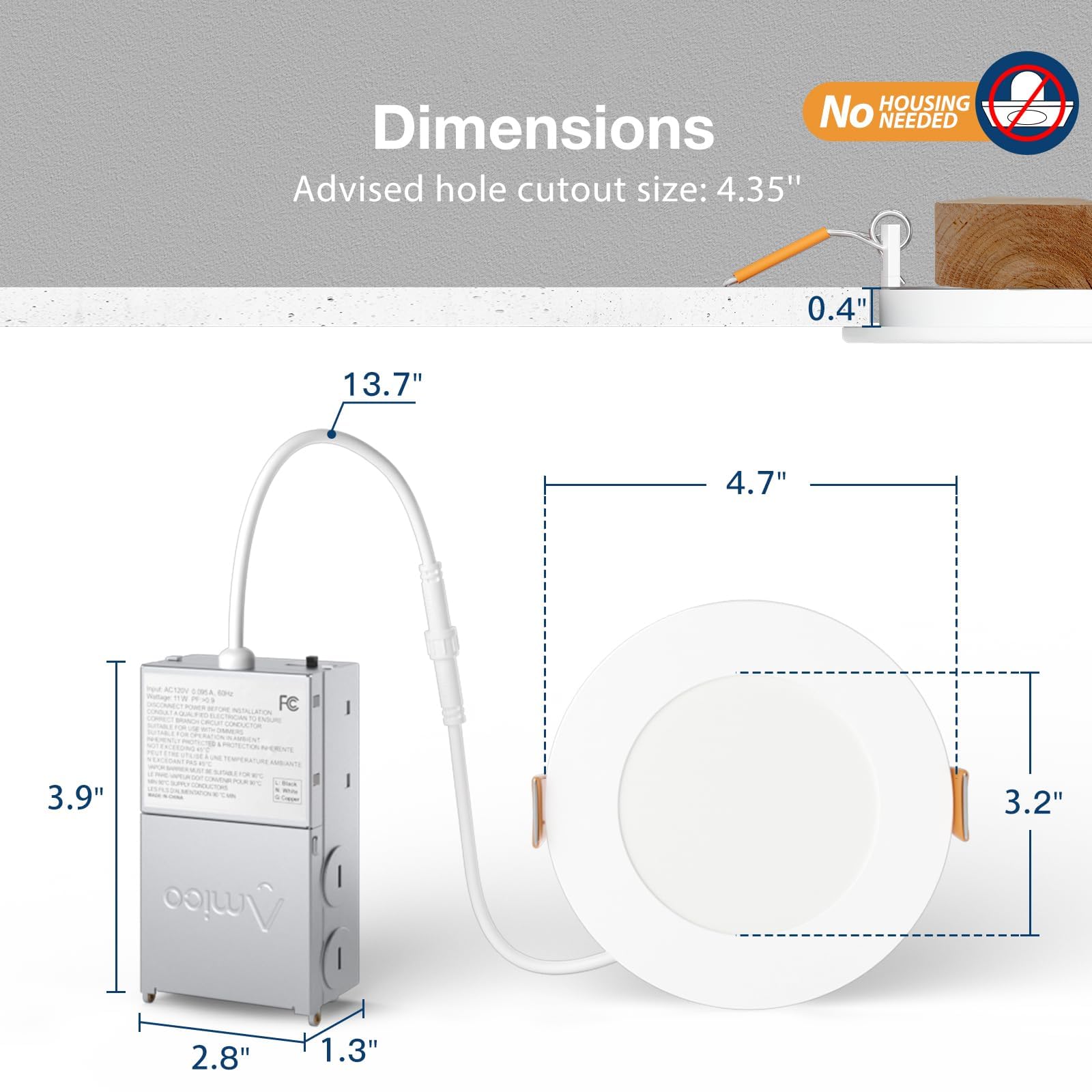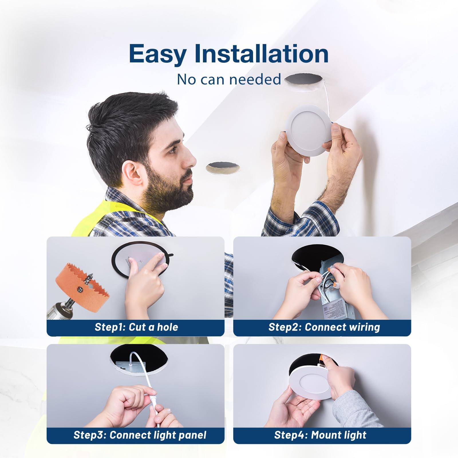 - Easy Install: The low profile recessed lighting is suitable for retrofit and new decoration: Cut a hole in ceiling with 1:1 hole template; Connect the Jbox to the cable; Use spring clip to fix it on the ceiling. Hassle-free, the installation can be completed in minutes.