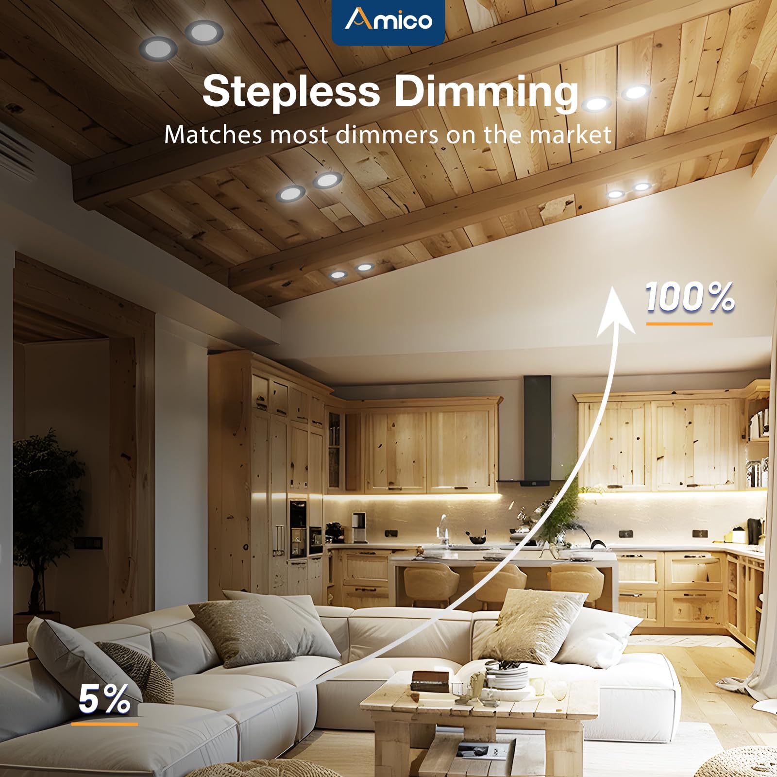 - Amico Benefits: Its long lifespan also reduces maintenance costs. All Amico's recessed lighting are certified by ETL of a high standard. Our customer support team will also address your concerns within 12 hours.