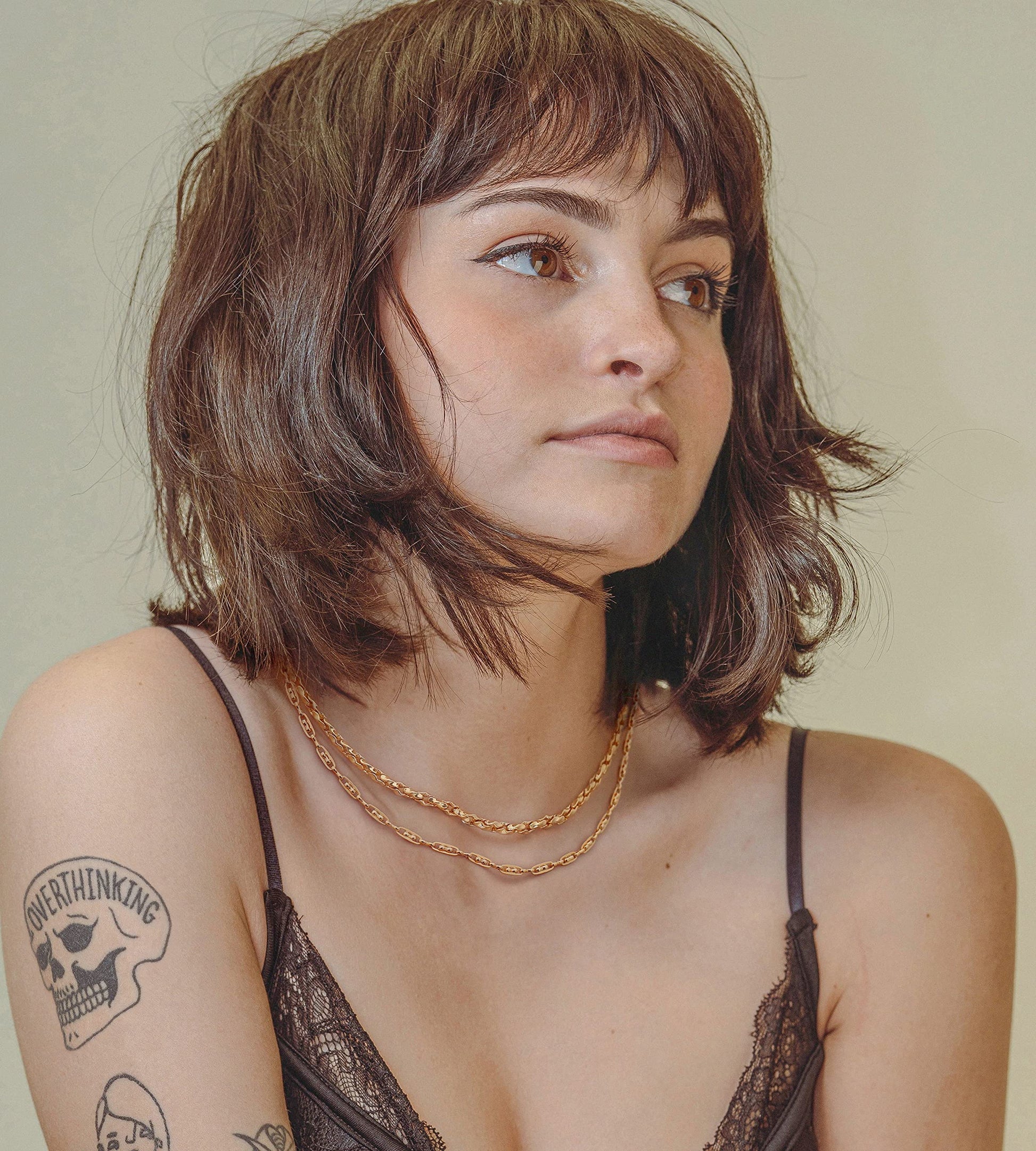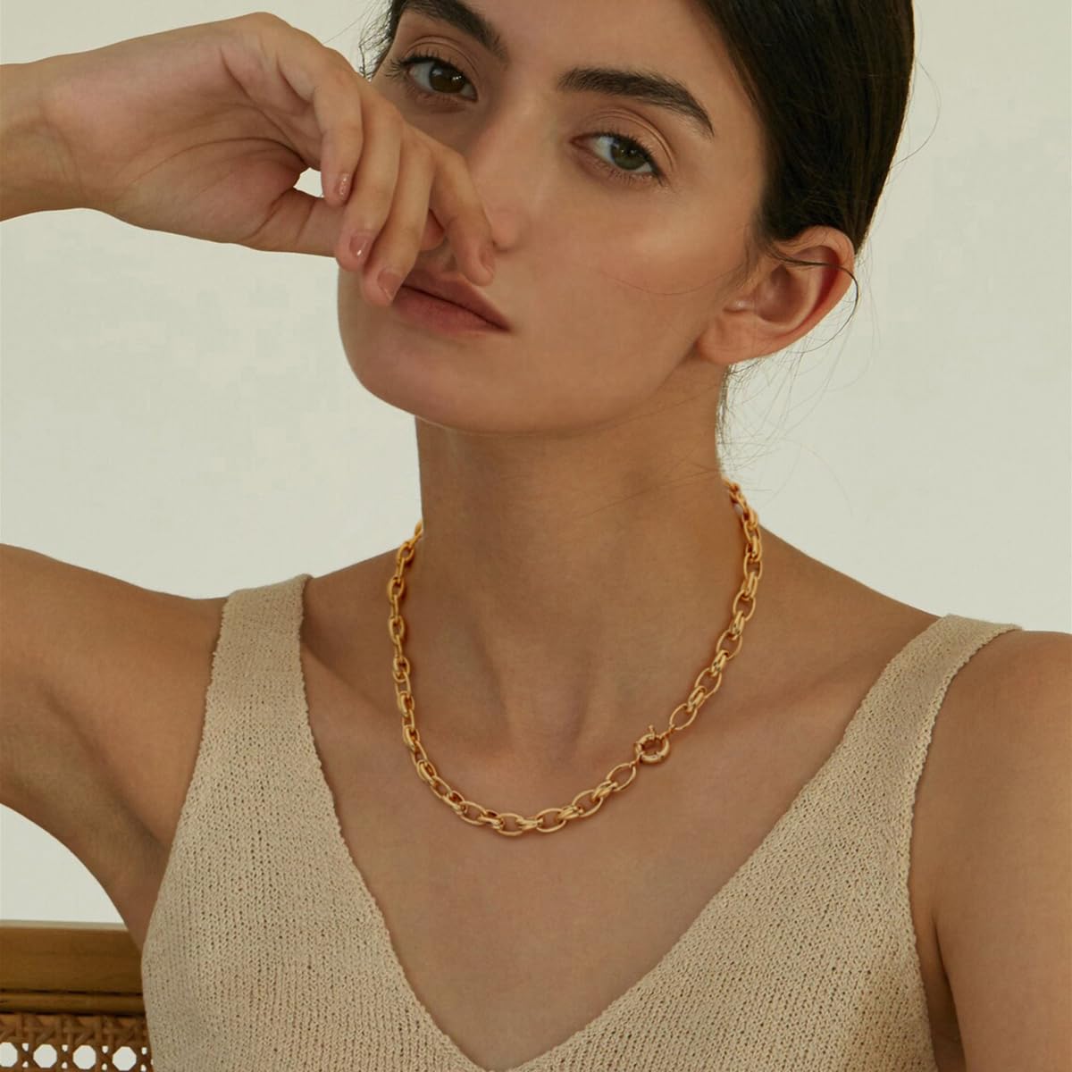- 【Satellite necklace】 This dainty choker necklace Join the trend but make it your own. We're pretty sure you've seen this gold satellite chain everywhere lately and there's a good reason why. This everyday necklace looks absolutely stunning dressed up or down. This 18k Gold plated satellite chain is so beautiful without any charms or pendants, so we thought we should offer it just like this. You can always choose to add a small charm to the chain if you’d like.