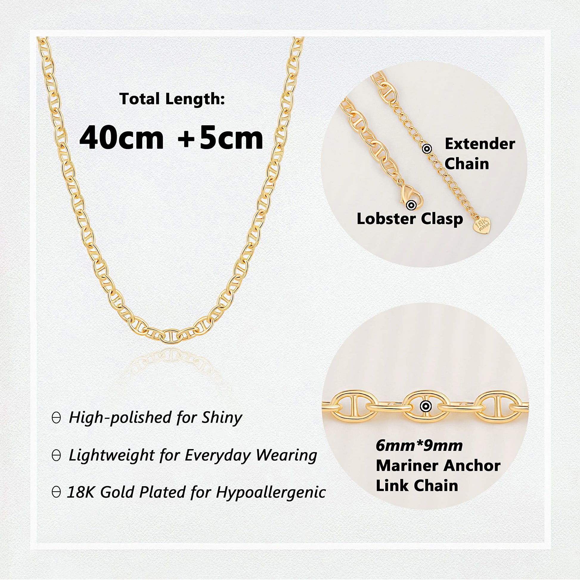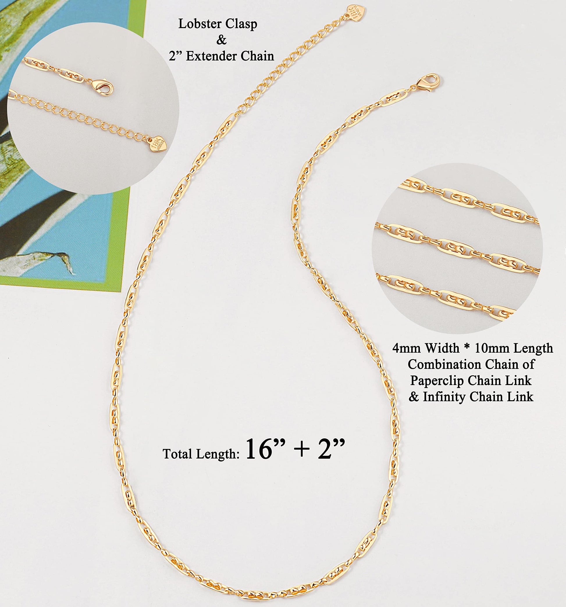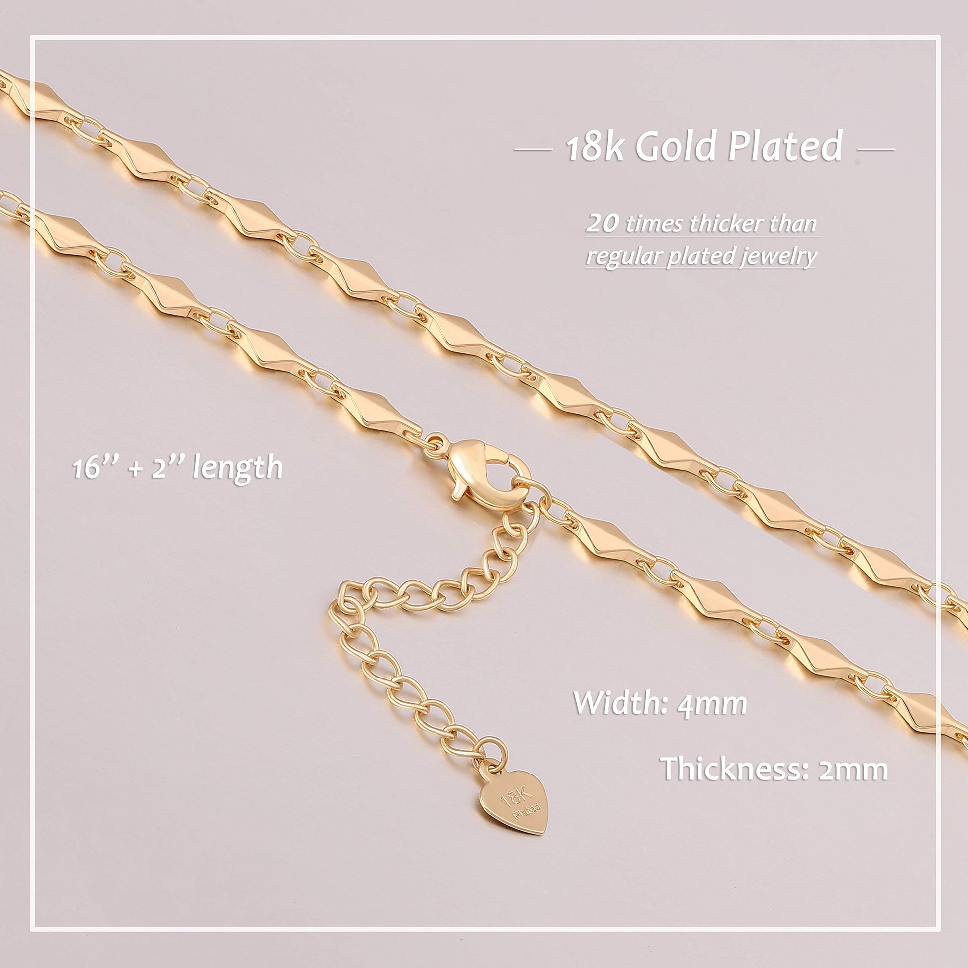 This chain is simple but dainty that appeals too many people. It's 18k gold plated, not easy to tarnish.