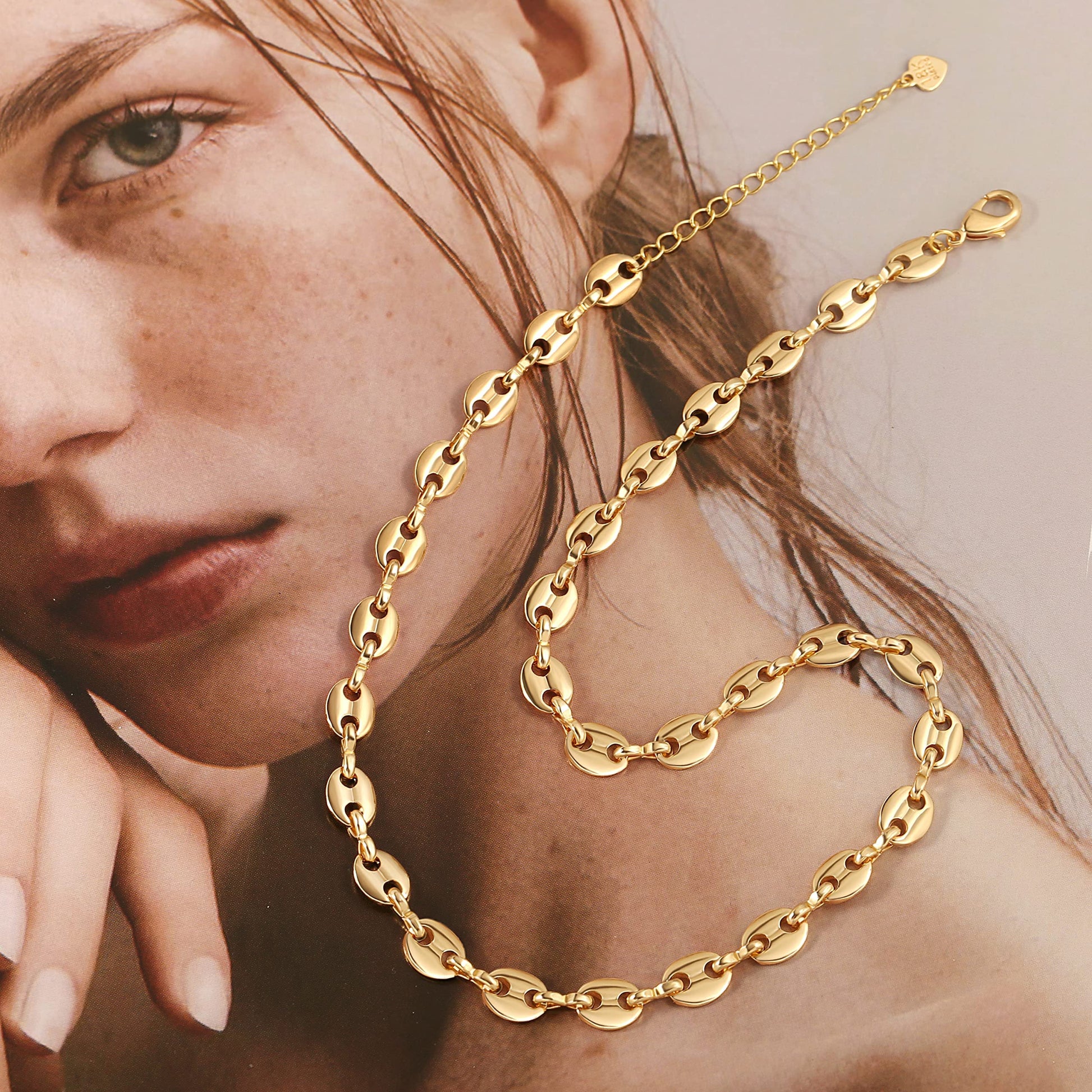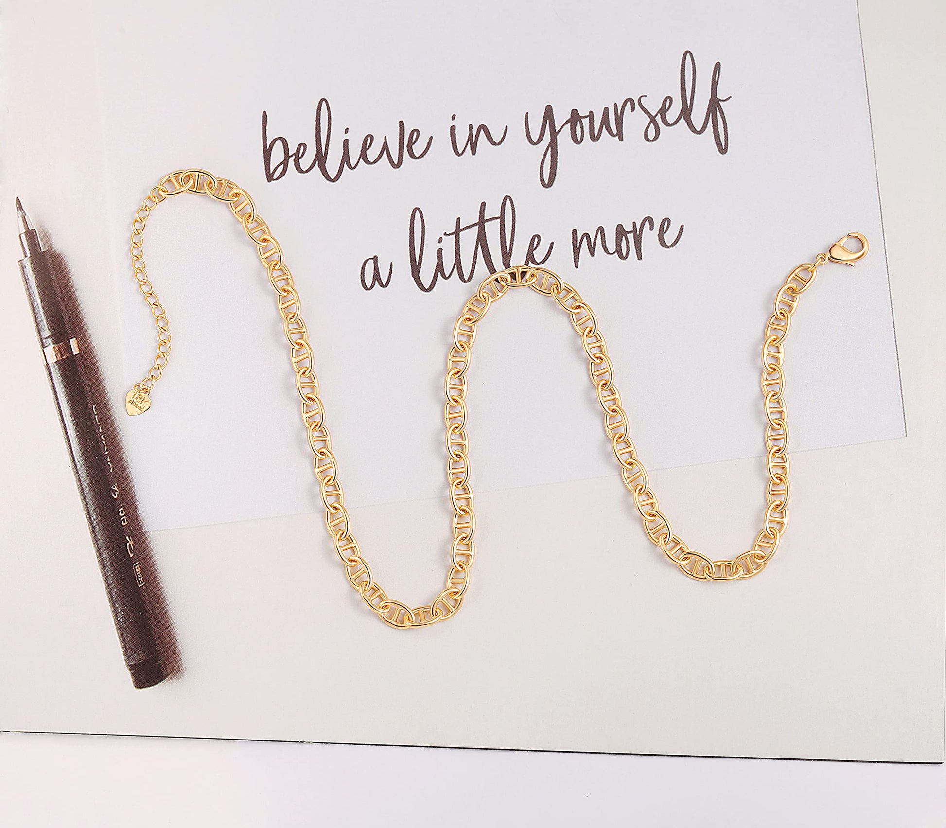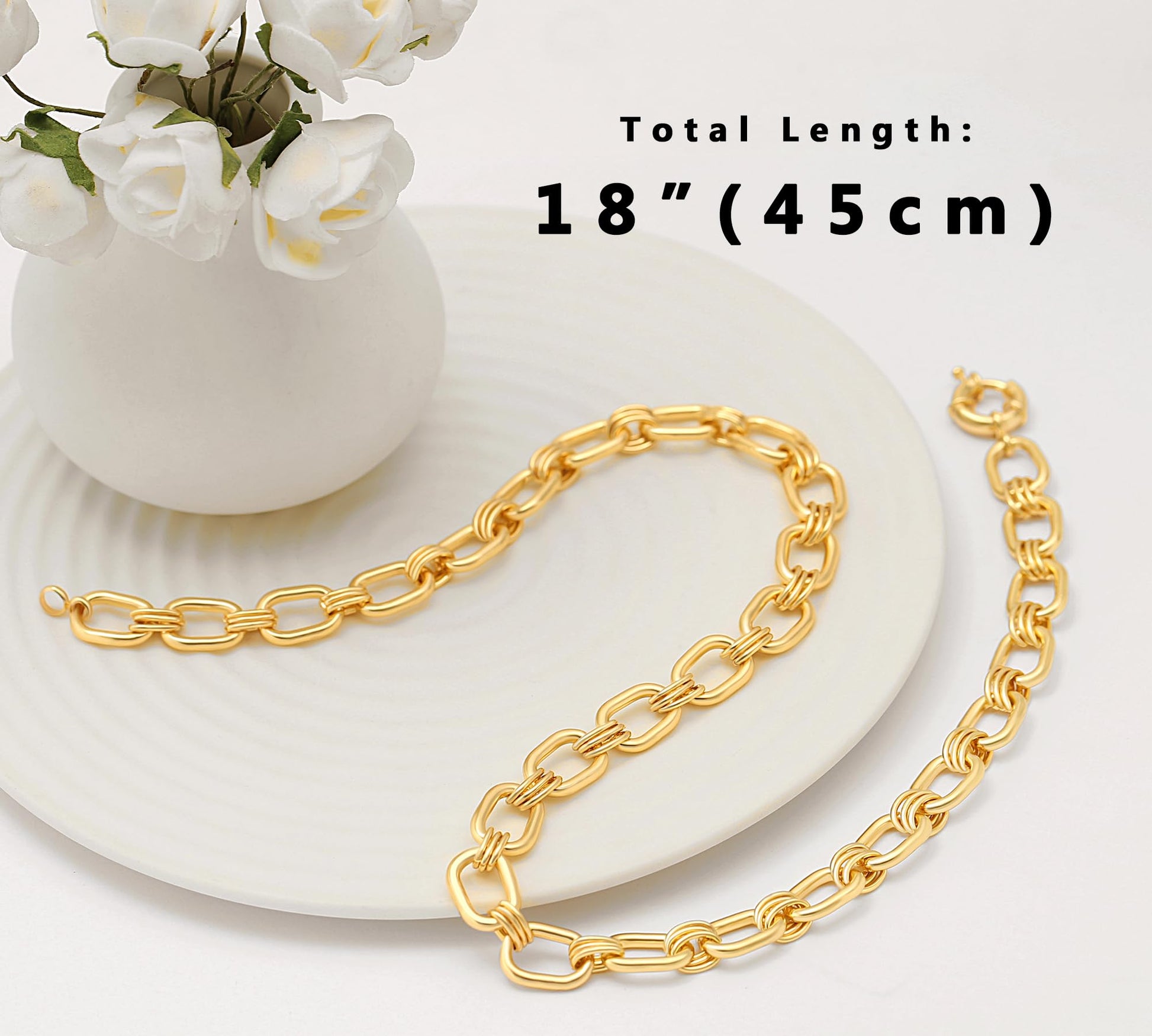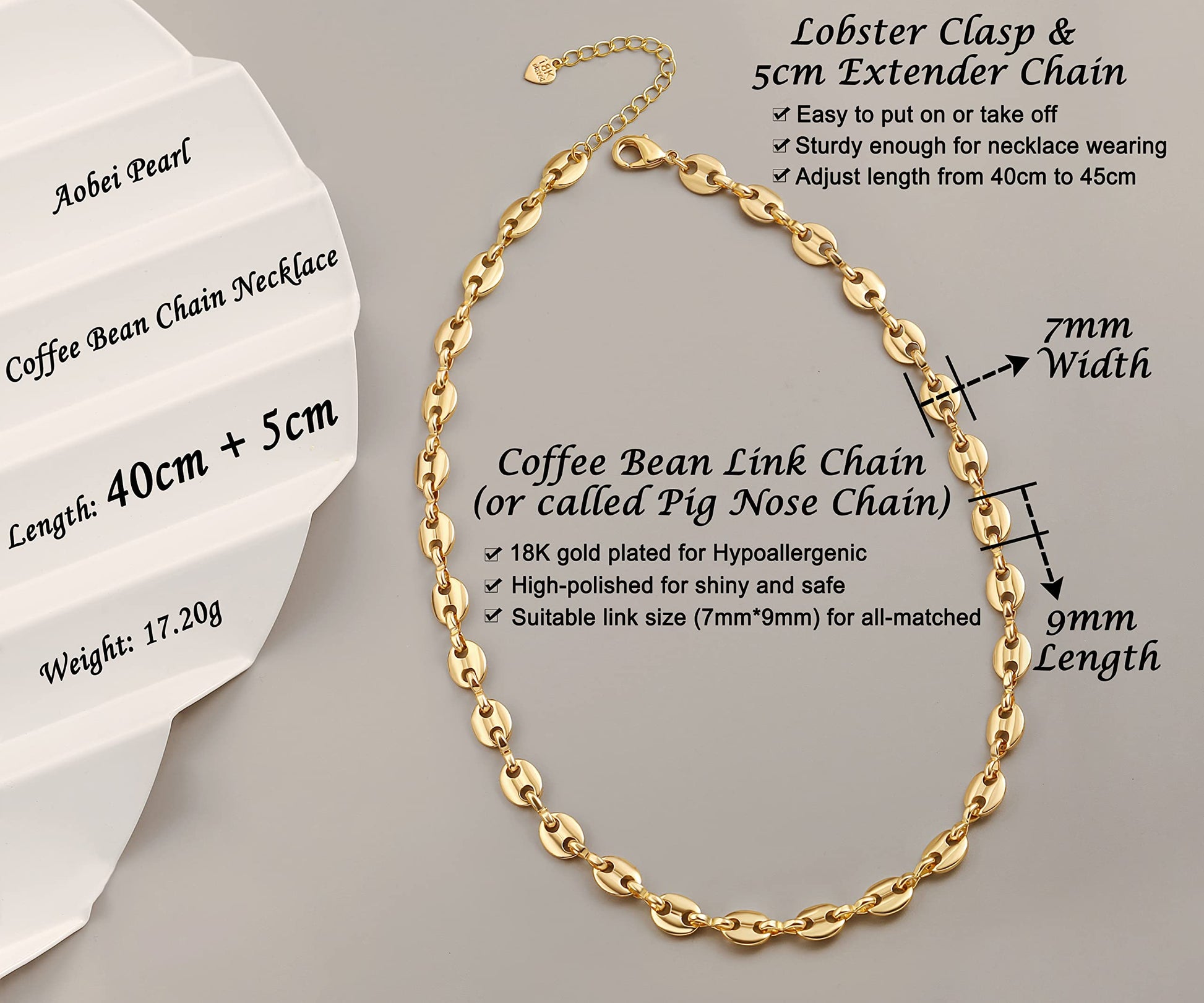 This chain is simple but dainty that appeals too many people. It's 18k gold plated, not easy to tarnish.