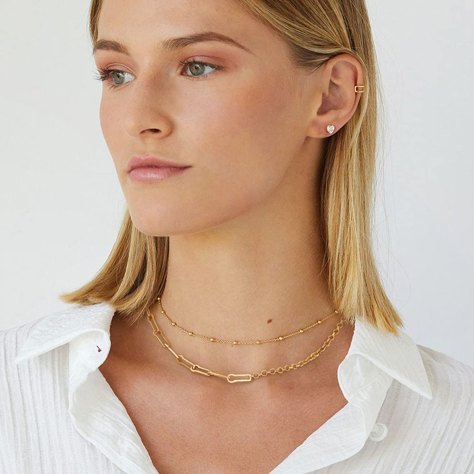 - 【Short Layering necklace】 The thin gold chain choker consists of a chain with interleaved pellets. It is a boho style necklace that is short and is ideal for combining with other necklaces, also looks very good alone. It's a good gift option. Our Thin chain necklace is the perfect layering necklace that will complement everything. Great to wear by itself or to layer with! Makes a perfect gift for your friend, bridesmaid, or family.