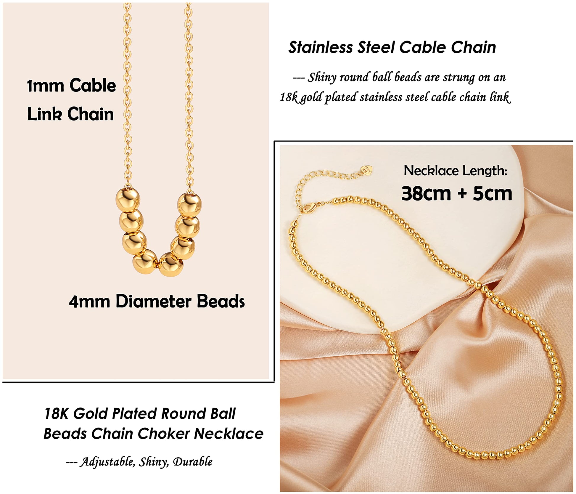 - 【Simple Beaded Choker】 The dew drops necklace. Satellite Chain Necklace In 18k Gold Plated. This Delicate Beaded Necklace is the PERFECT Layering Necklace! If you've been looking for easy and amazing layered looks, this necklace is a must-have. Wear it alone, or with your other favorite chains. A gold beaded choker necklace that not only looks cool but elegant! Its really easy to layer this choker or necklace with other delicate necklaces.