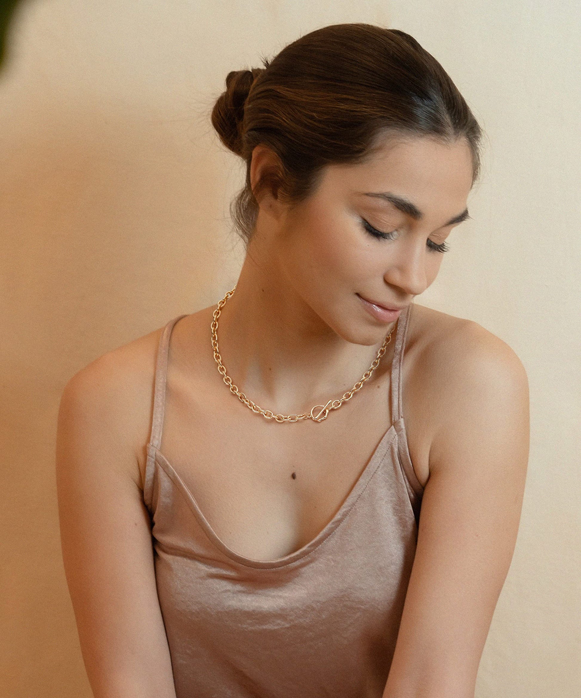 If you've been looking for easy and amazing layered looks, this necklace is a must-have. Wear it alone, or with your other favorite chains. A gold beaded choker necklace that not only looks cool but elegant! It's really easy to layer this choker or necklace with other delicate necklaces.