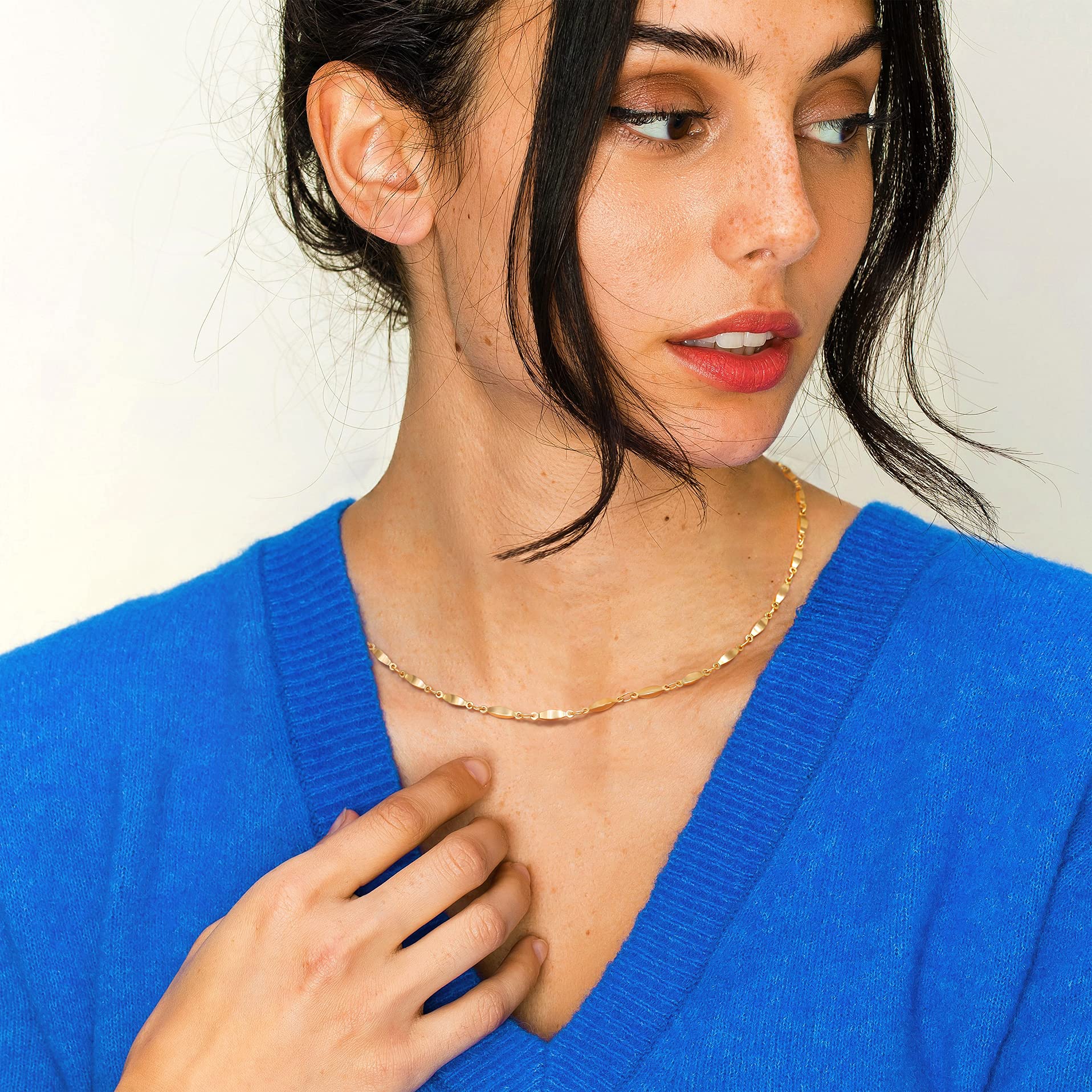 - 【Gold Choker】 Our 16’’ +2’’ gold satellite chain choker is a beautiful, dainty necklace that will add a touch of gold to your layered look! This is the perfect simple layering necklace for everyday wear, and it looks beautiful layered with other gold necklaces. Carefully handcrafted dainty and delicate satellite chain choker necklace. Such a simple minimal design makes it perfect for everyday wear and ideal for layering.