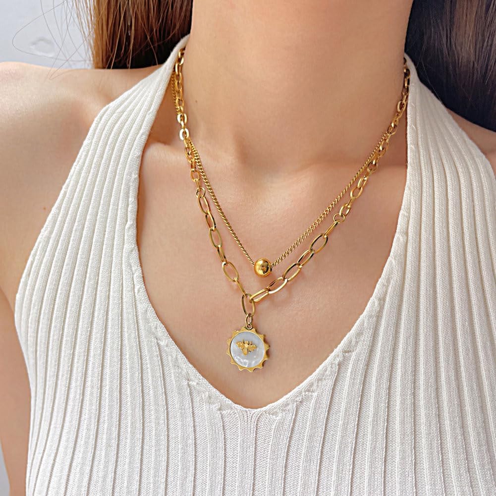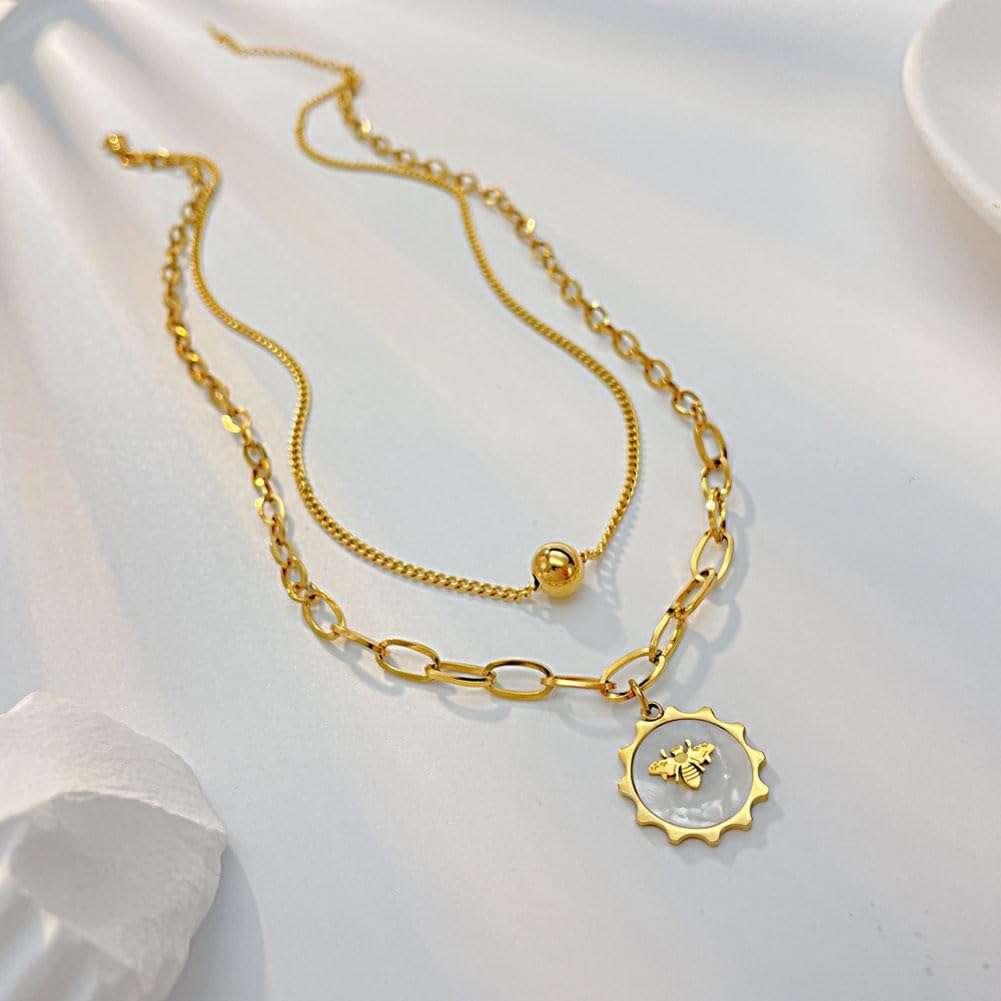Our gold bee layered necklace for women, a stunning piece of jewelry that combines dainty charm with trendy style. Made with high-quality stainless steel, this necklace is designed to resist tarnishing, ensuring that it stays shiny and beautiful for a long time.