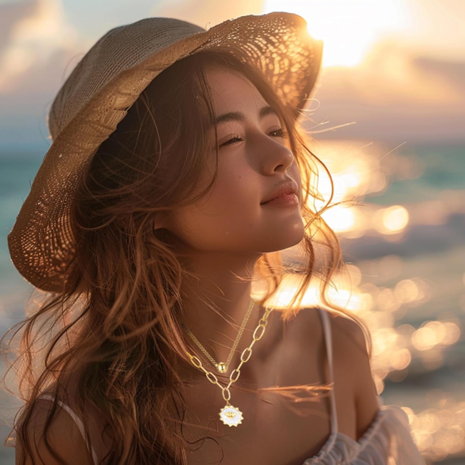 The stainless steel material ensures durability and maintains the necklace's shine, making it suitable for seaside environments and summer activities.