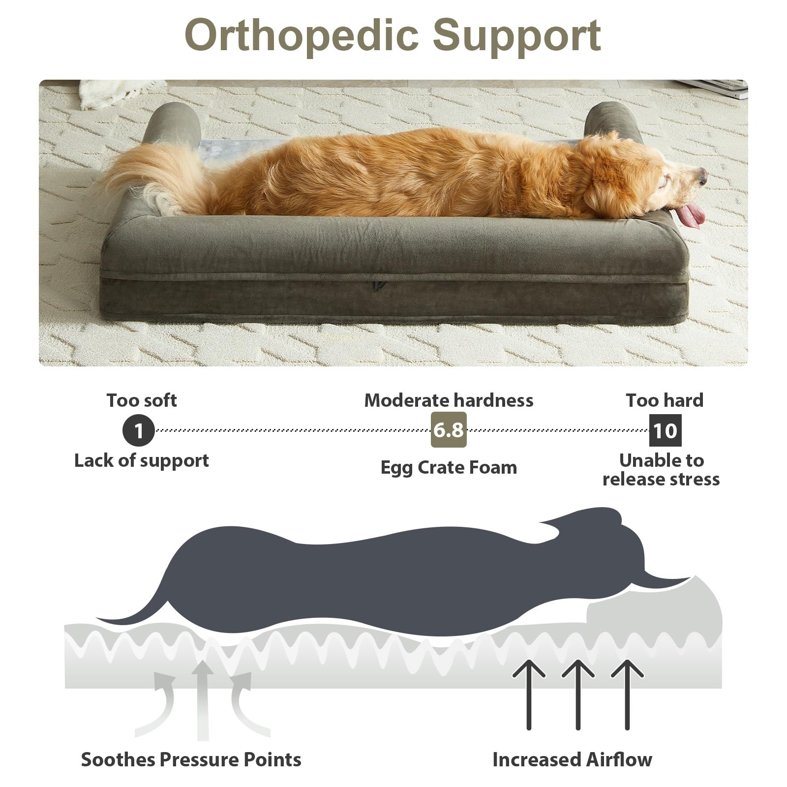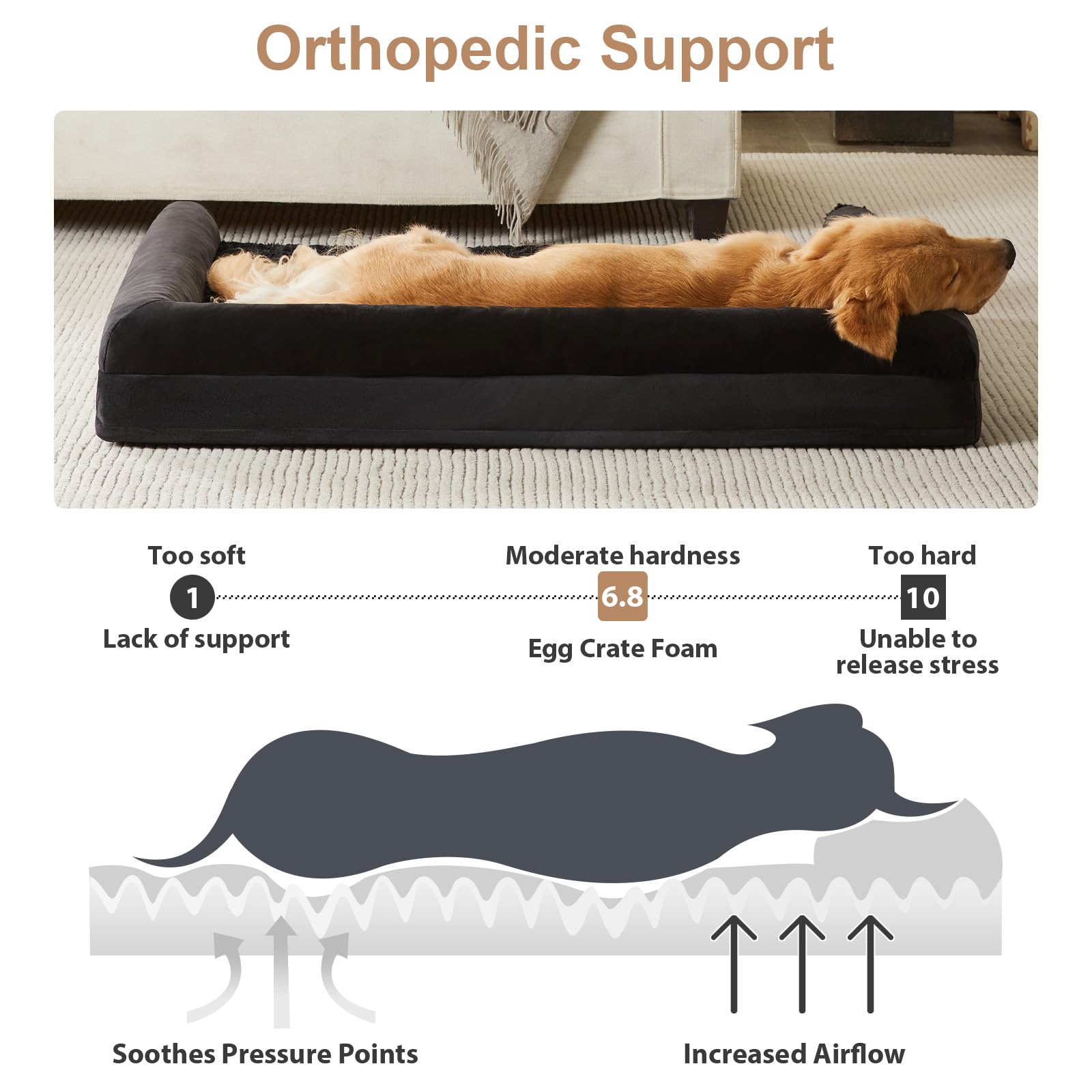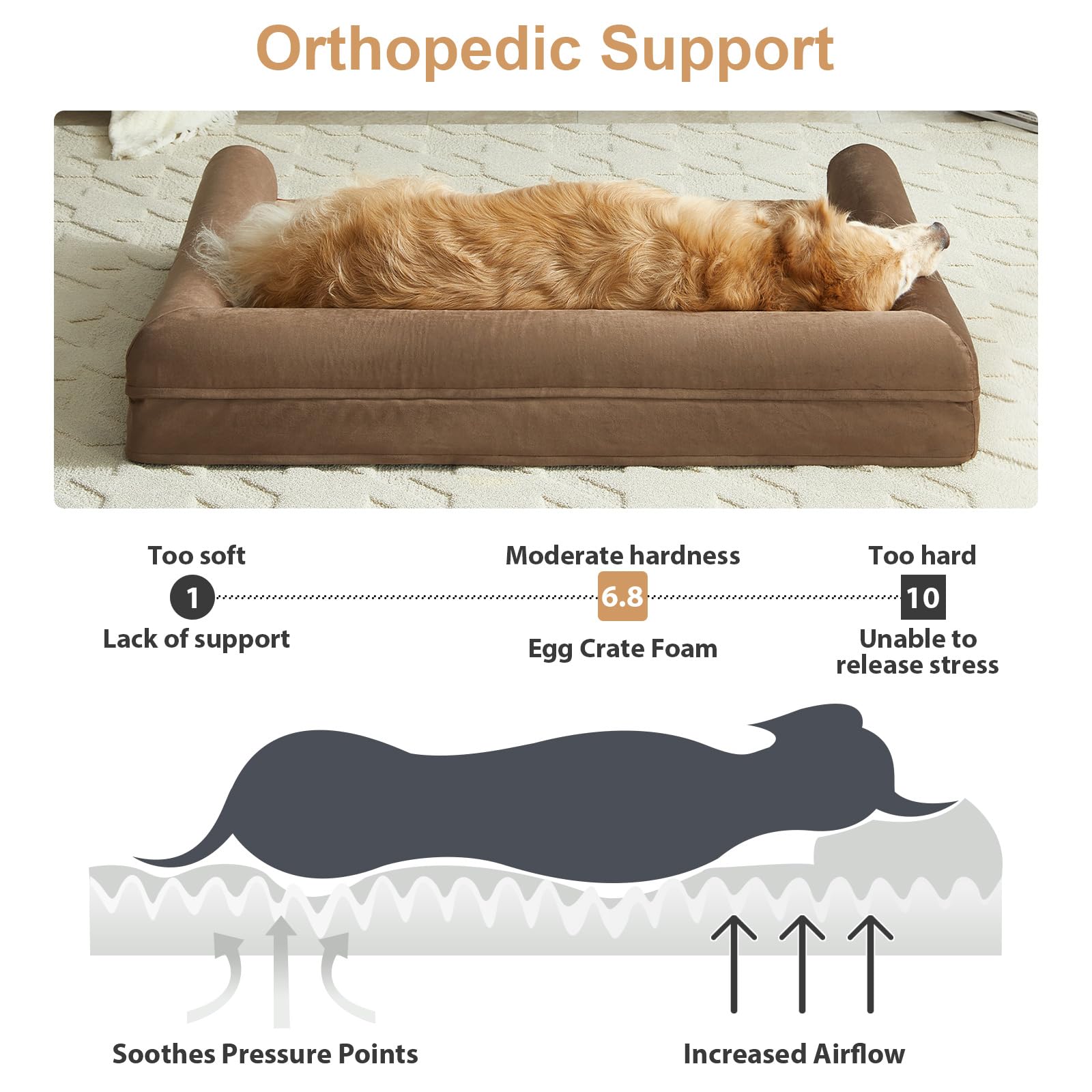 - MADE FOR COMFY DOG BED: this orthopedic dog bed is made of High density egg crate foam, thick dog bed perfectly supports your fur baby's muscles and joints, relieves joint pain.this sofa bed couch is a great choice for elderly or sick dog pets. they will love a day in the memory foam dog bed.