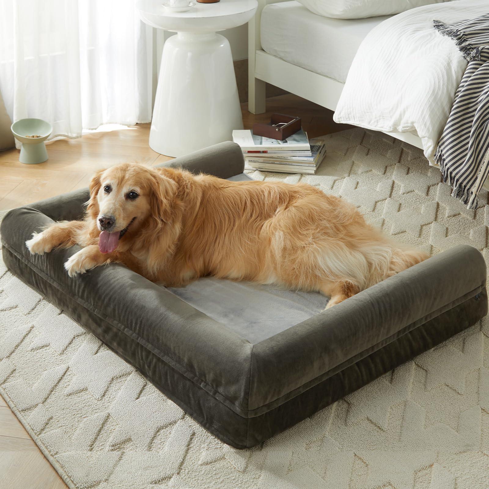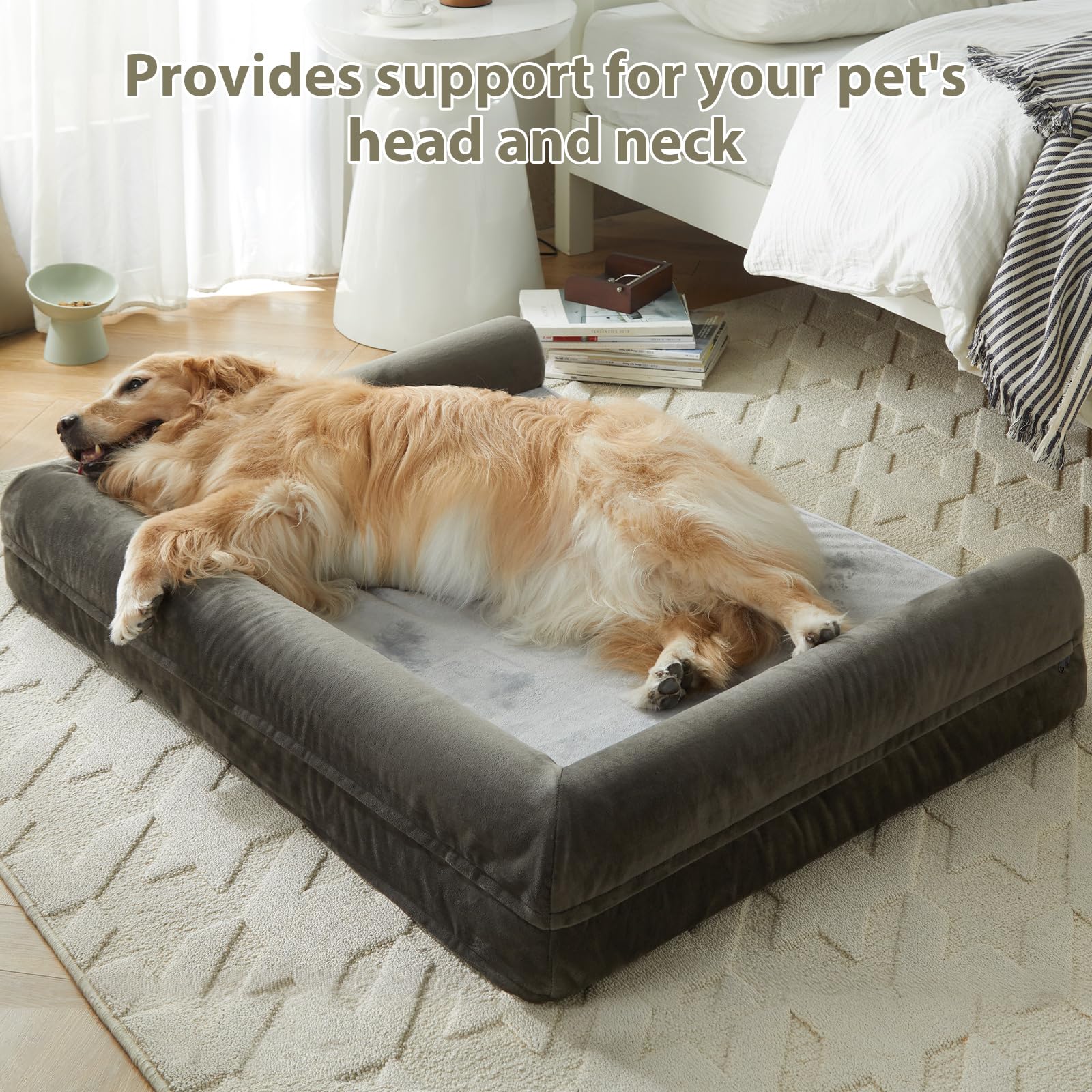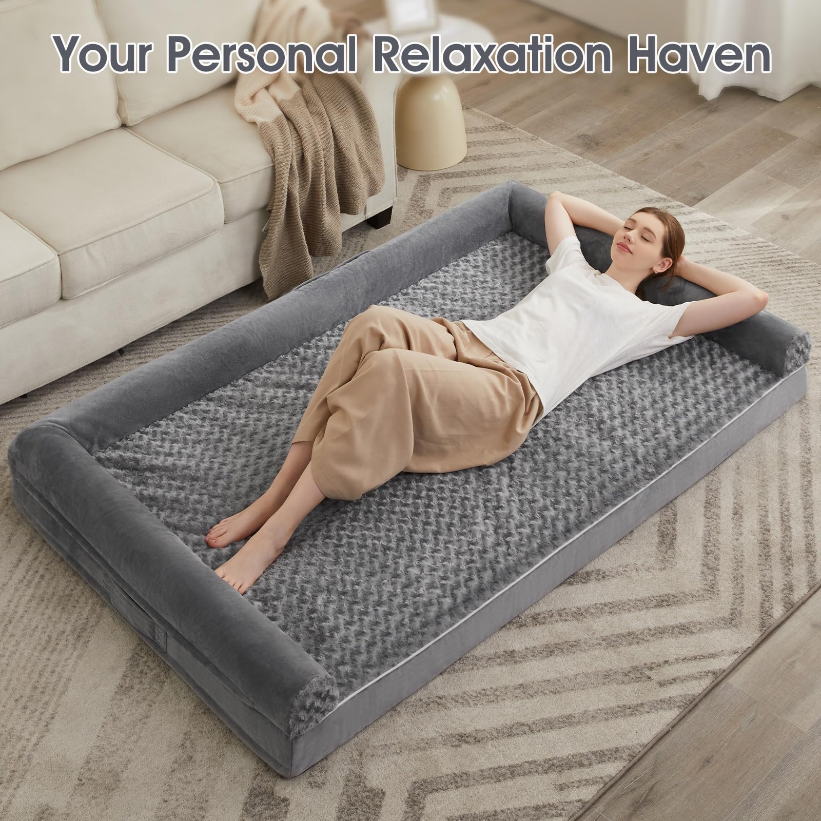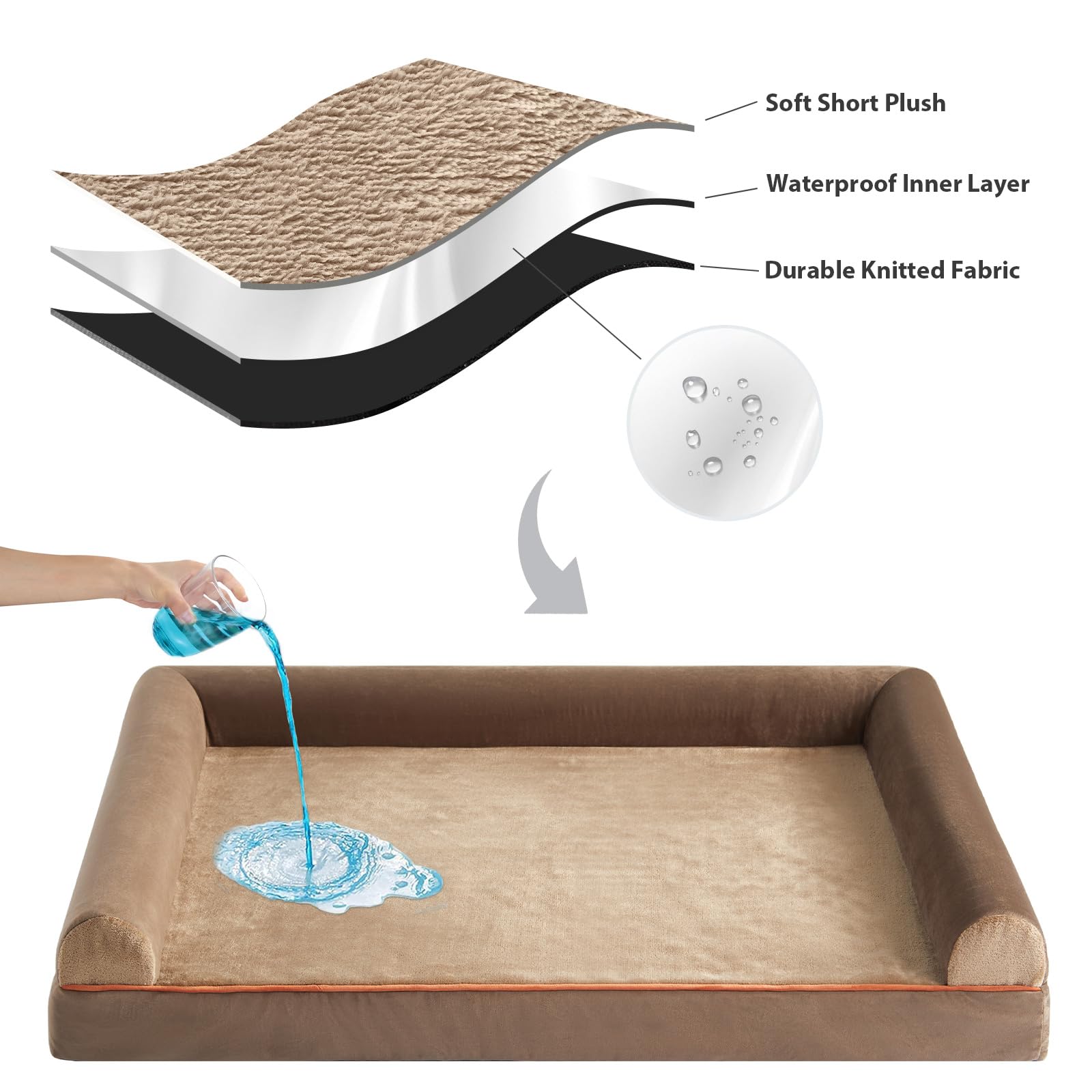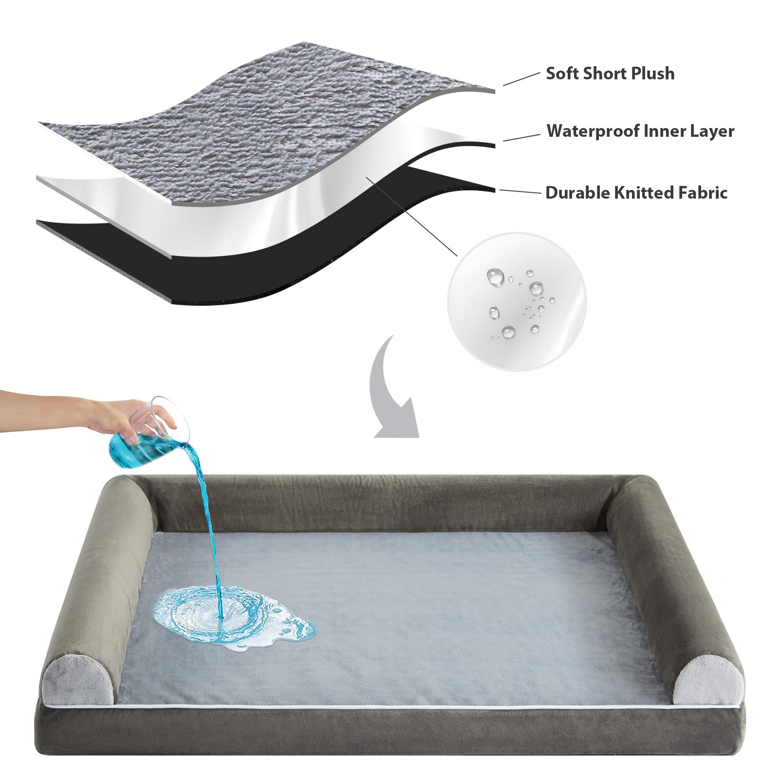 - WATERPROOF DOG BED & REMOVABLE DOG BED: The 3 side zippers on the big dog bed cover make it easier to remove or put together for quick cleaning and care of the X large dog bed.The waterproof inner layer of dog couch protects the egg foam from leaking urine and drool, allowing your puppy to use large pet bed with confidence at any time.