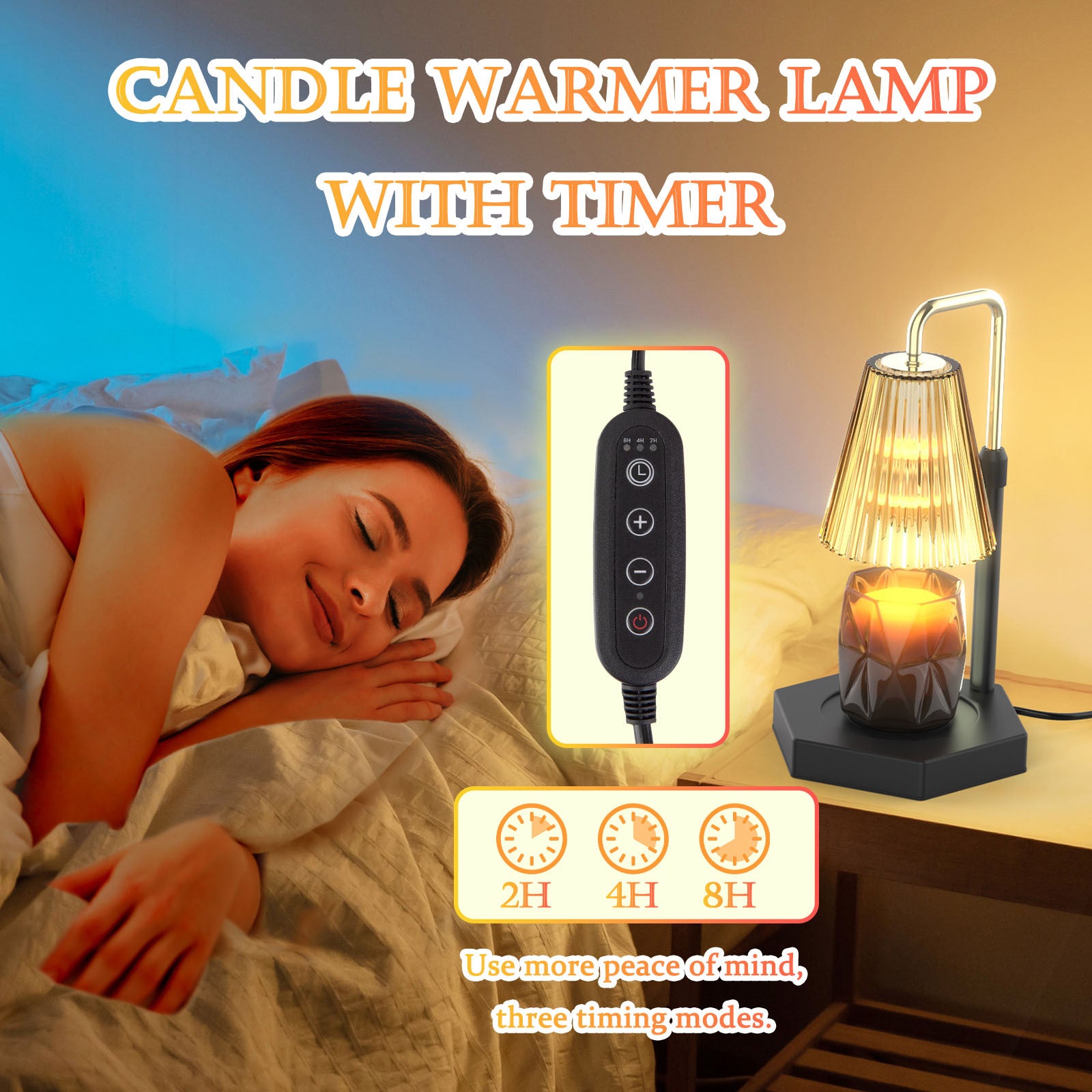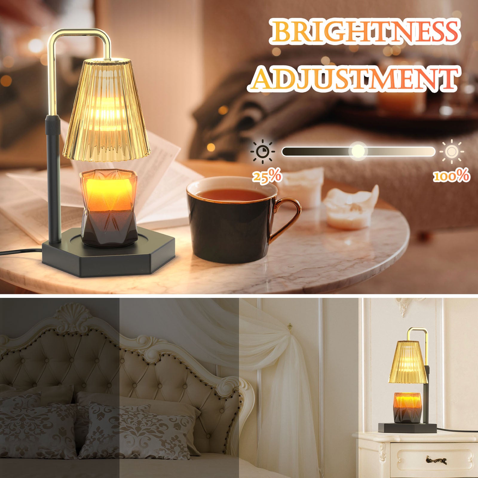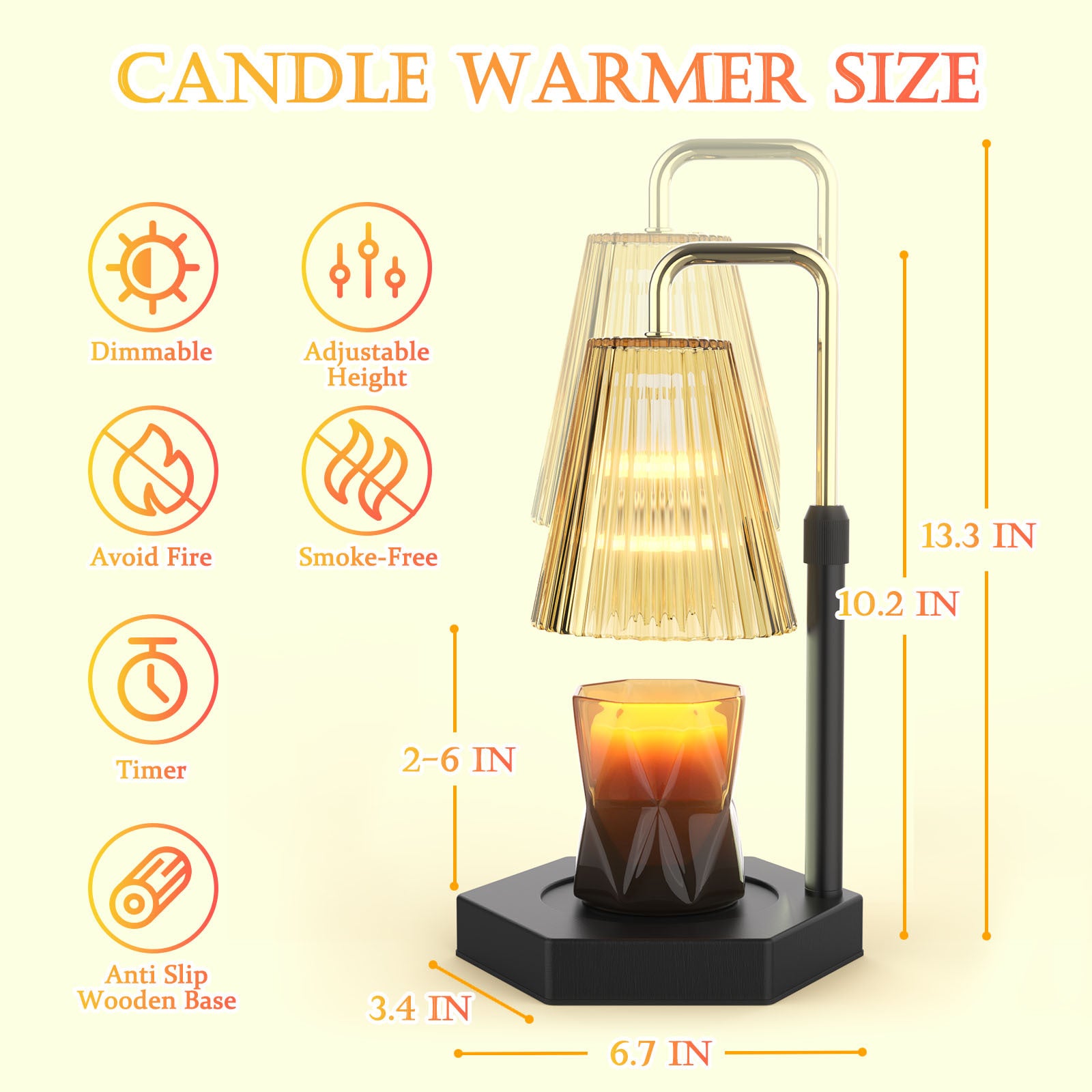 Candle Warmer Lamp Dimmable And Timer Candle Warmer Height Adjustable For Jar Scented Candles For Home Decor Amber Glass And Black Base