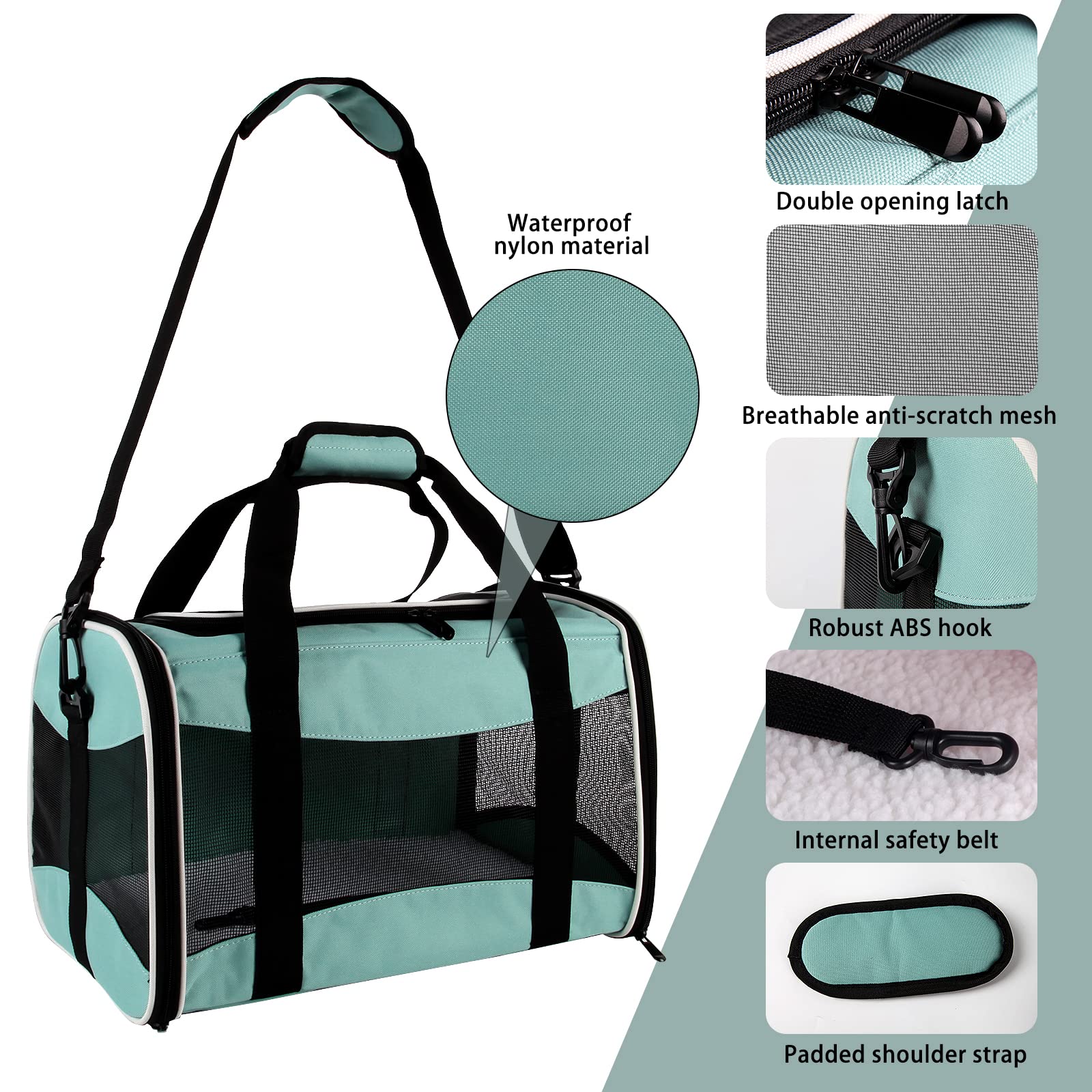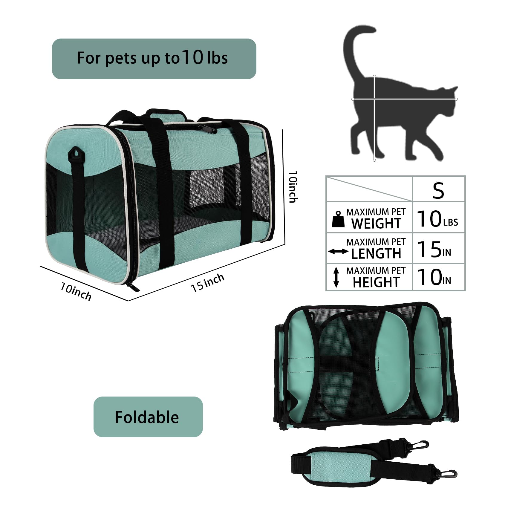 Cat Carrying Case Pet Dog Carrier Soft-Sided Cat Bag Airline Approved, Pet Travel Carrier Up to 15 Lbs, Collapsible Cat Carrier Dog Carrier for Medium Cats Small Cats Dogs(17x11x11 Green)