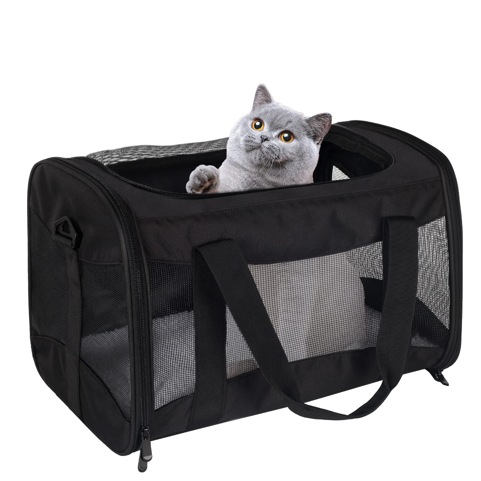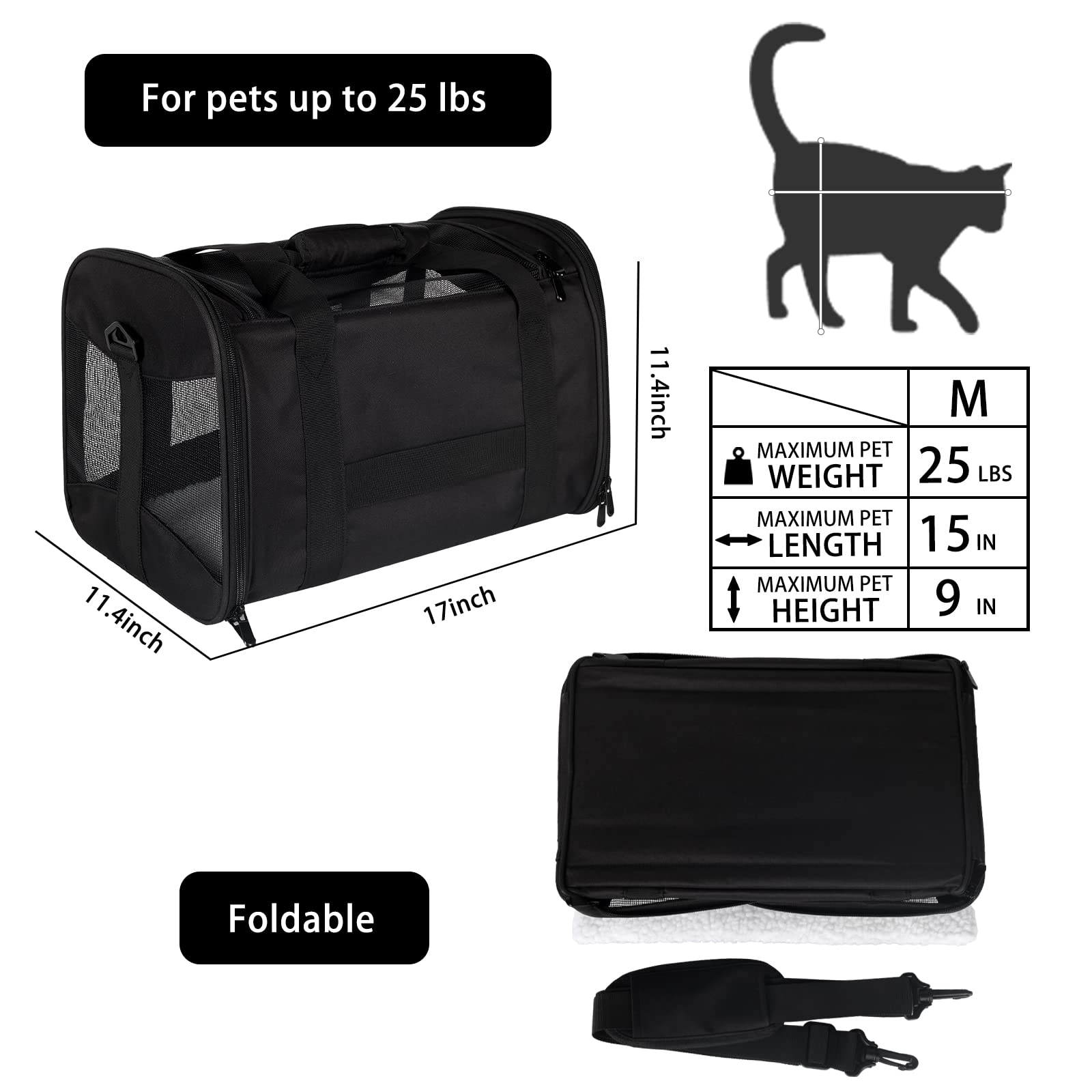 - [PRODUCT DIMENSIONS] Pet travel carrier size : 17x11x11 inches, recommended up to 15 lb pets, it is suitable for large, medium cats and small dogs. Please don't choose your airline cat carrying case based on weight, please refer to your pet's length and height when choosing a pet carrier size.