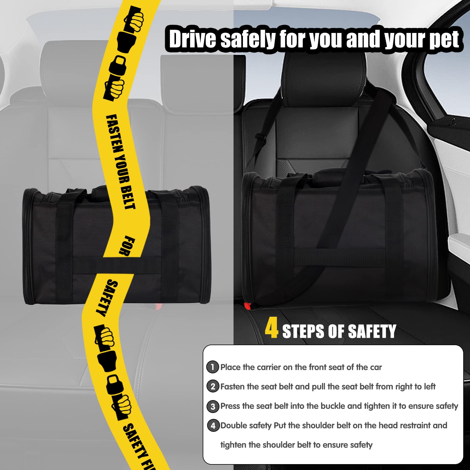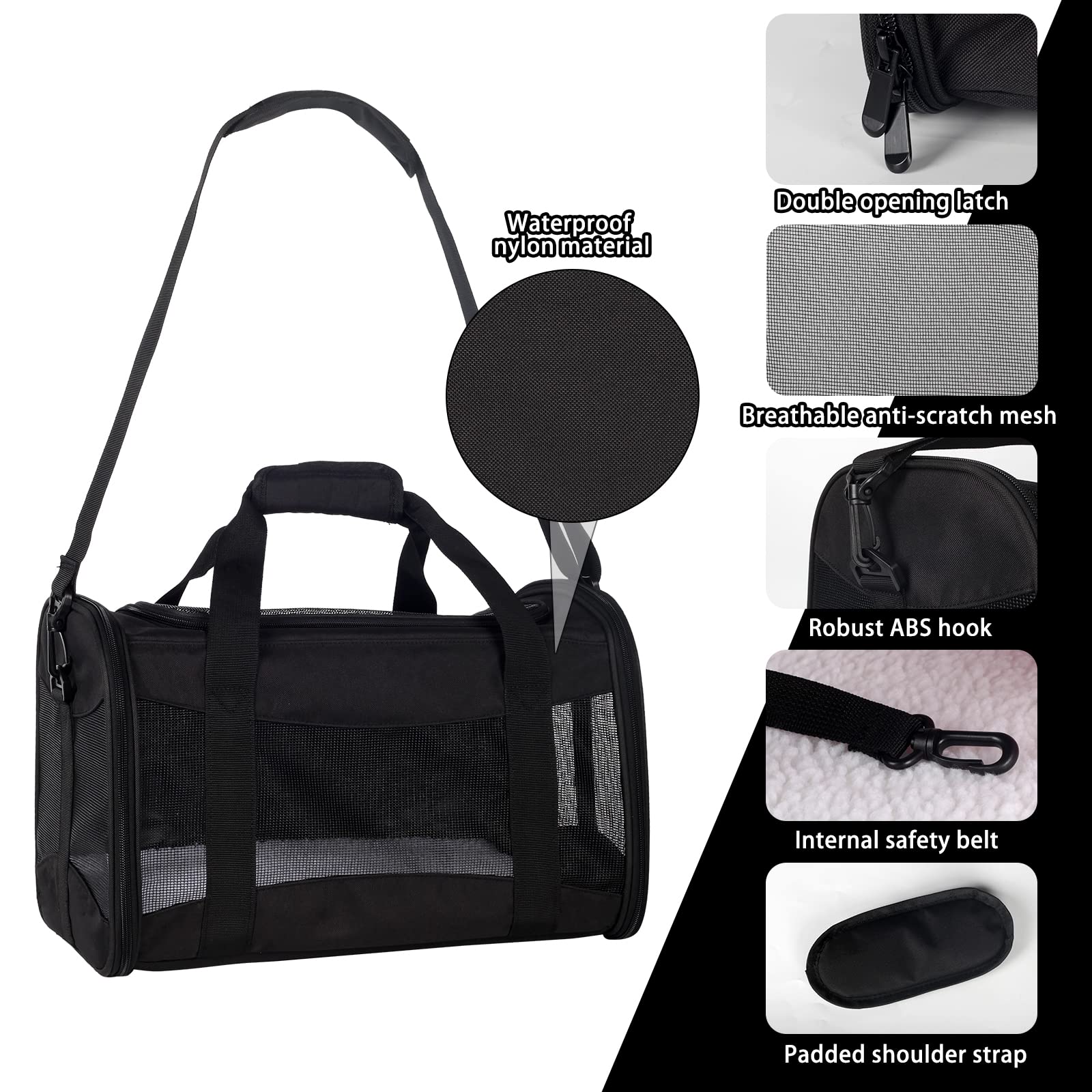- [AIRLINE APPROVED] This cat carrier is designed with airline approved, it can fit comfortably under most flight seats, we can take our pets wherever we want. Dog travel carrier offers two attachment loop handles that can be used as a dual harness or as a luggage strap for balanced carry and secure transport.