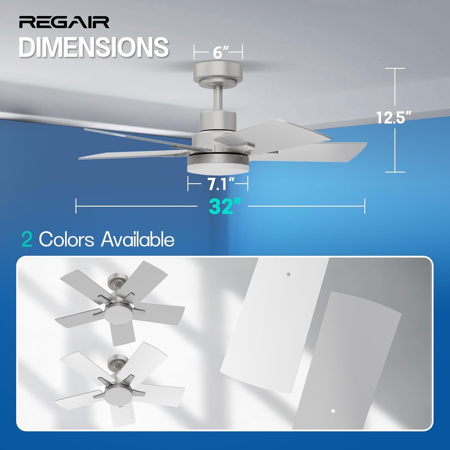 Elevate your living space with the Regair Ceiling Fan, a modern nickel-finished compact ceiling fan ideal for both indoor and outdoor settings.
