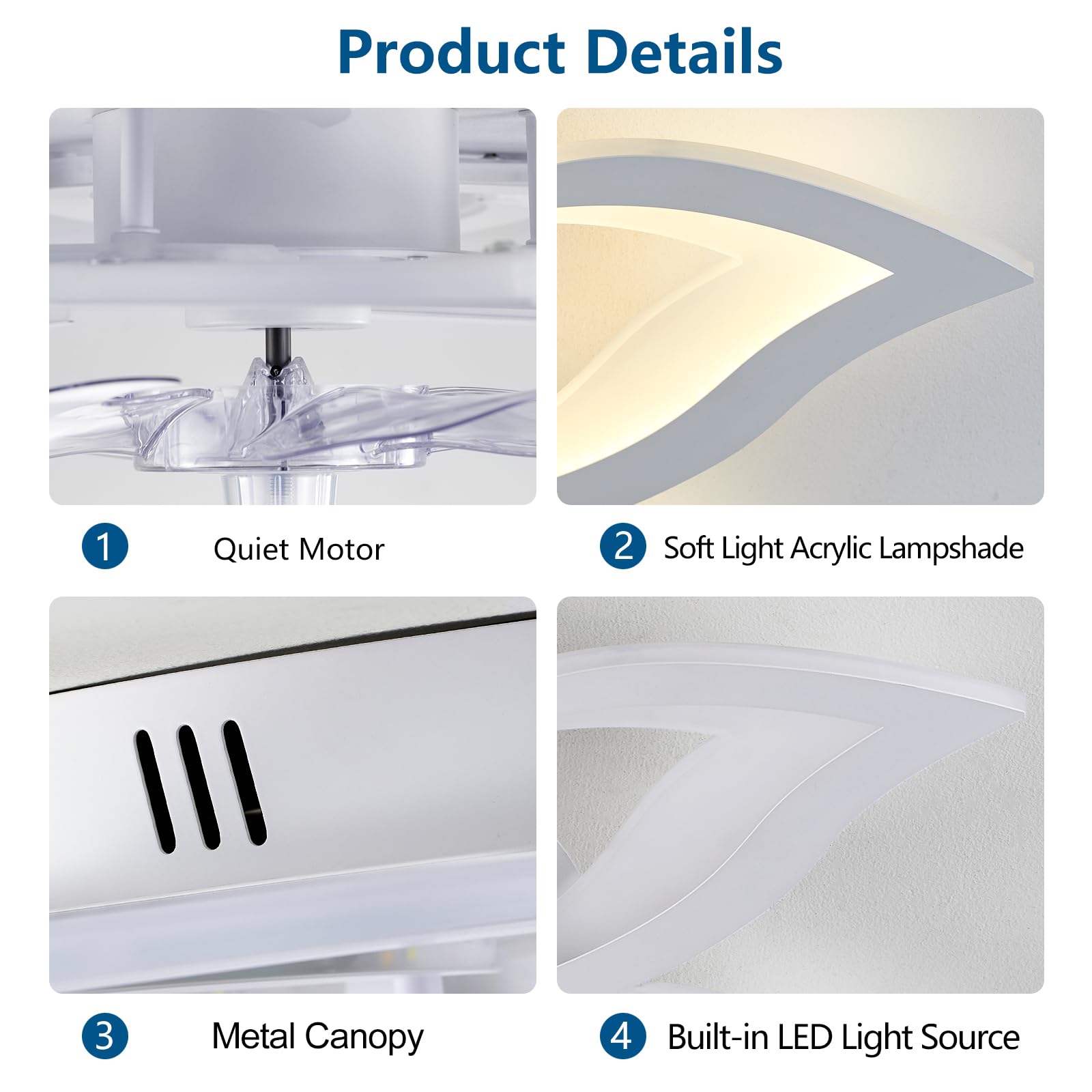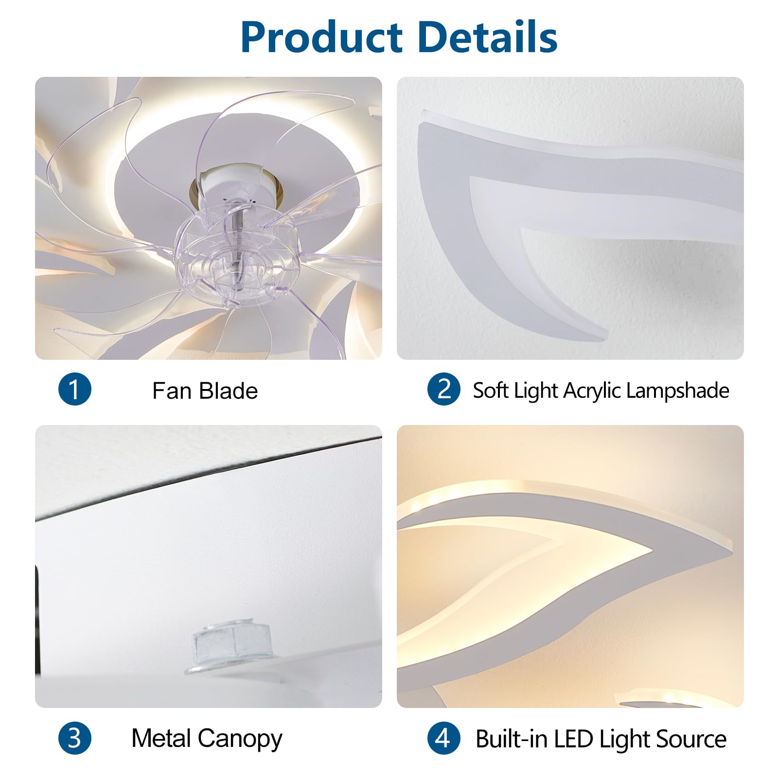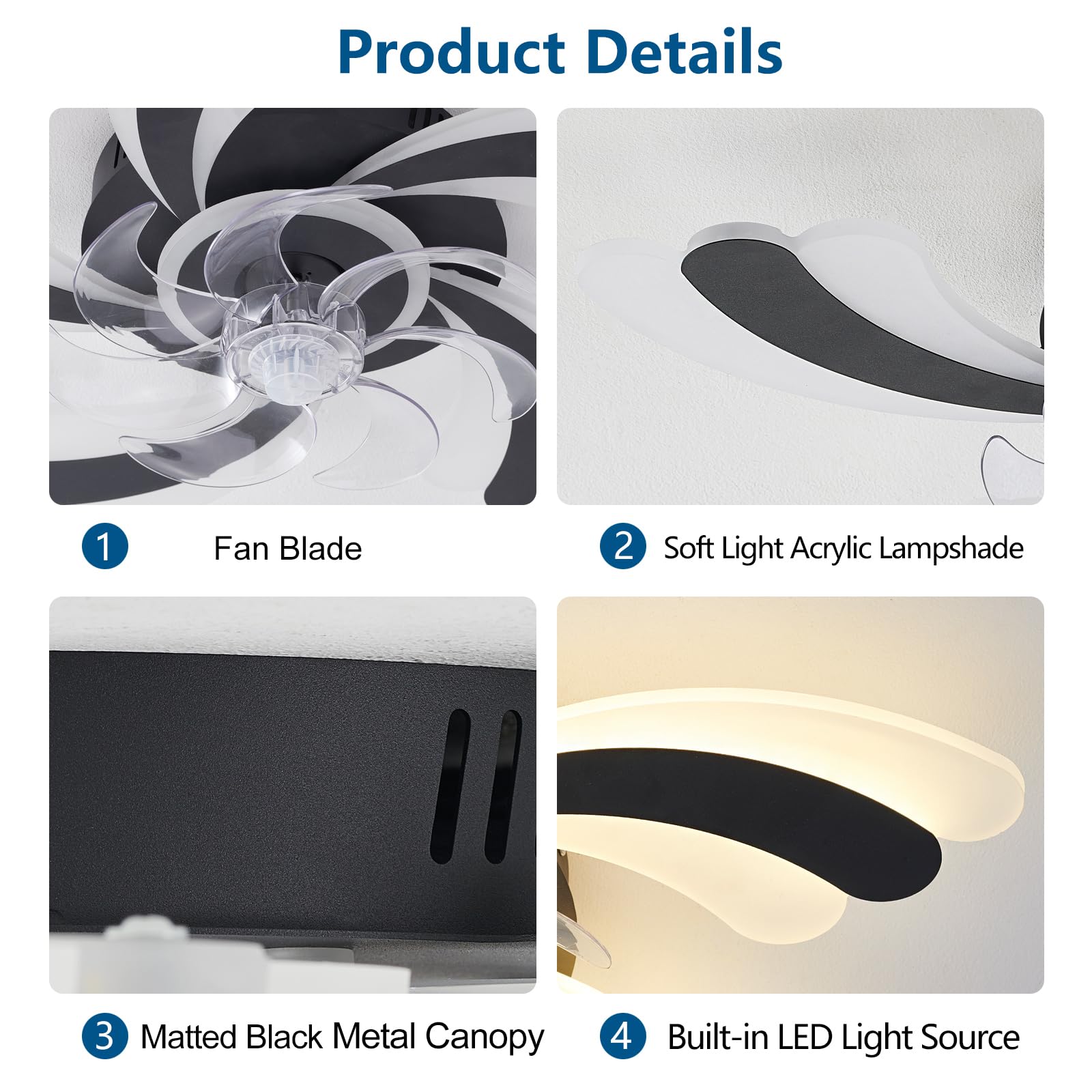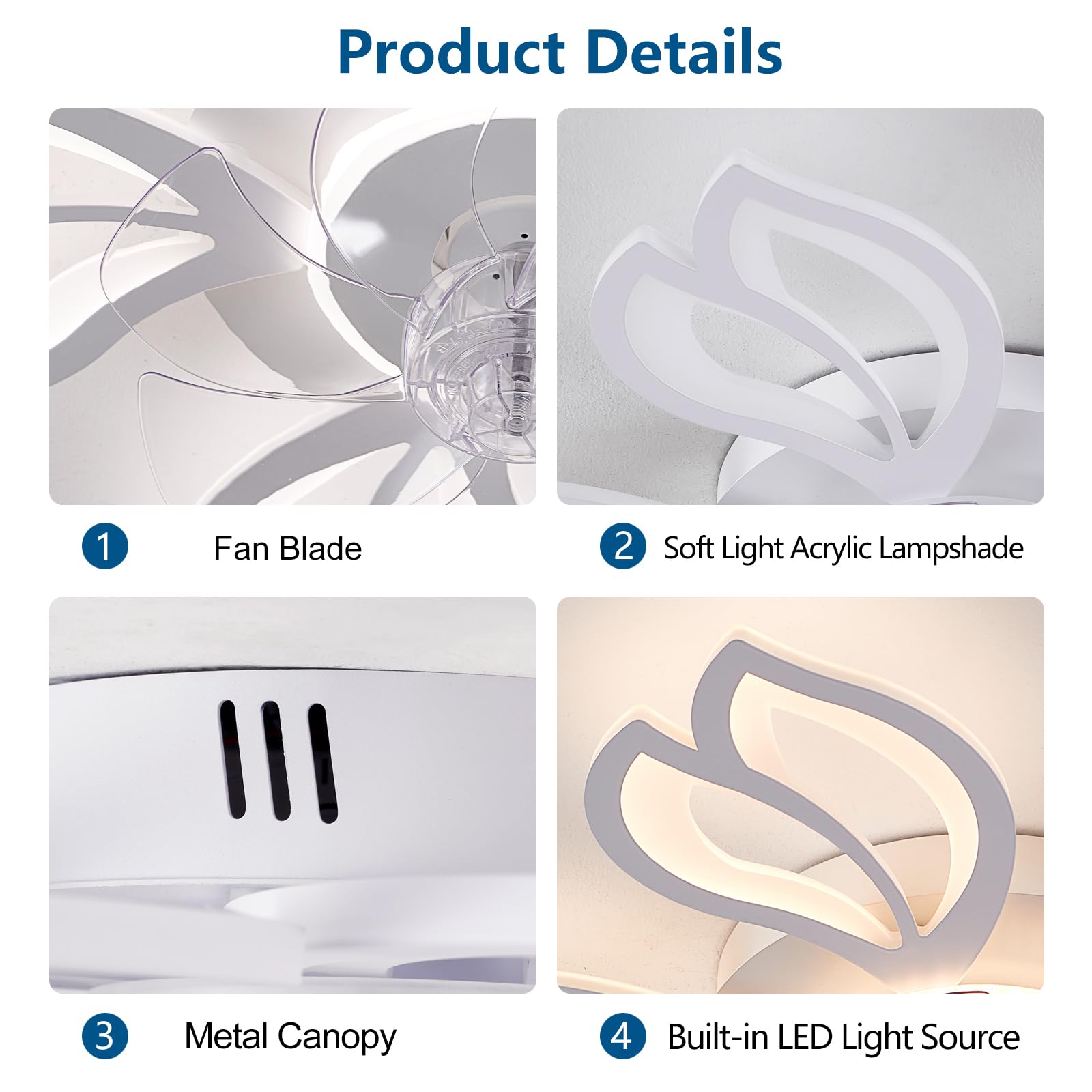 This flush mount ceiling fan contains 5 sturdy and wear-resistant fan blades, made of anti-fall pvc material, so that you will not be easily damaged during use, and the pvc material we use is very light, the ceiling fan rotates without noise, allowing you to stay at home enjoy every day.