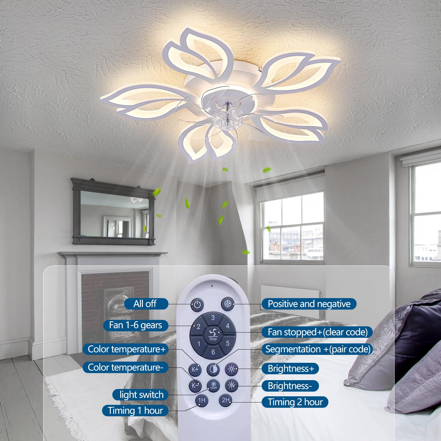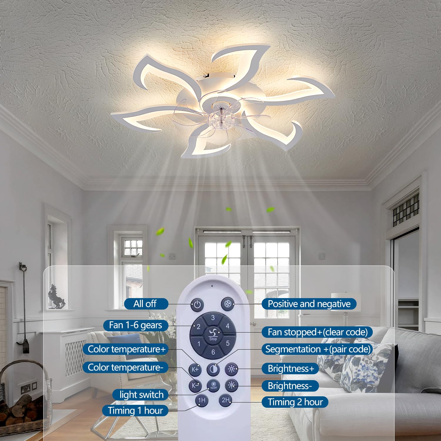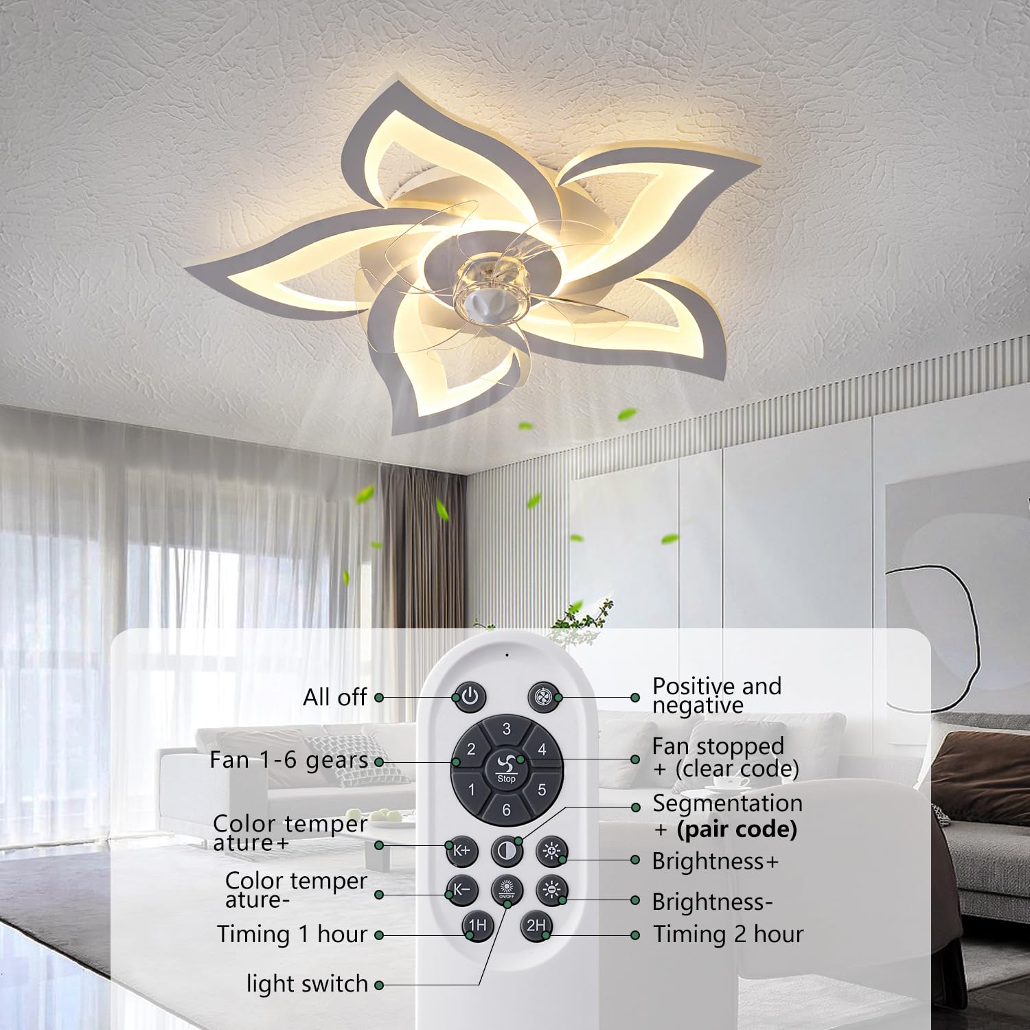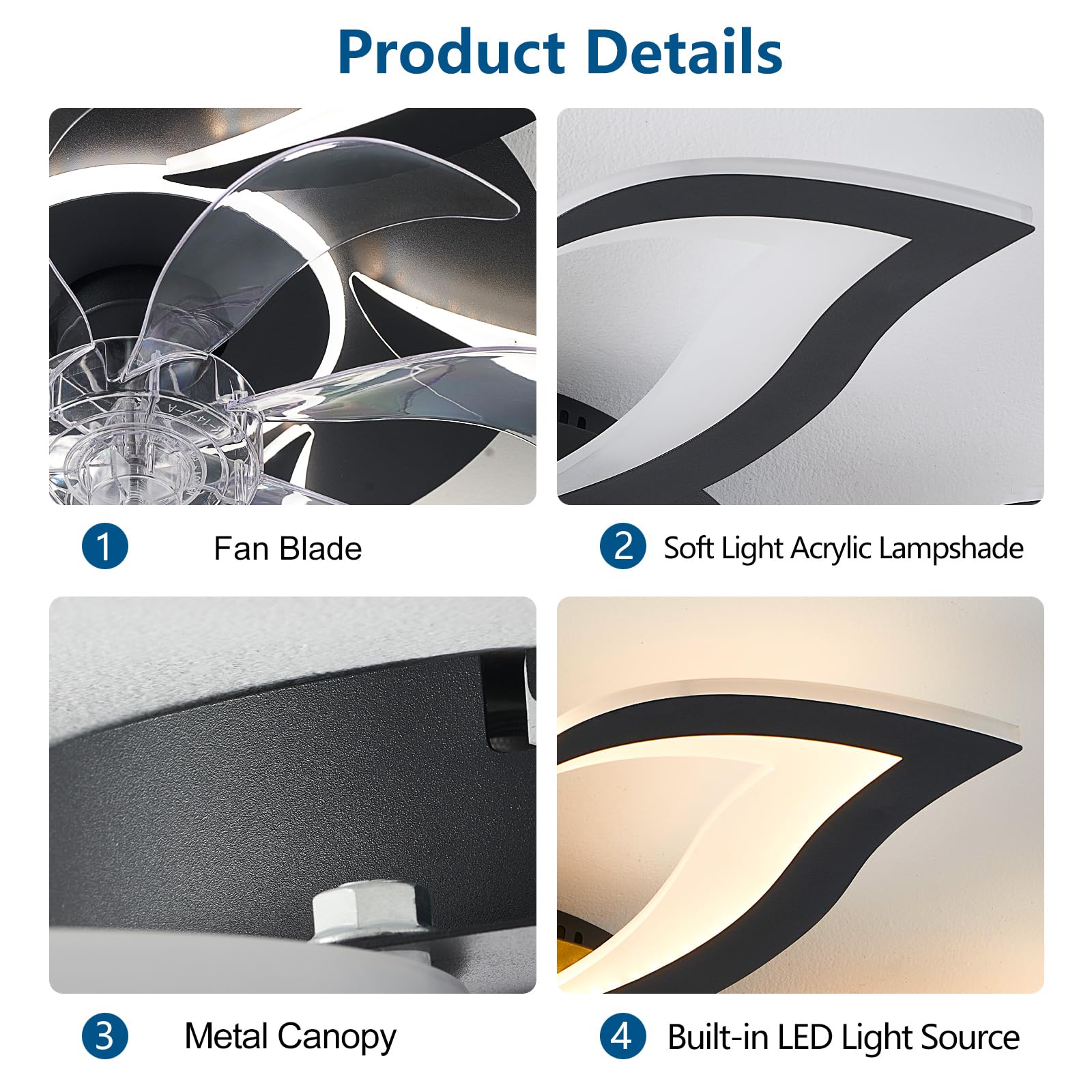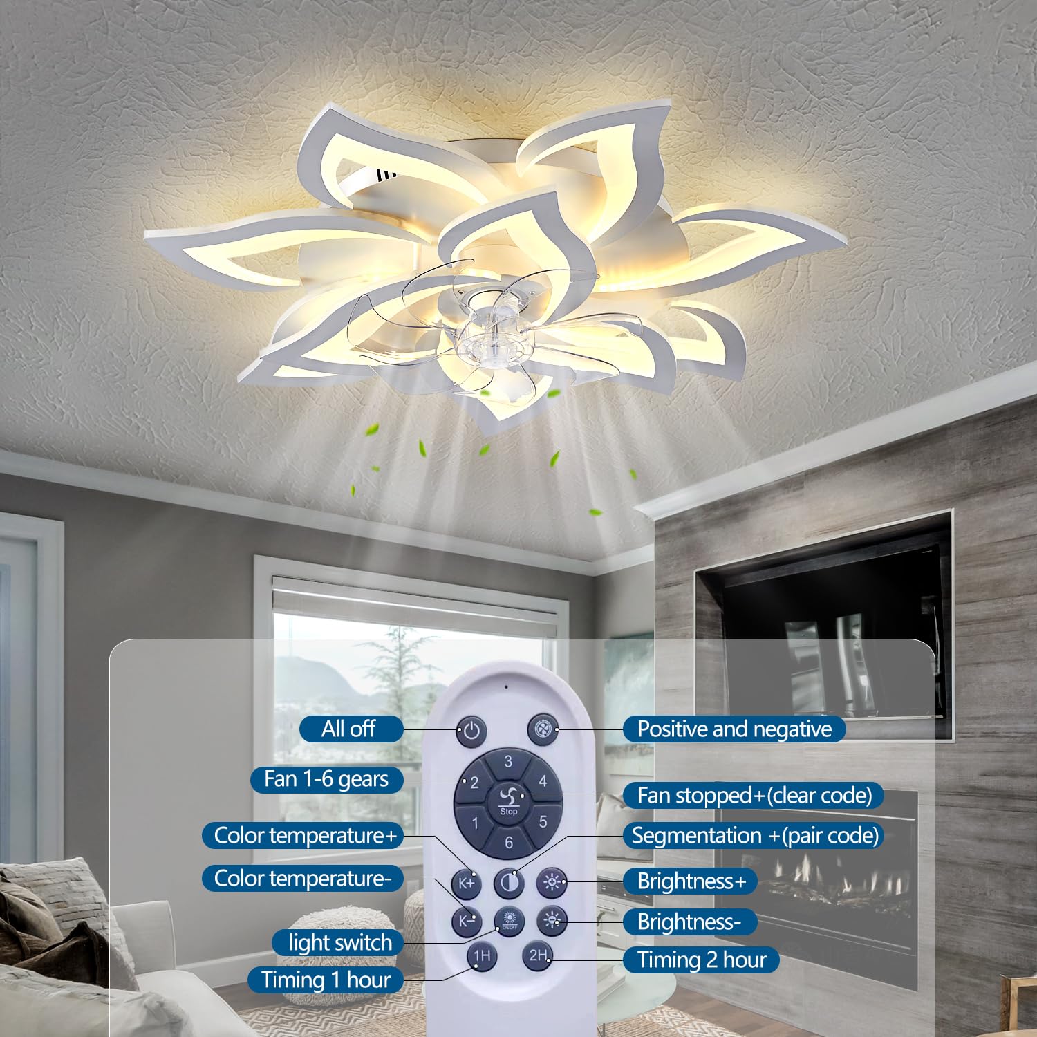 - 【1/2 H Timing Function】—This personalized and fashionable ceiling fan with light can be intelligently set (1/2 hours) to sleep off, to automatically turn off the fan after you fall asleep, save you from high electricity bill and being woken up, have a good rest. The fan or the lights can be turned on separately.