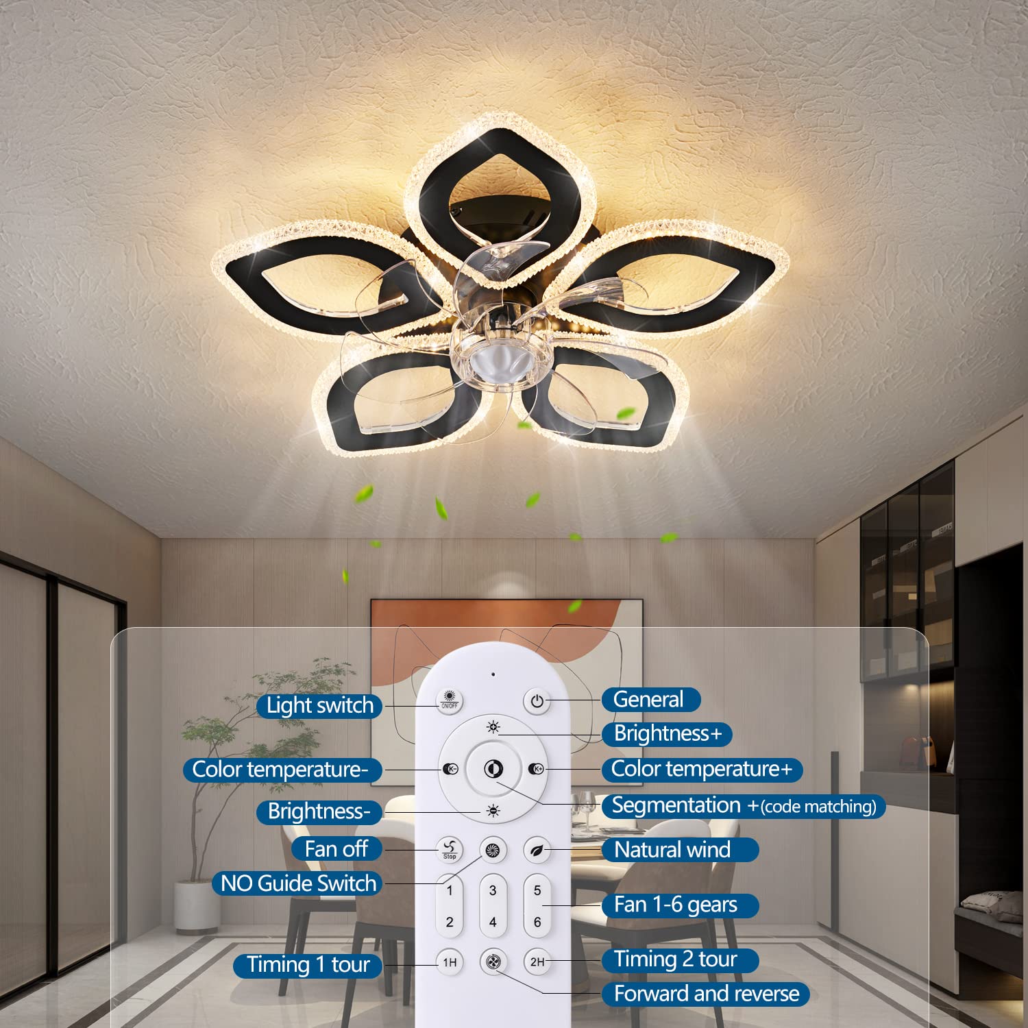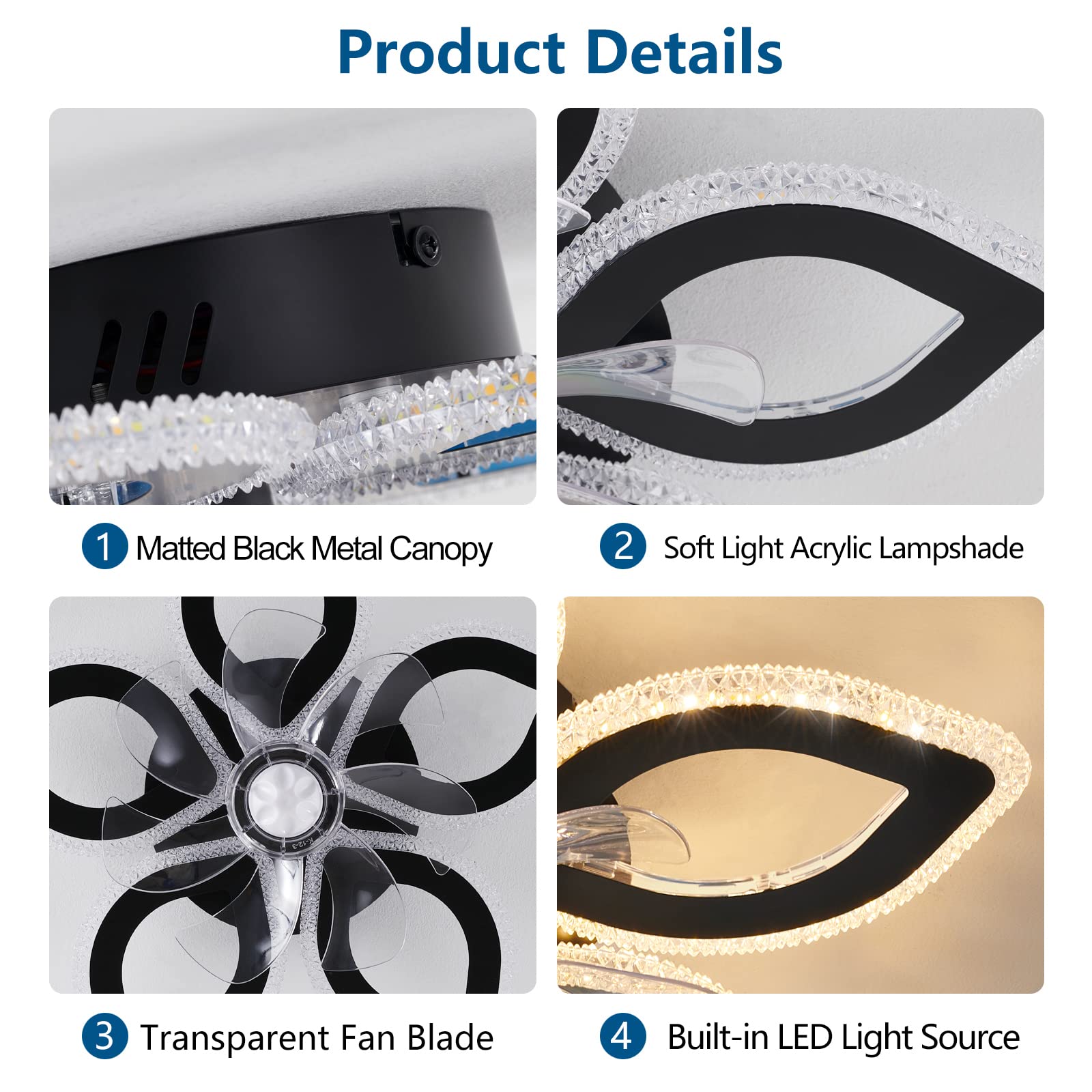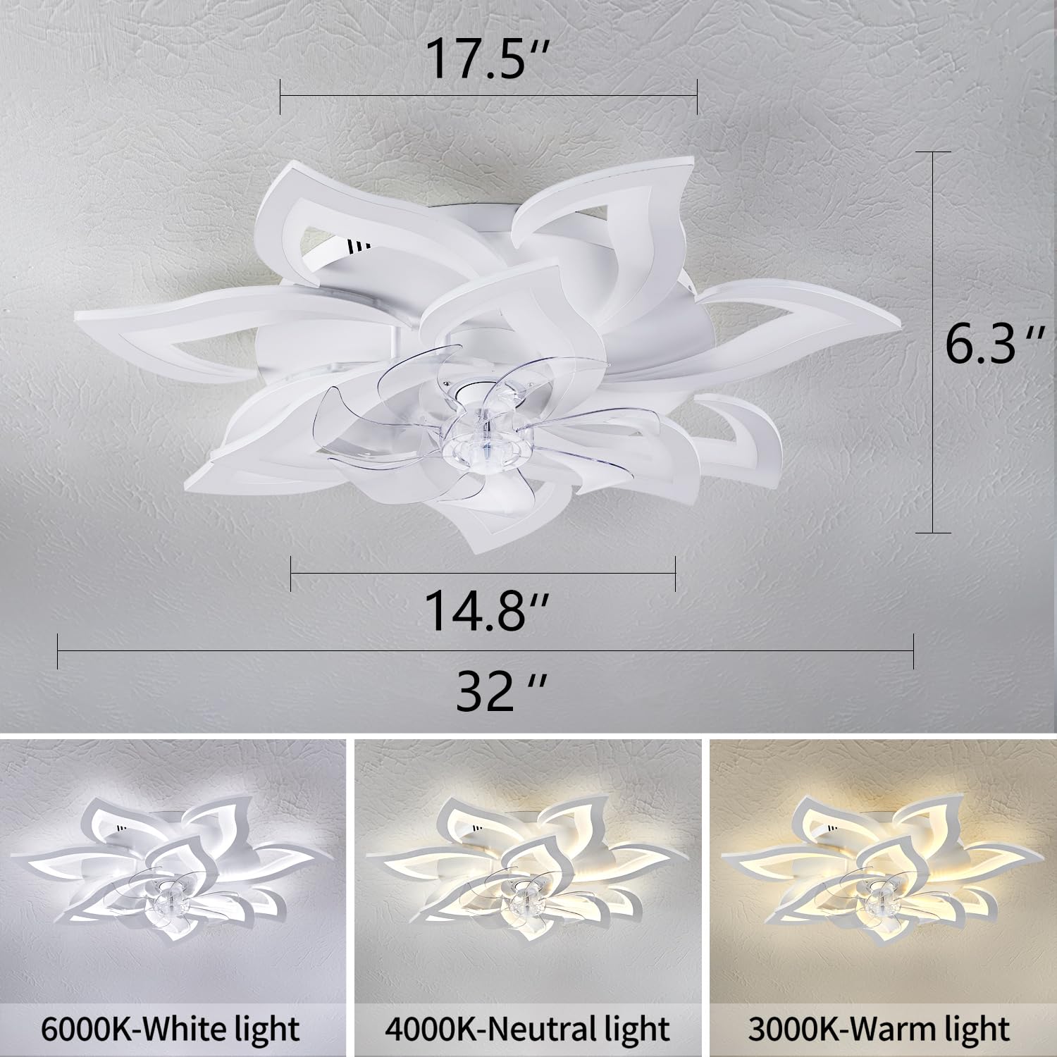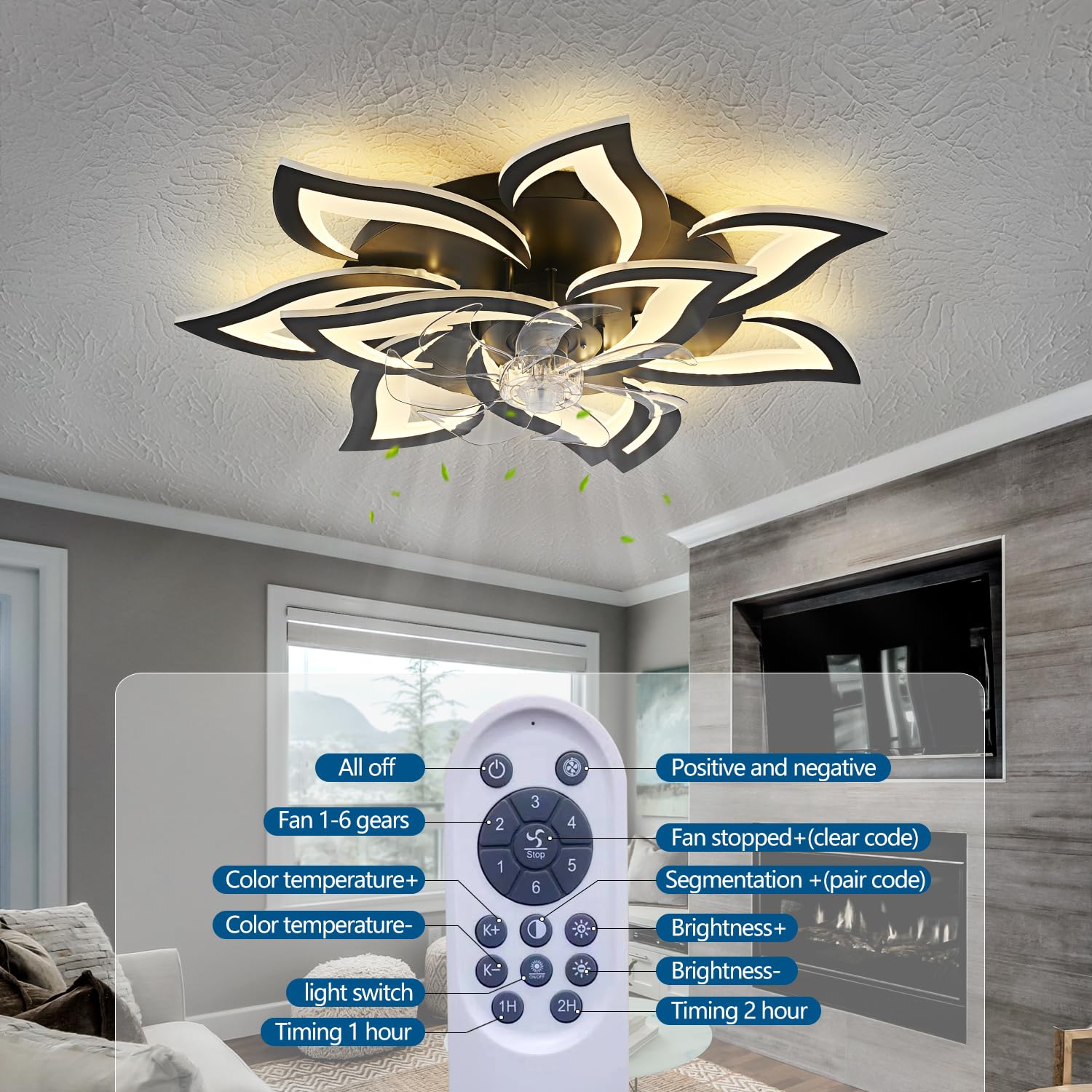 - 【1/2 H Timing Function】—This personalized and fashionable ceiling fan with light can be intelligently set (1/2 hours) to sleep off, to automatically turn off the fan after you fall asleep, save you from high electricity bill and being woken up, have a good rest. The fan or the lights can be turned on separately.