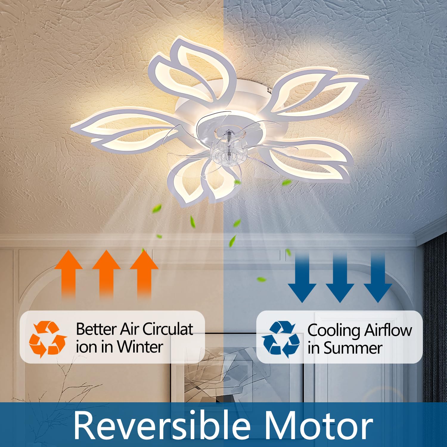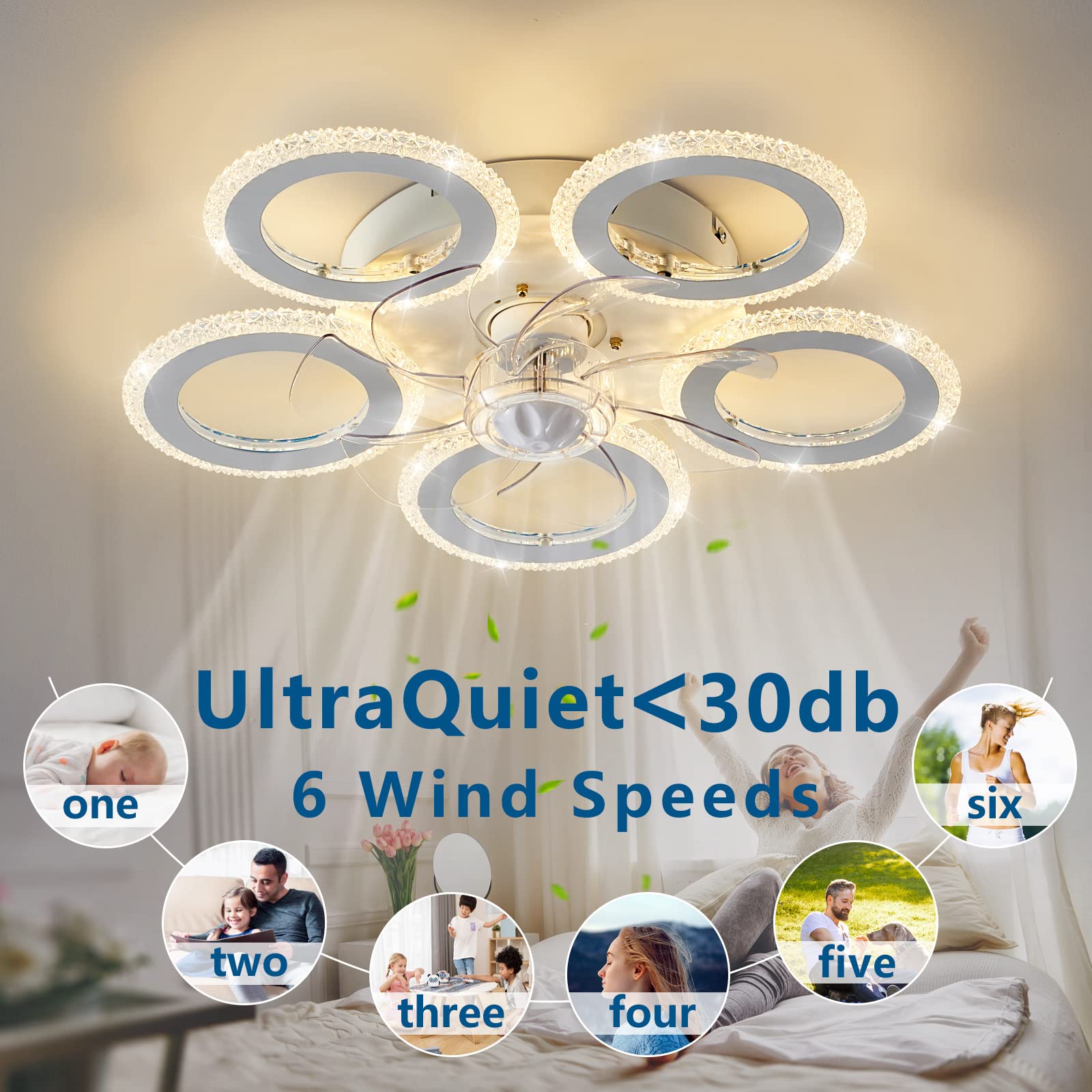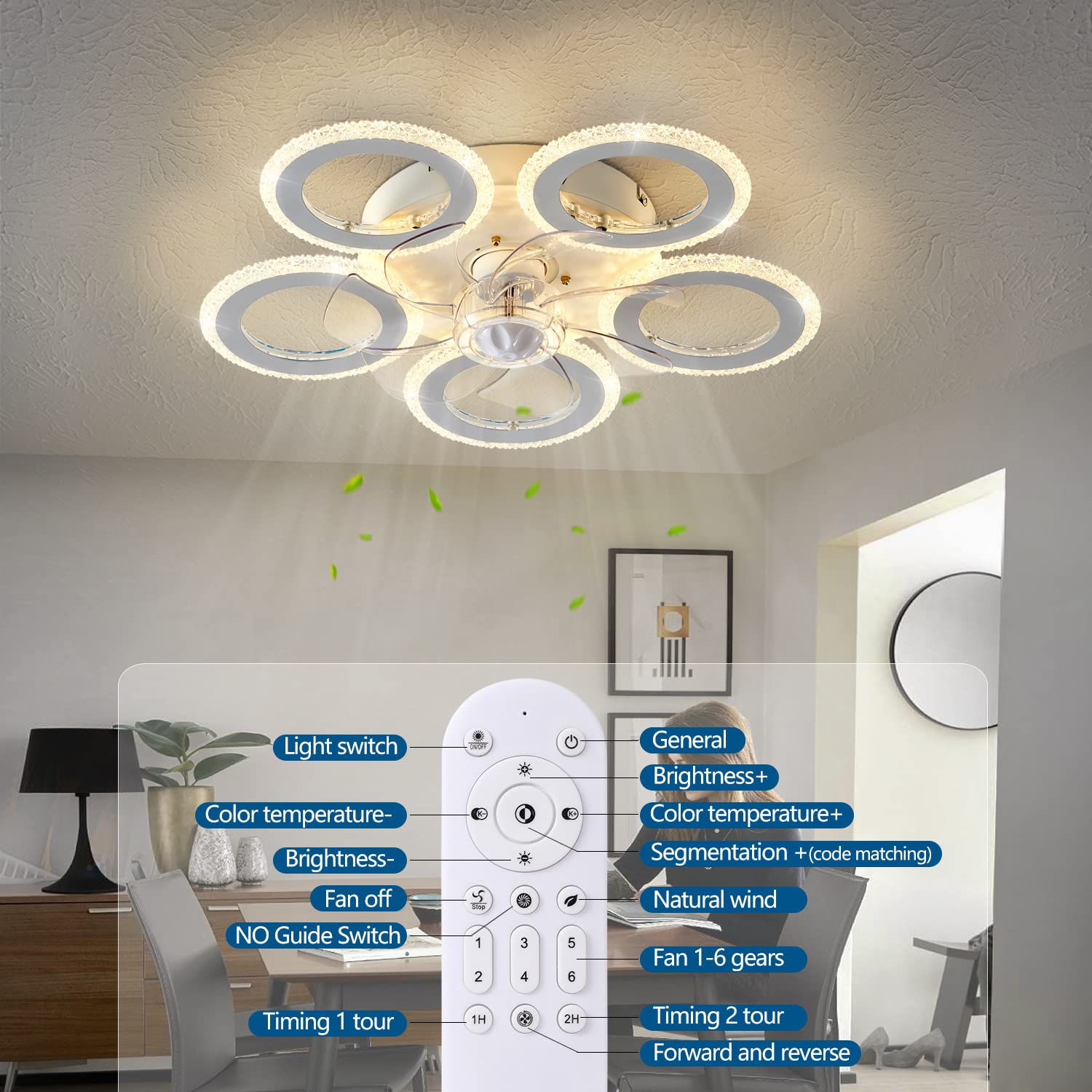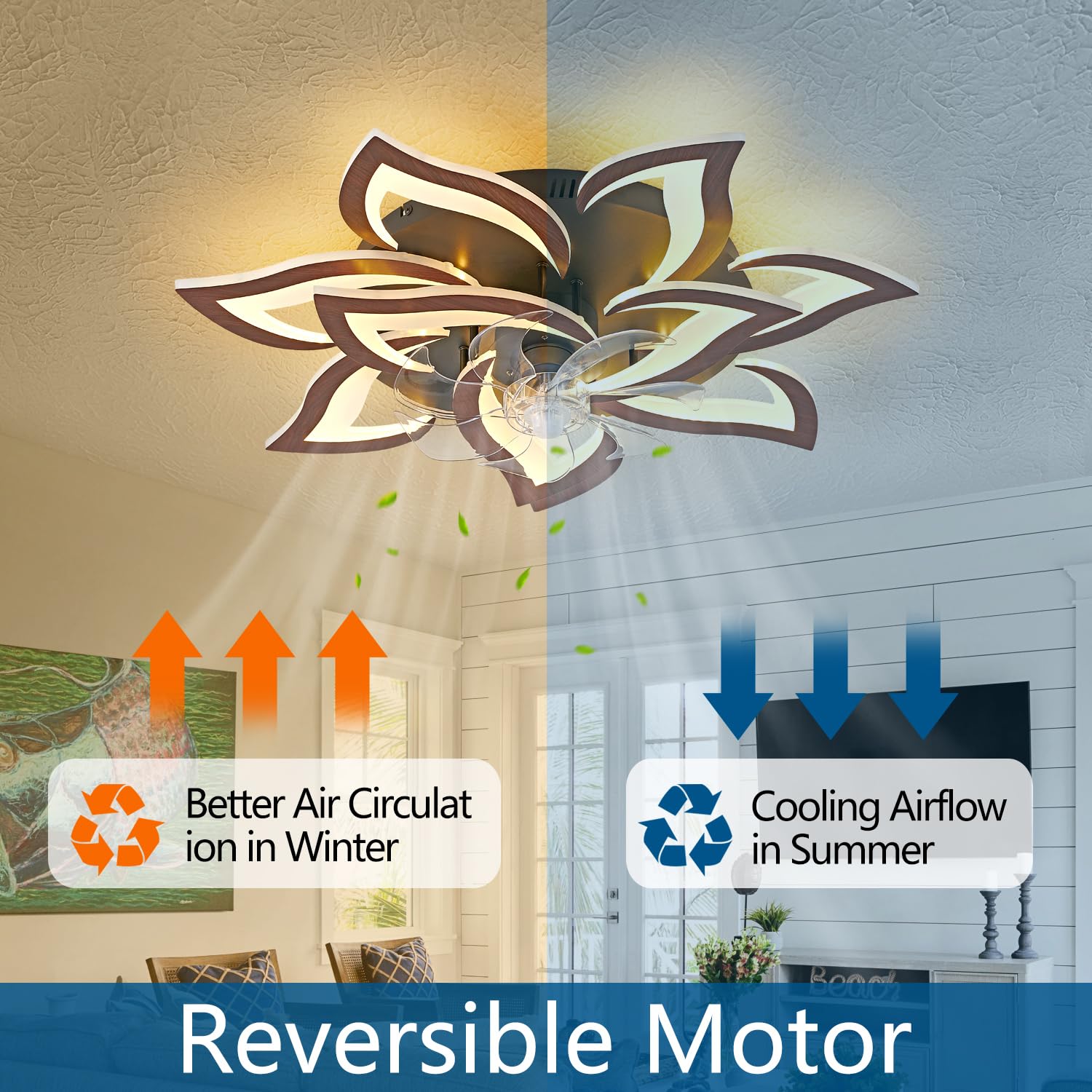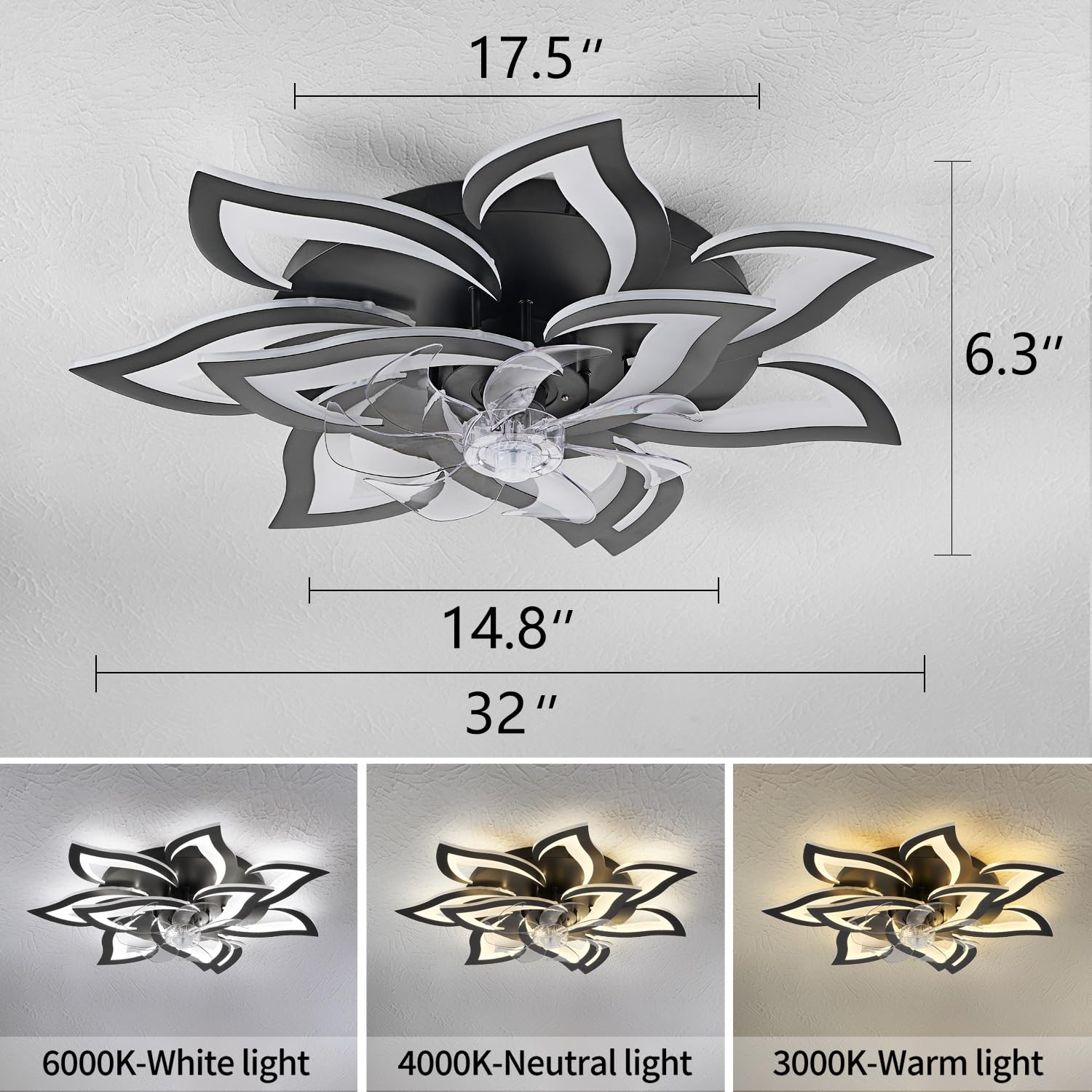 - 【1/2 H Timing Function】—This personalized and fashionable ceiling fan with light can be intelligently set (1/2 hours) to sleep off, to automatically turn off the fan after you fall asleep, save you from high electricity bill and being woken up, have a good rest. The fan or the lights can be turned on separately.