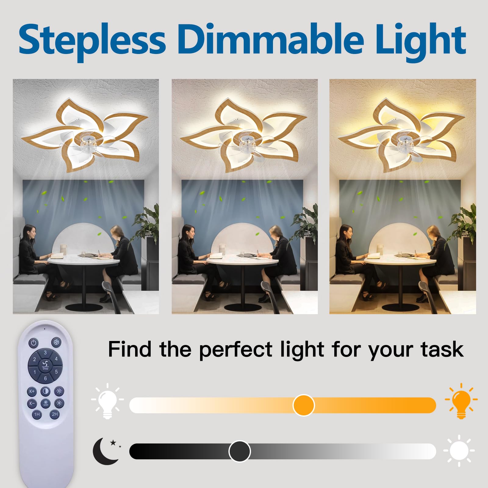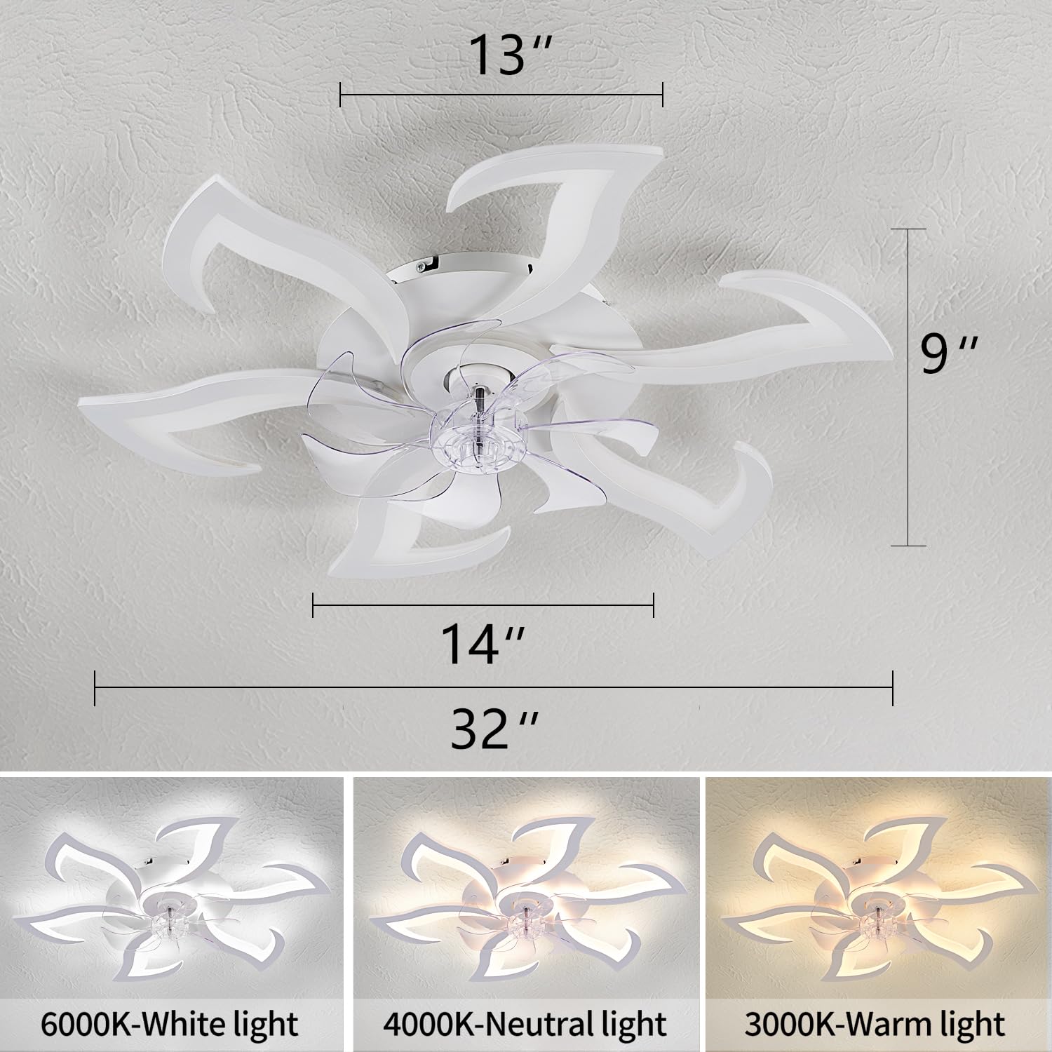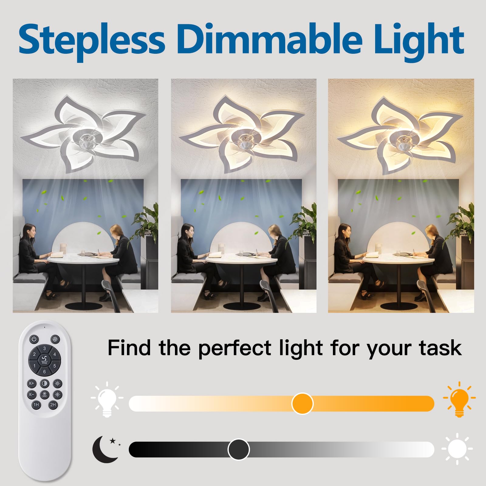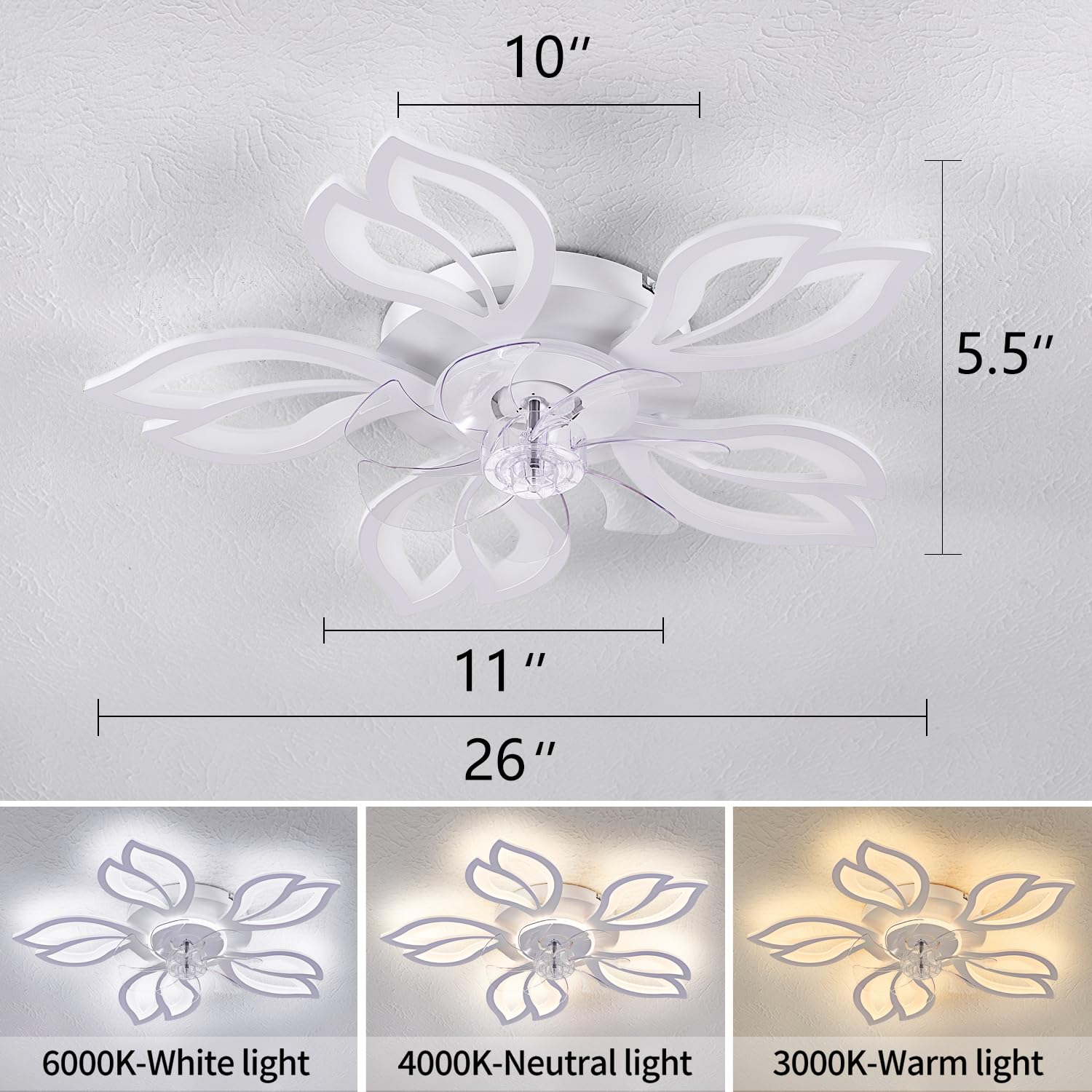 - 【3-Color Modes & Dimmable Light】—This is a three-color dimming flush mount ceiling fan with lights, which can switch between white light, warm light and neutral light. Built-in 2*36W LED light, adjustable brightness, brightness from 5% to 100%, you can choose the light with your favorite color temperature and brightness according to your preference.