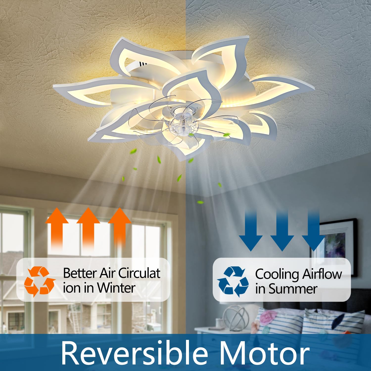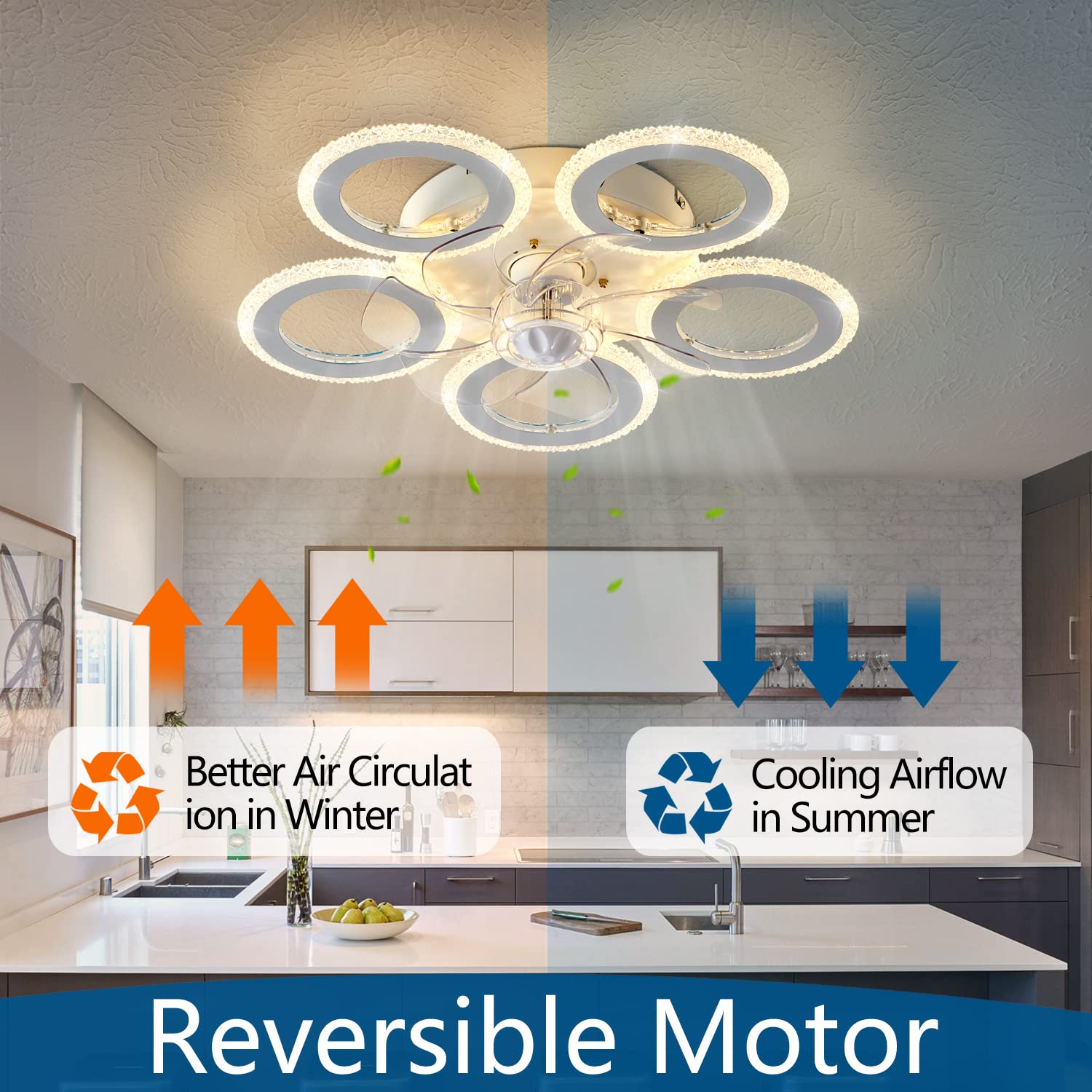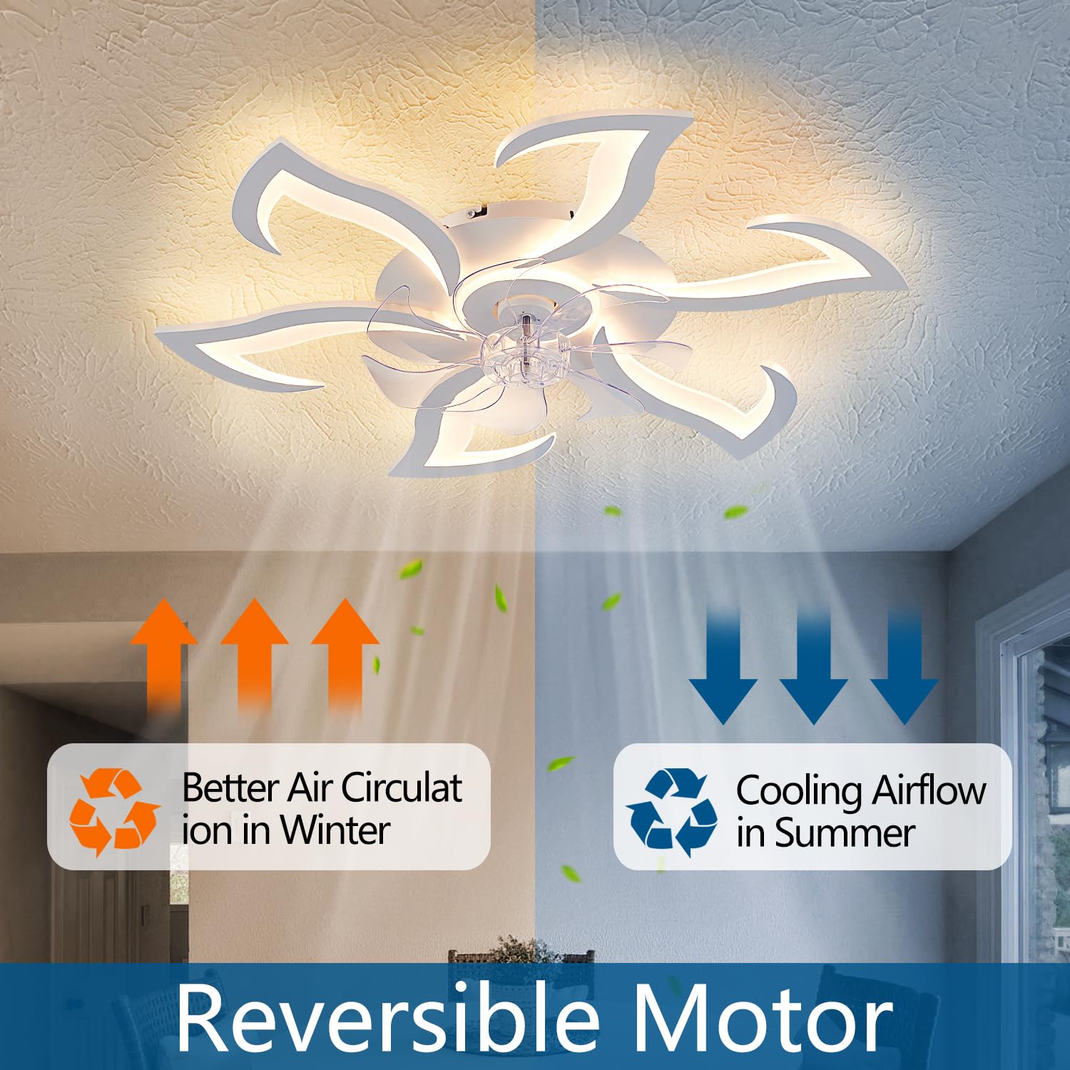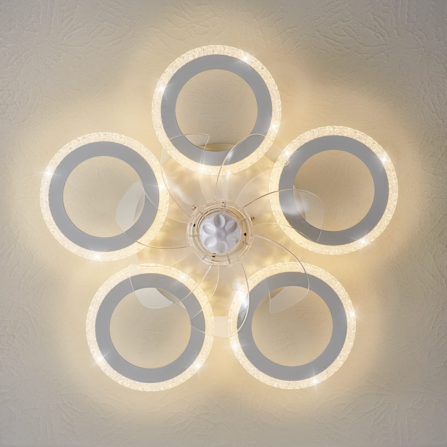 - 【Personality Geometric Ceiling Fan 】—This modern and fashionable geometric ceiling fan with light has a built-in silent pure copper reversible motor, which can bring stable and strong power without noise, and the bladeless ceiling fan have the function of forward and reverse. The wind speed of the fan with light can be controlled by the remote control, and the suitable and comfortable wind force can be adjusted, which is suitable for rooms of 150-300 ft², such as dining room, bedroom, living room, children's room or nursery and so on.