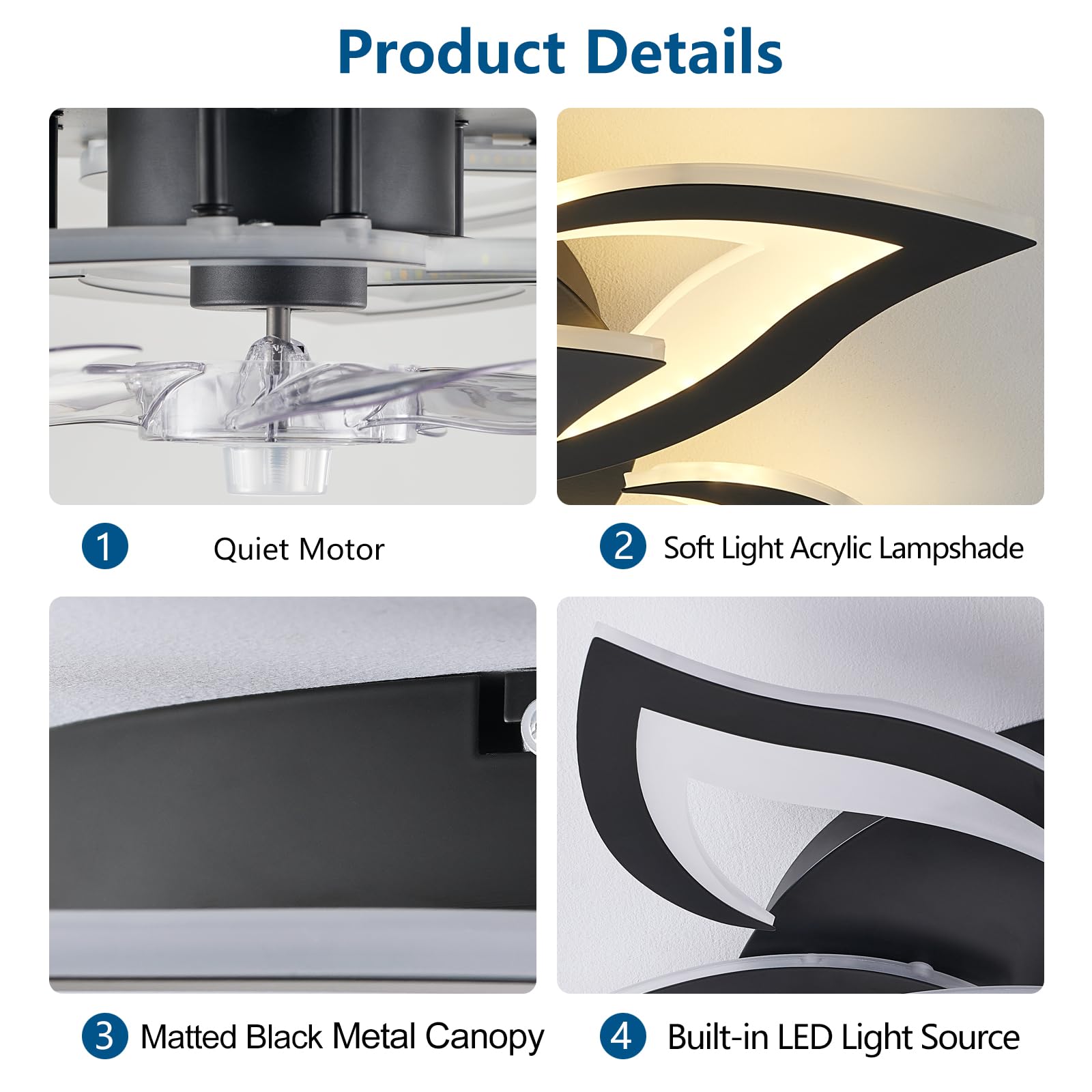 - 【Easy to Install & Clean】—Most of the functional parts have been assembled, the box contains a fan light, English instructions, accessories package, please read the installation instructions carefully before installation. The semi flush mount ceiling fan with light with semi-open design, easy to clean the fan blade, help the motor to dissipate heat quickly, making the fan safer and more durable.