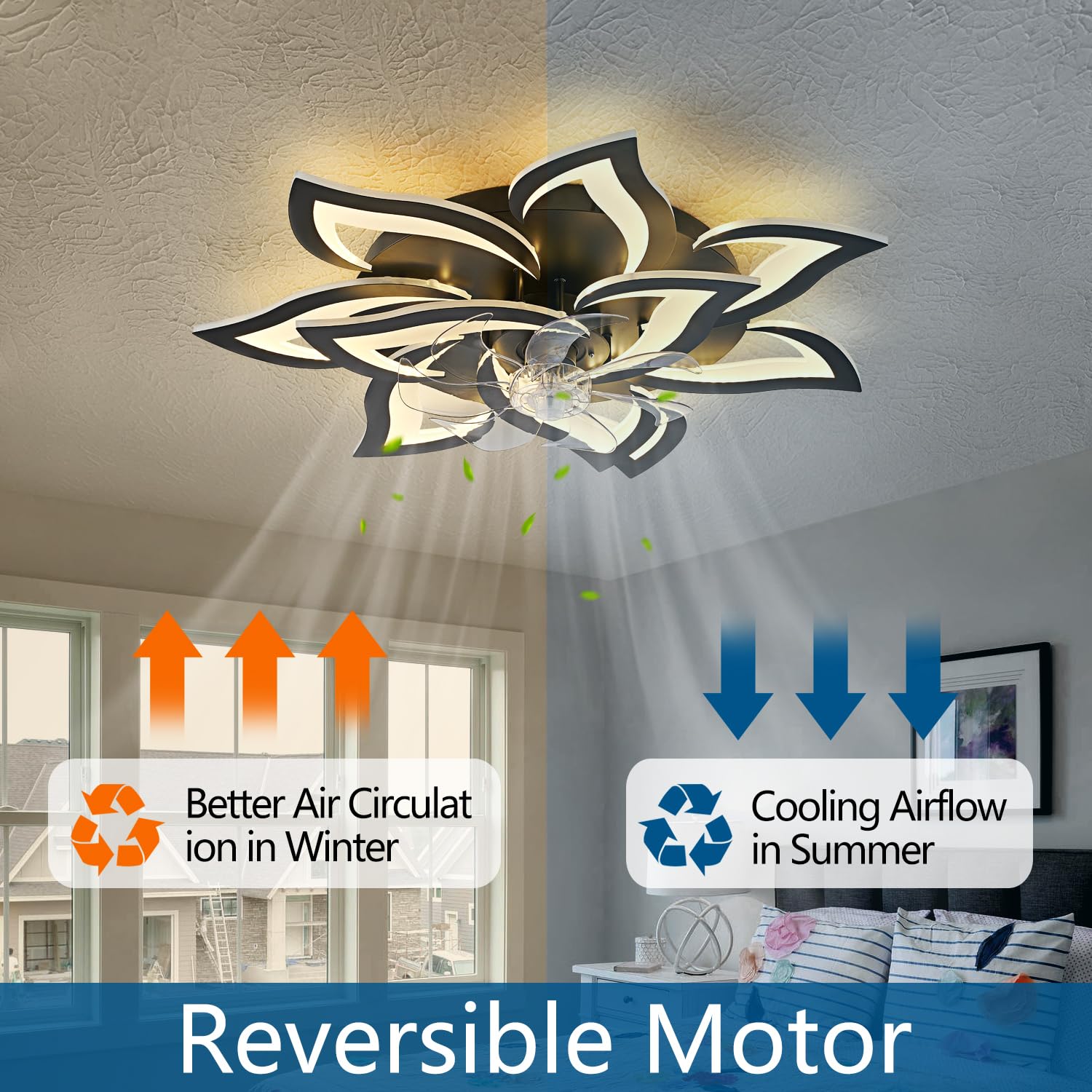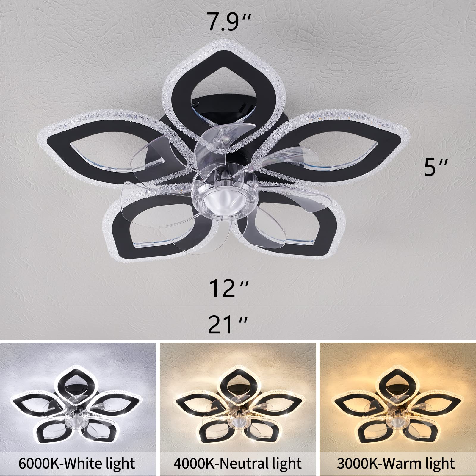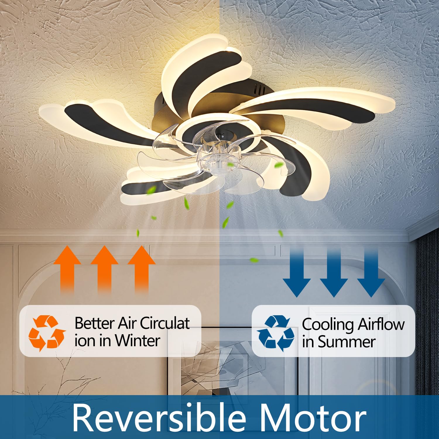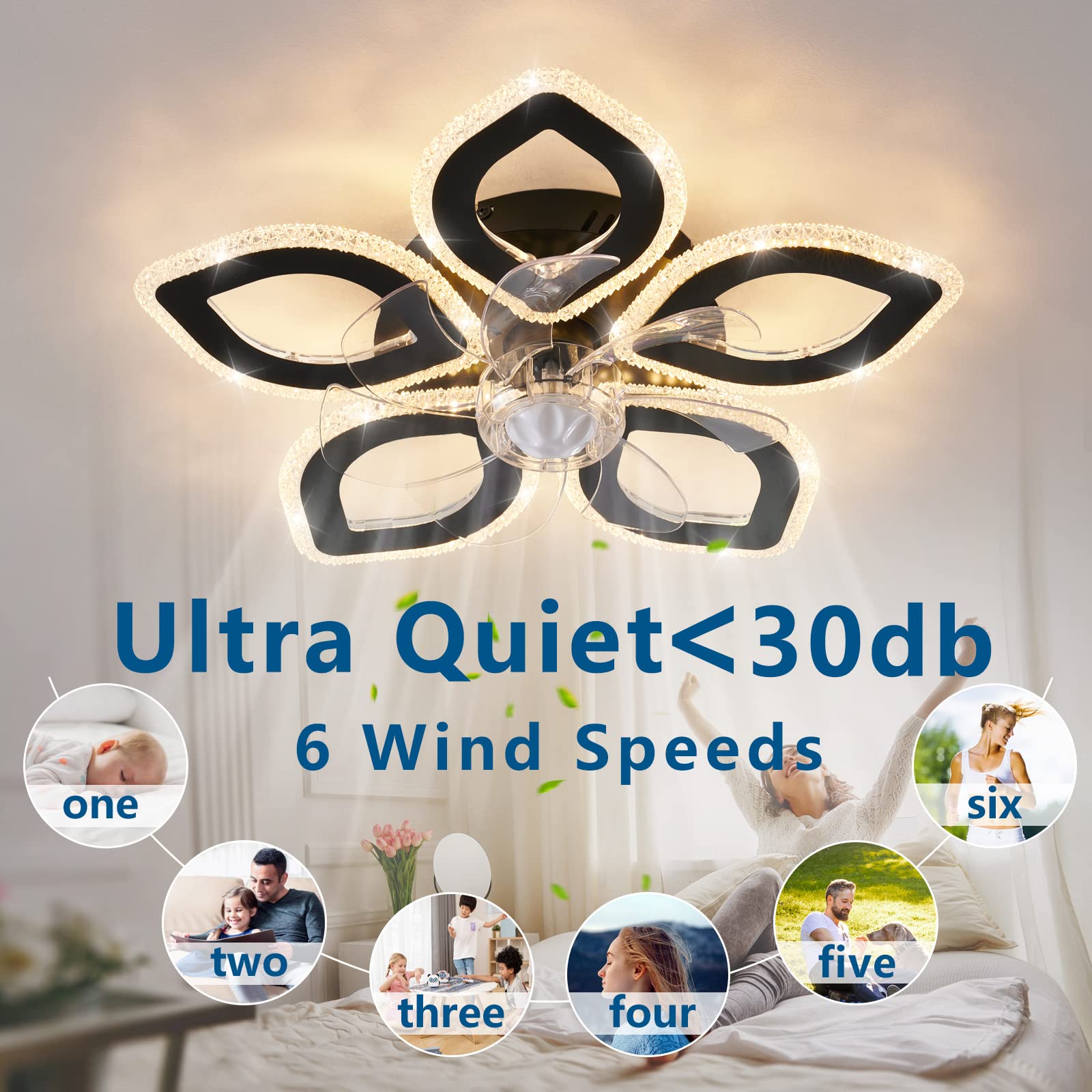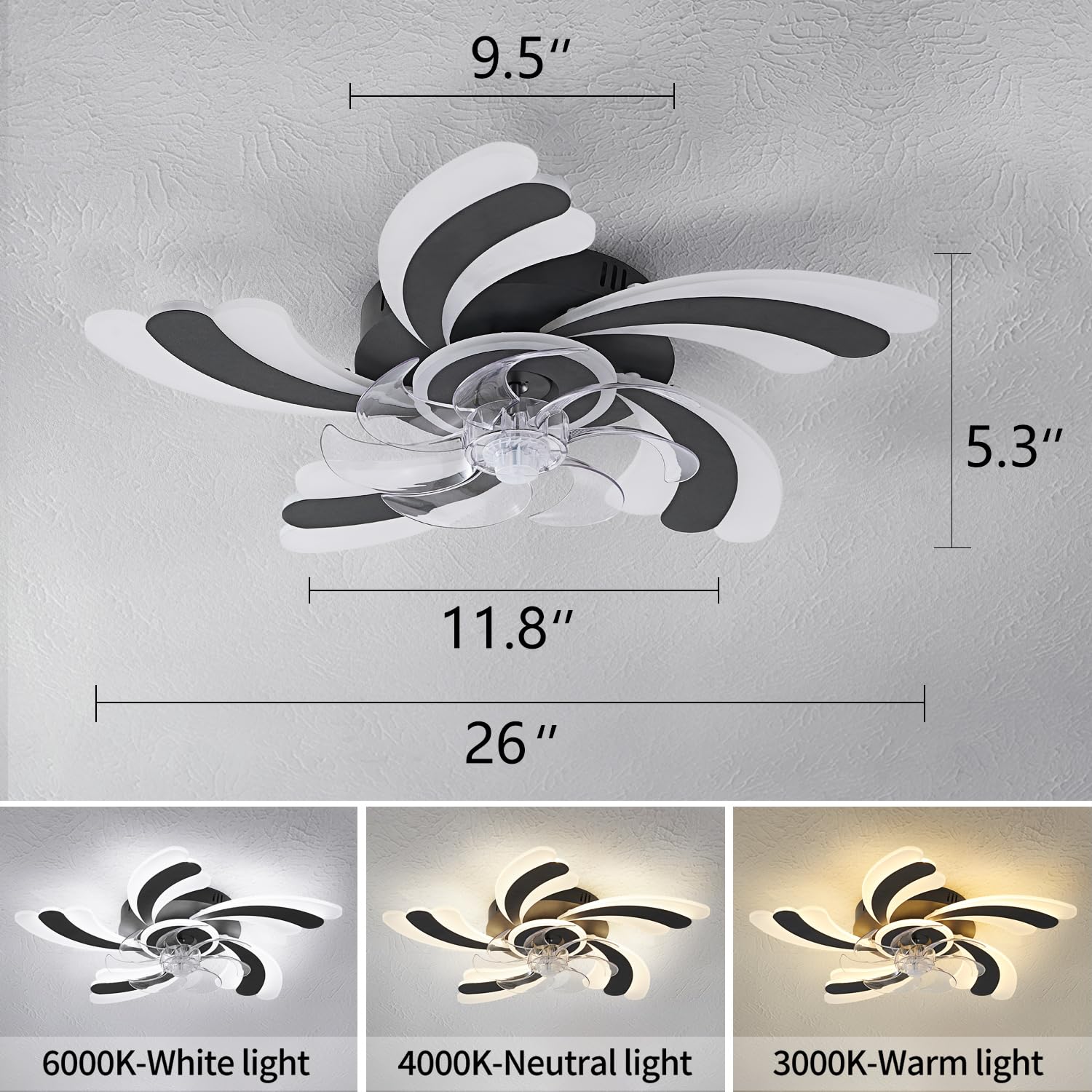 Ceiling Fan with Lights Remote Control, 24" Black, 6 Speeds 3 Light Color Low Profile Flush Mount Ceiling Fan for Kitchen Bedroom