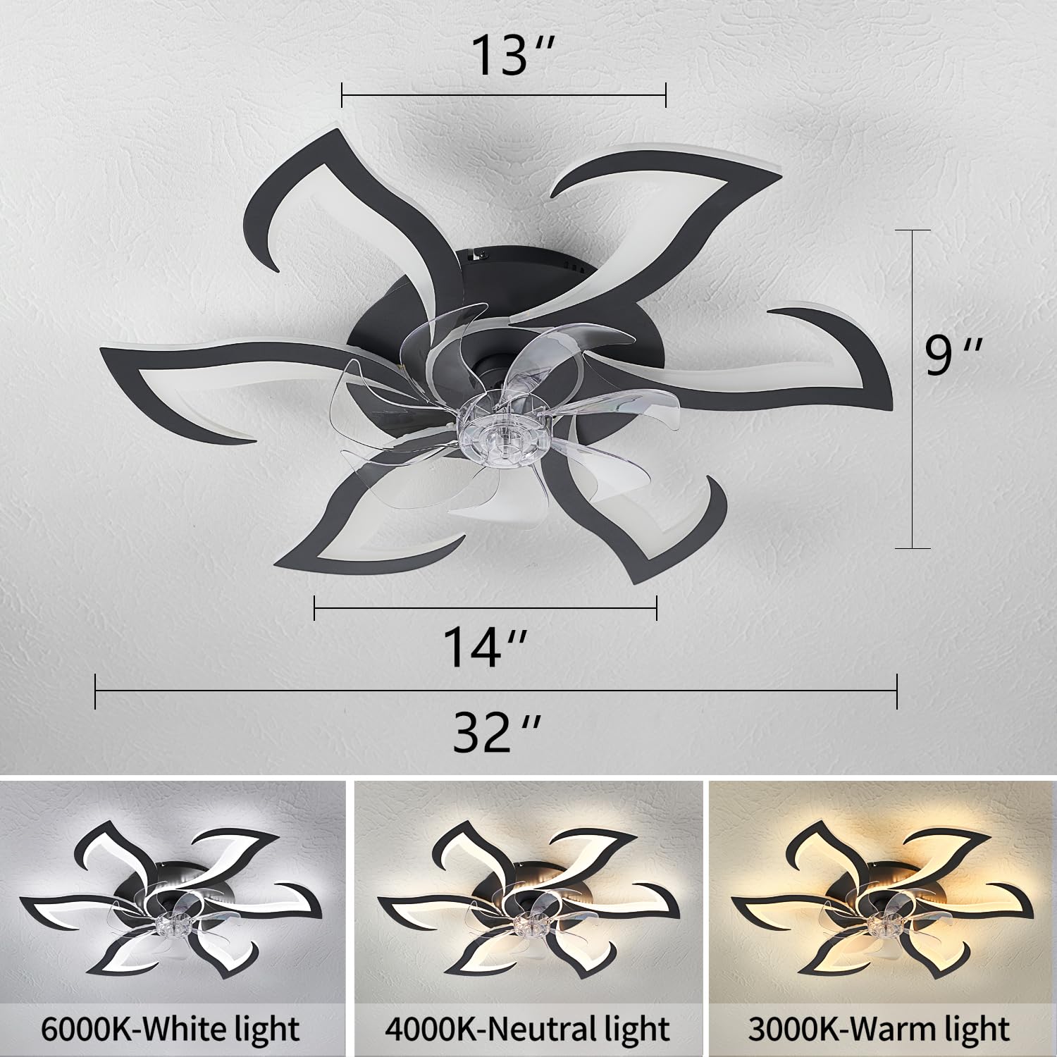 - The black ceiling fan with light adopts a modern and stylish design style, personalized geometric shape, built-in super bright 2*36W LED light, not only brings you warm light, but also brings you cool wind.