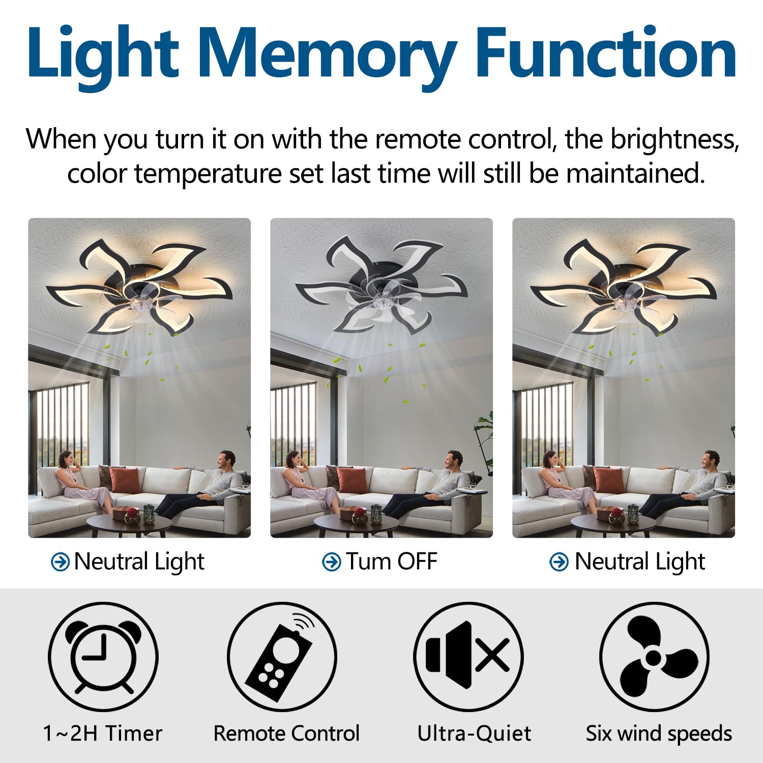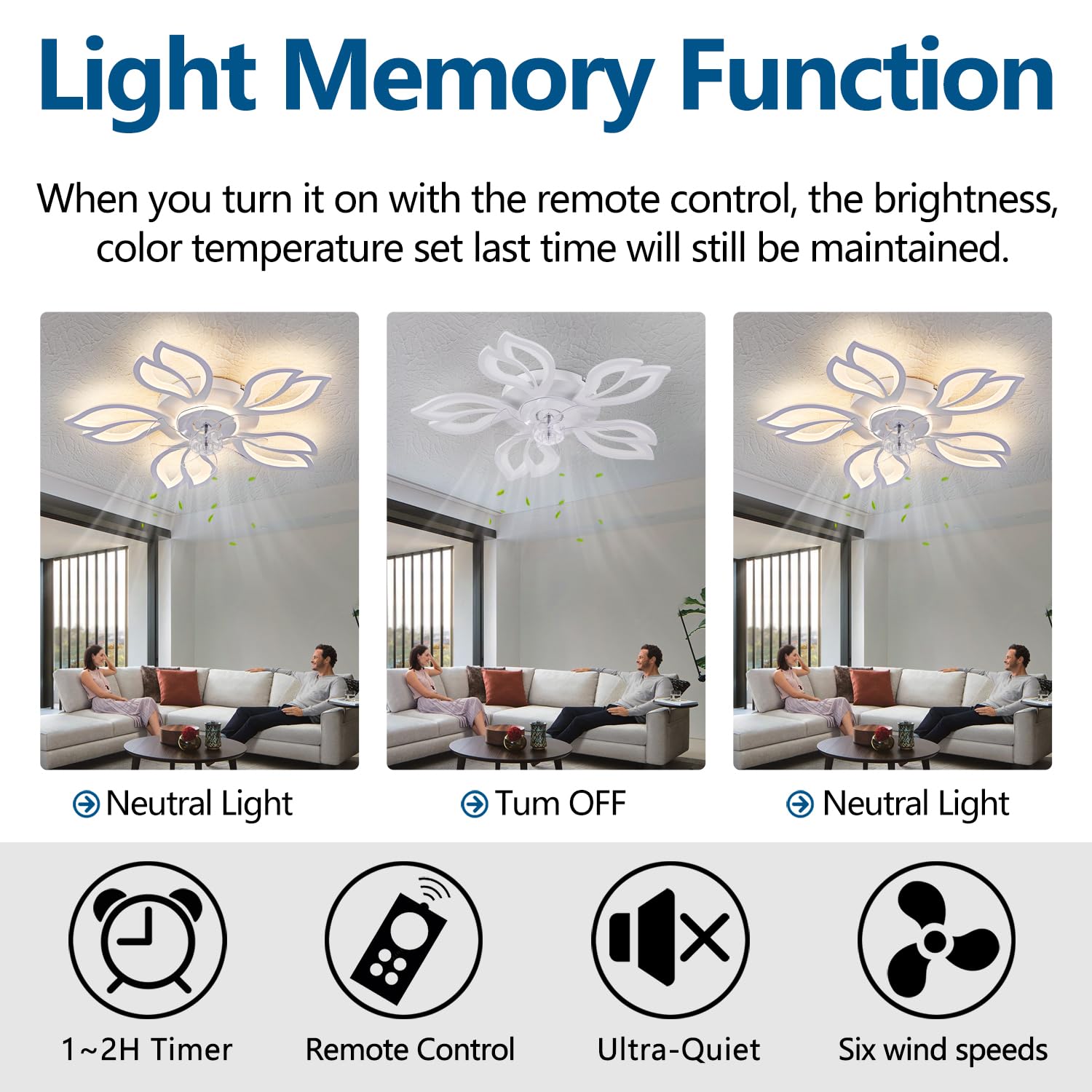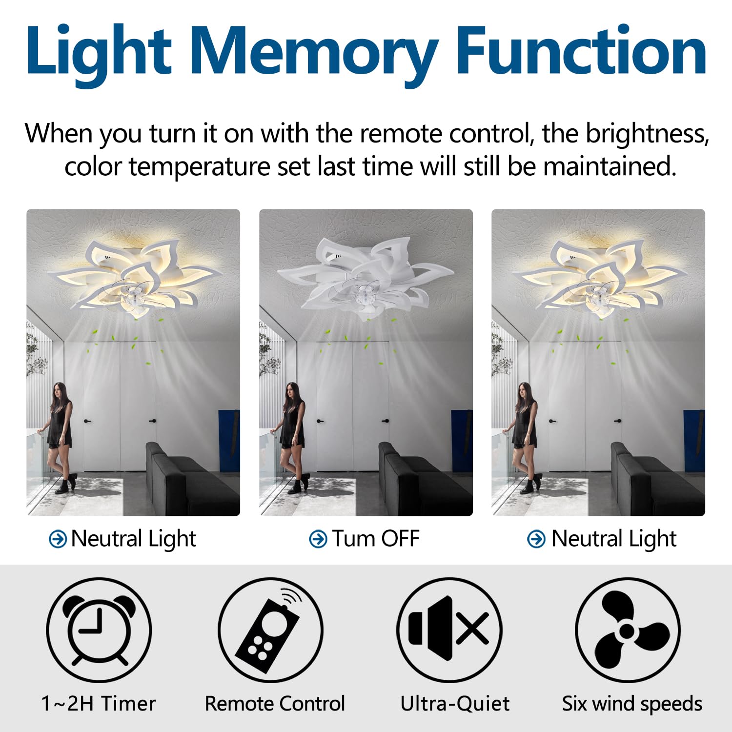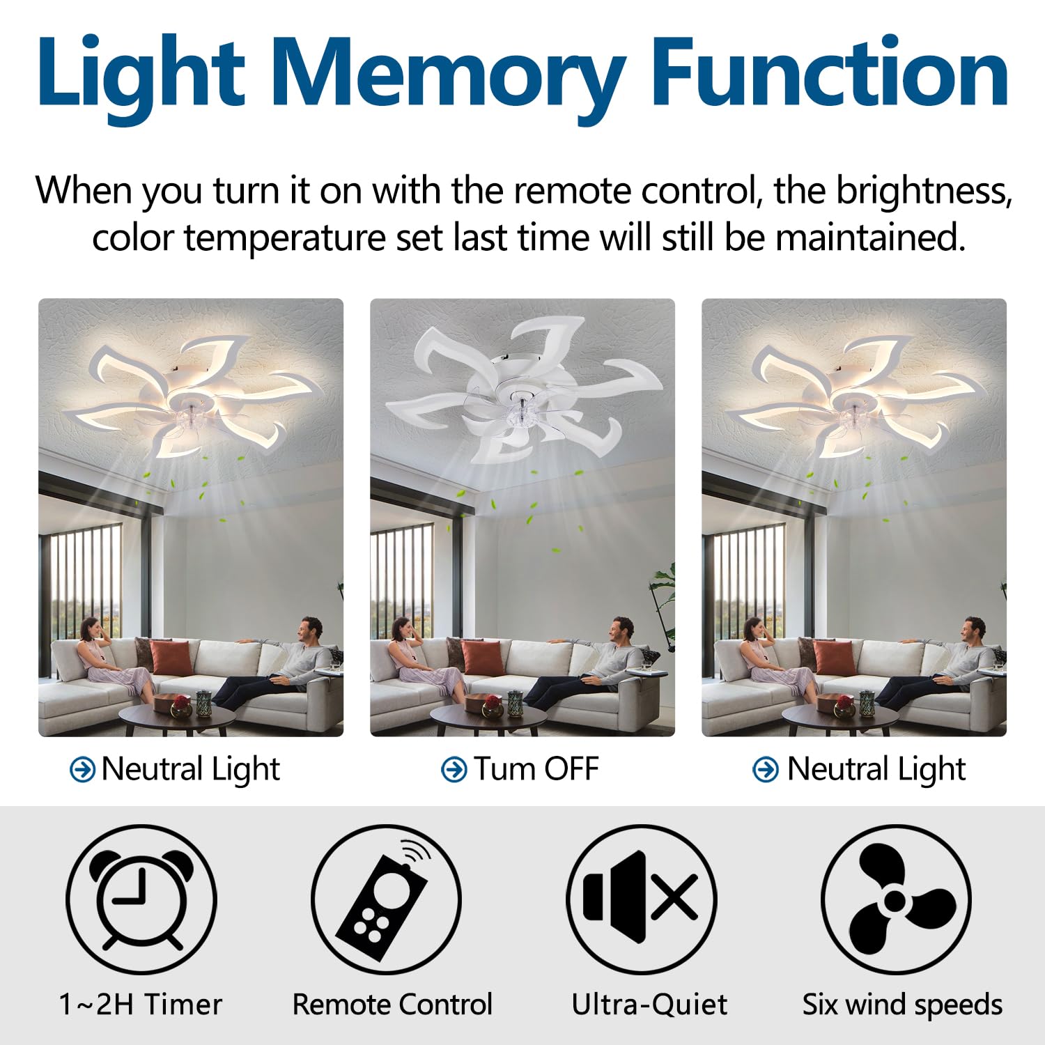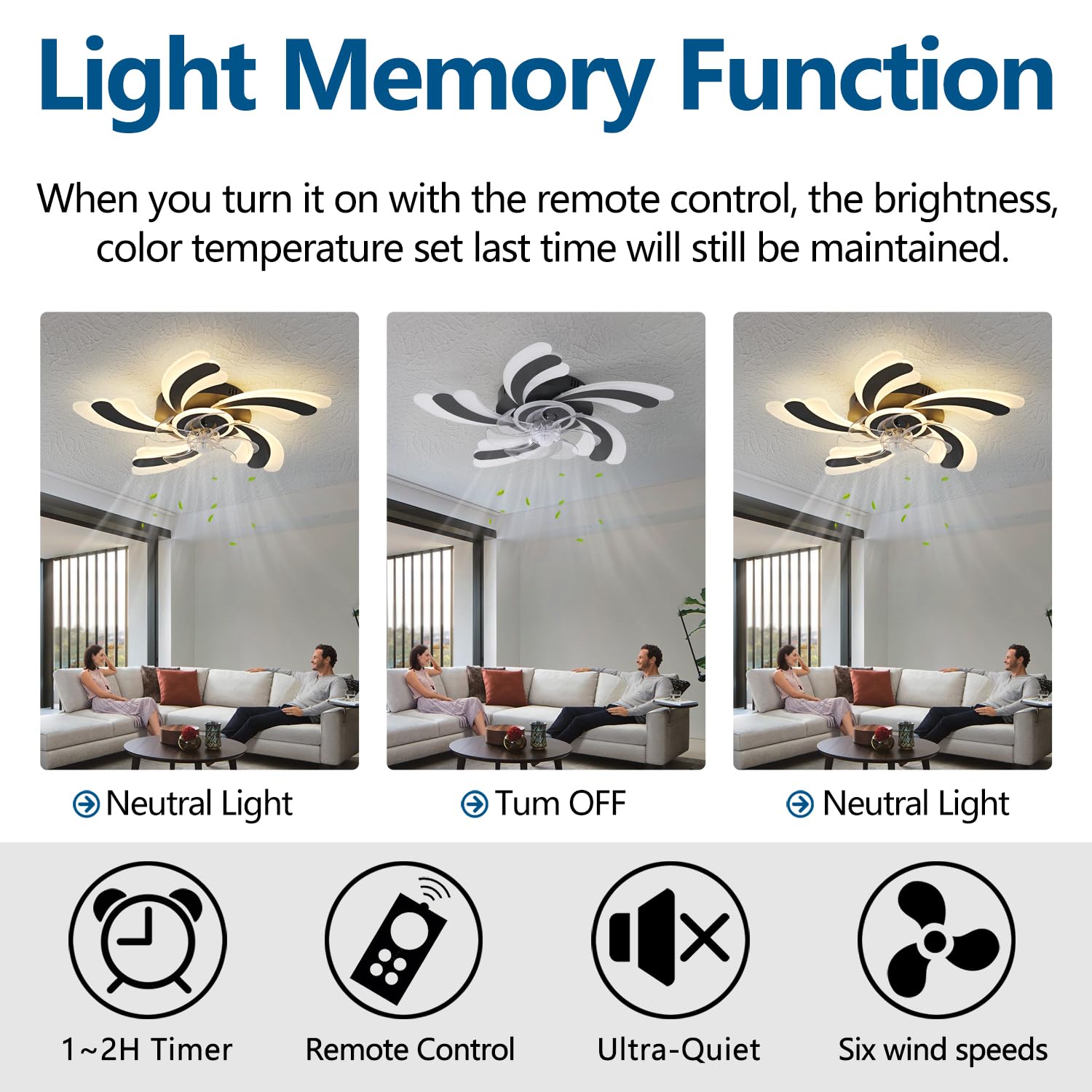 - 【Ceiling Fan Light with Memory Function】—It has a memory function. The color temperature and brightness of the light turned on with the remote control are the same as those of the last time the light was turned off. It is very user-friendly and avoids repeated settings.