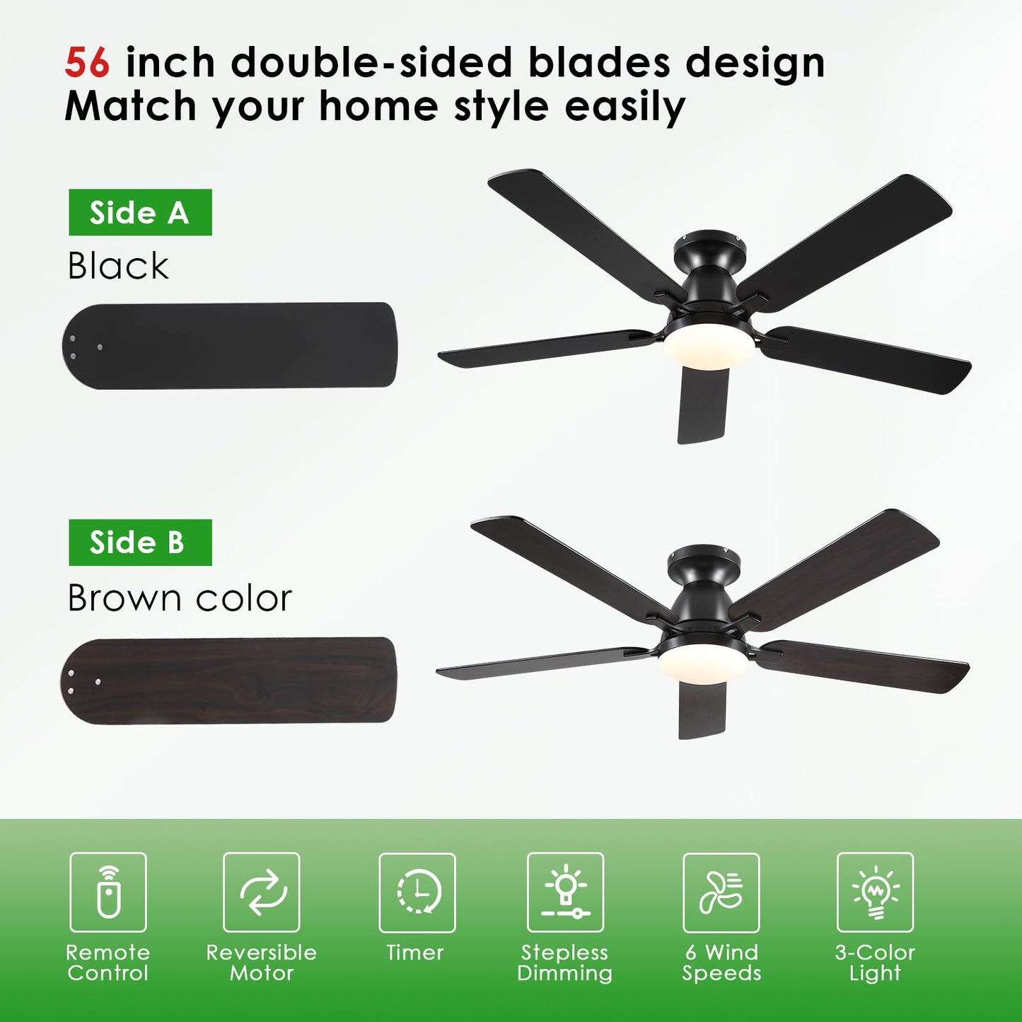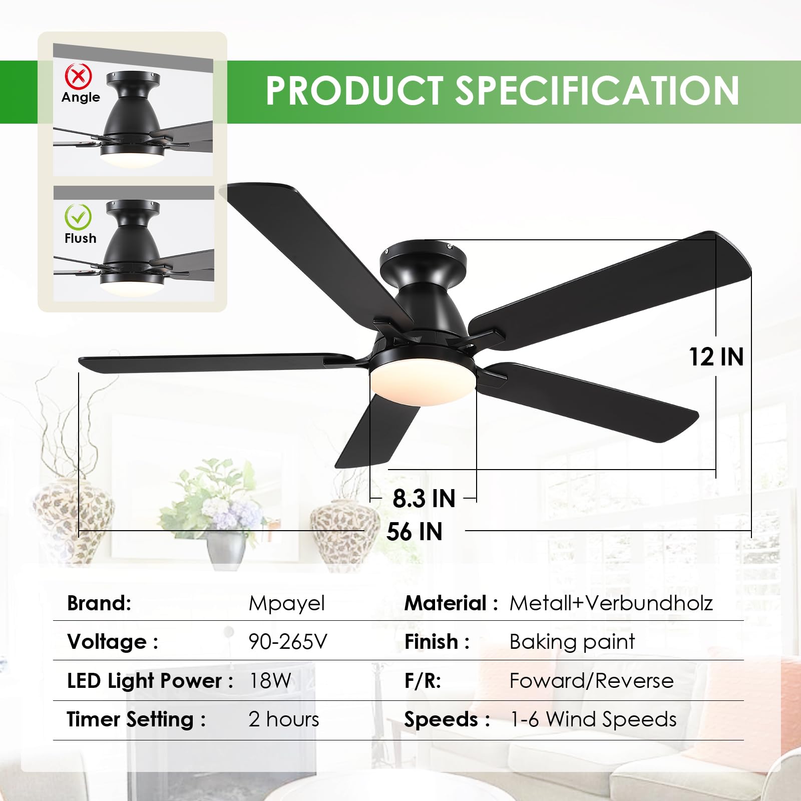 - ✅【Premium Quality and Durability】: Crafted with high-quality materials, our Flush Mount Ceiling Fans are built to last. The black finish adds a touch of sophistication to any room, while ensuring long-lasting performance. Rest assured knowing that our Ceiling Fans with Lights come with reliable after-sales service and support