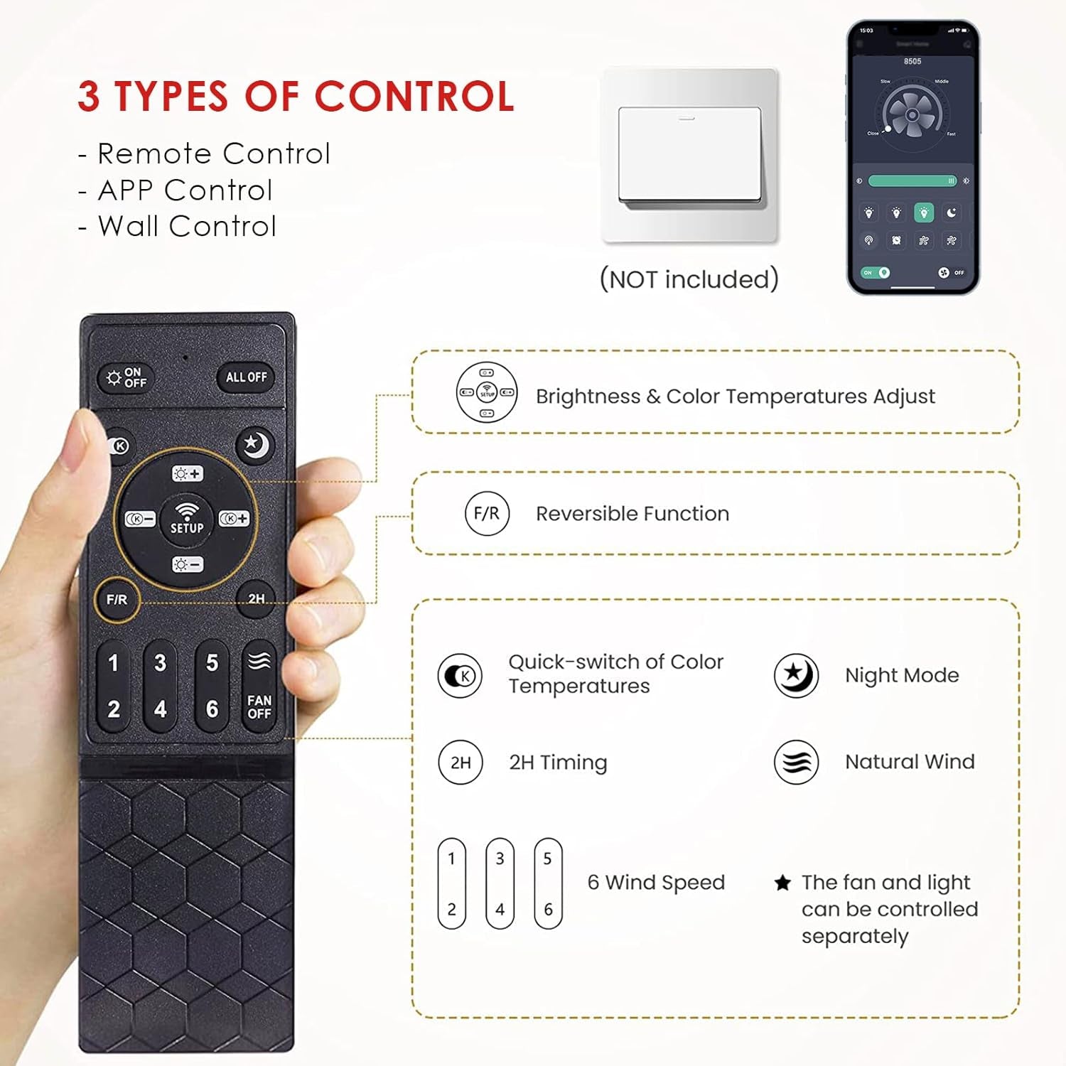 - Dimmable and Reversible Ceiling Fan: Create the perfect ambiance with adjustable lighting and switch the fan direction for year-round comfort.