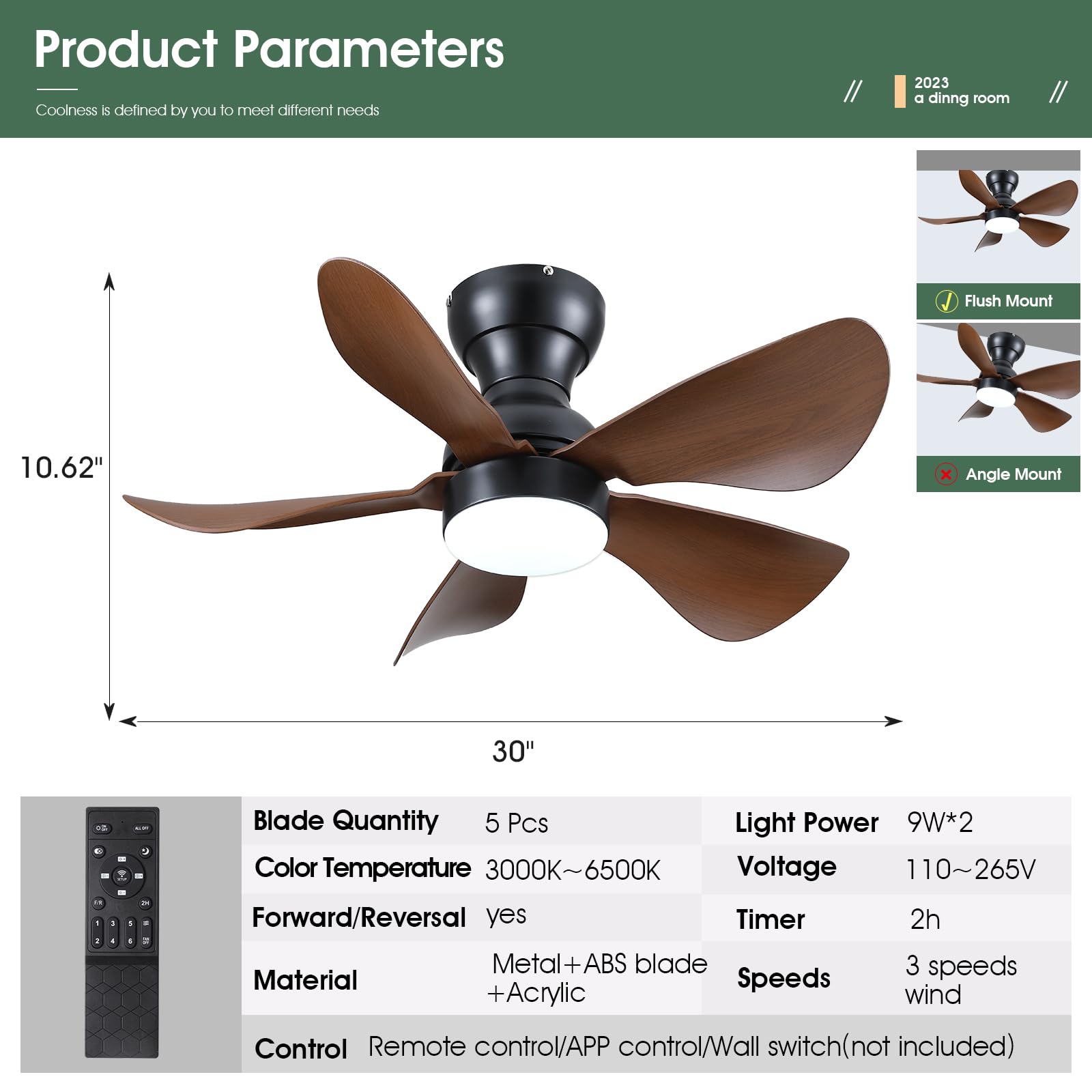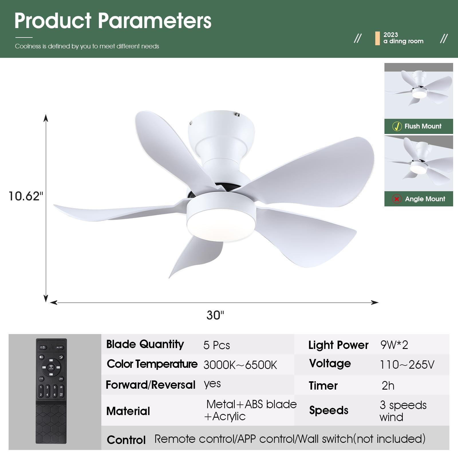 | Special Feature | Reversible, Adjustable Color Temperature, Dimmable, Timer, Remote Control |