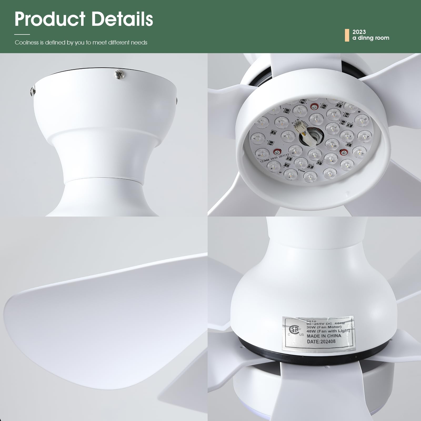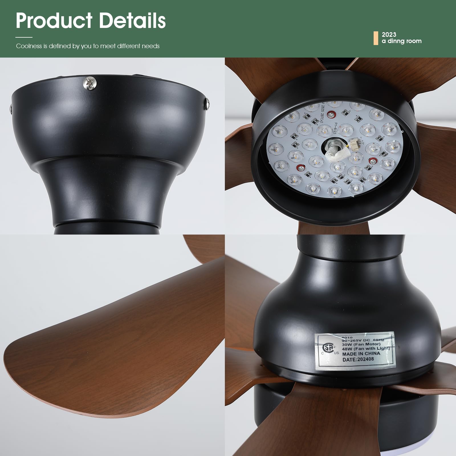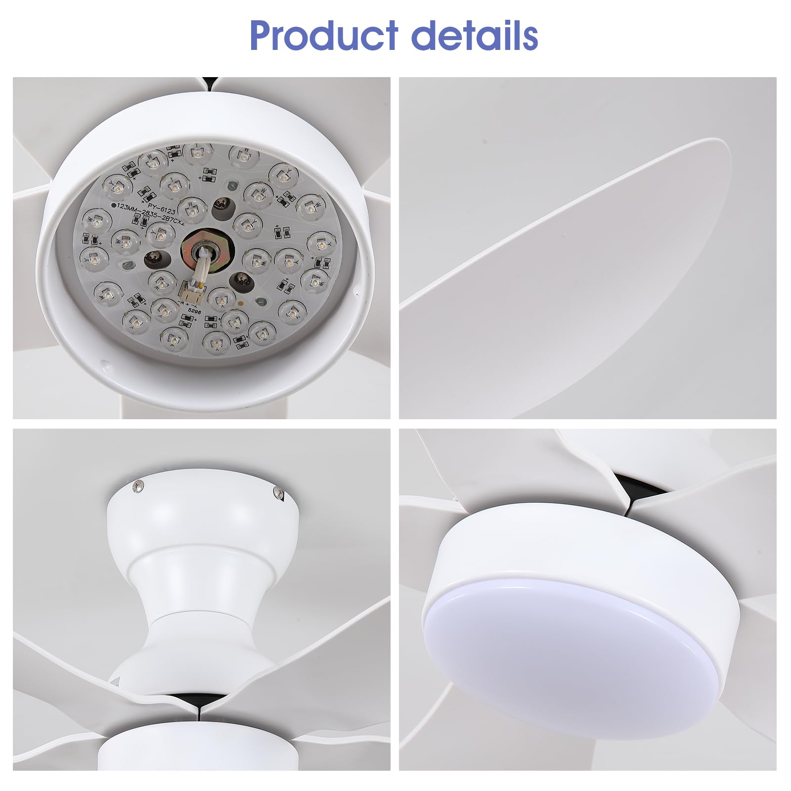 - 【High Quality】This ceiling fan is made of high-quality ABS material and stainless steel, which is strong and durable. The fan motor adopts pure copper motor, which has the characteristics of strong power and low noise.