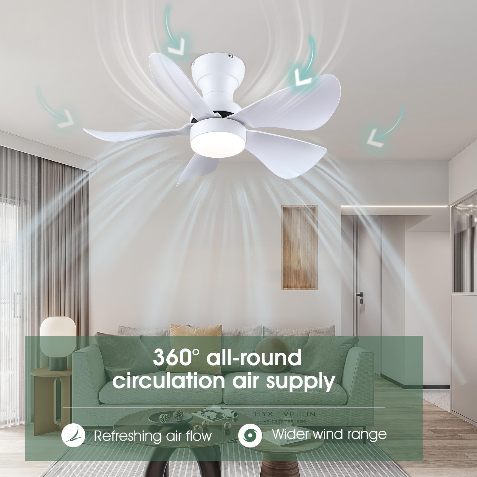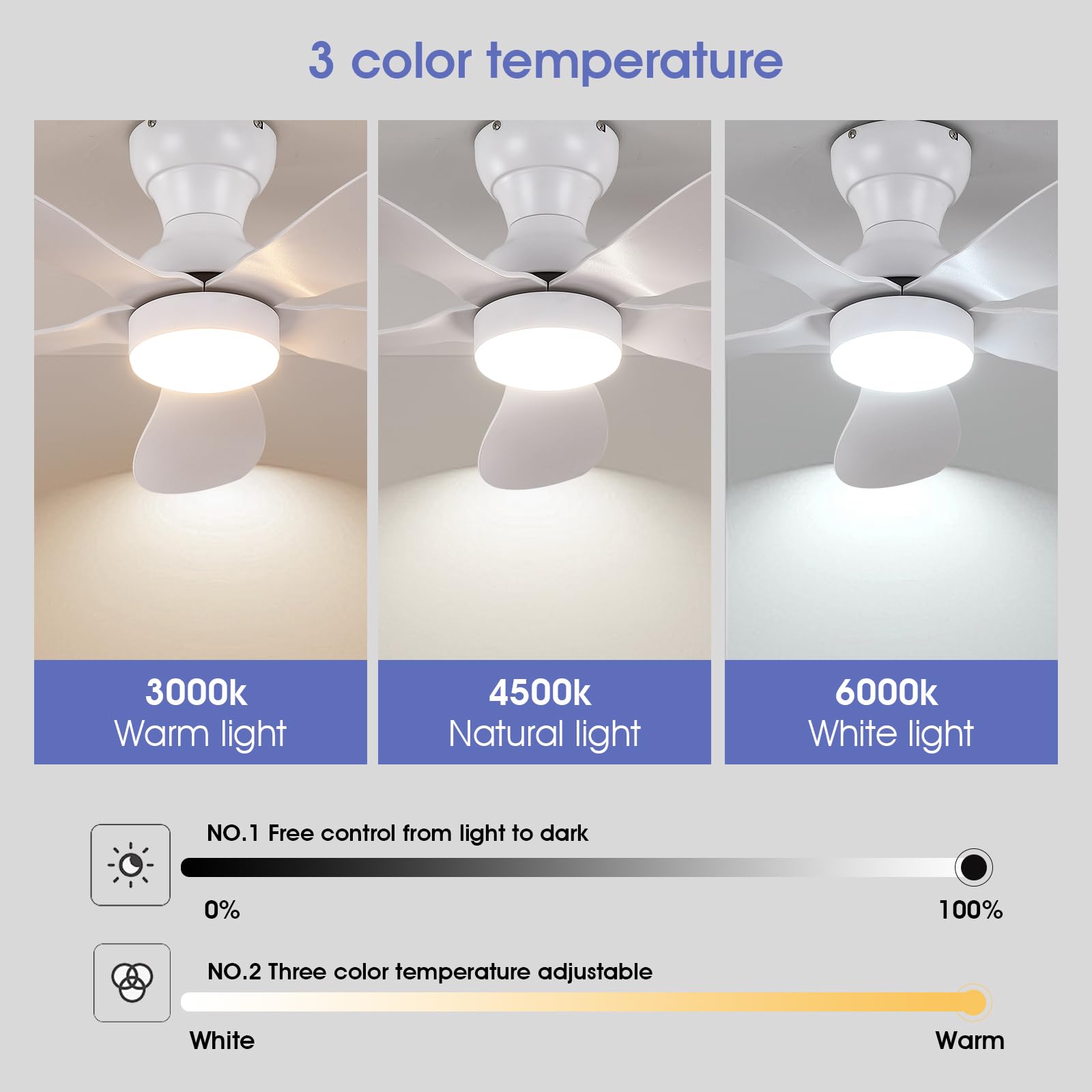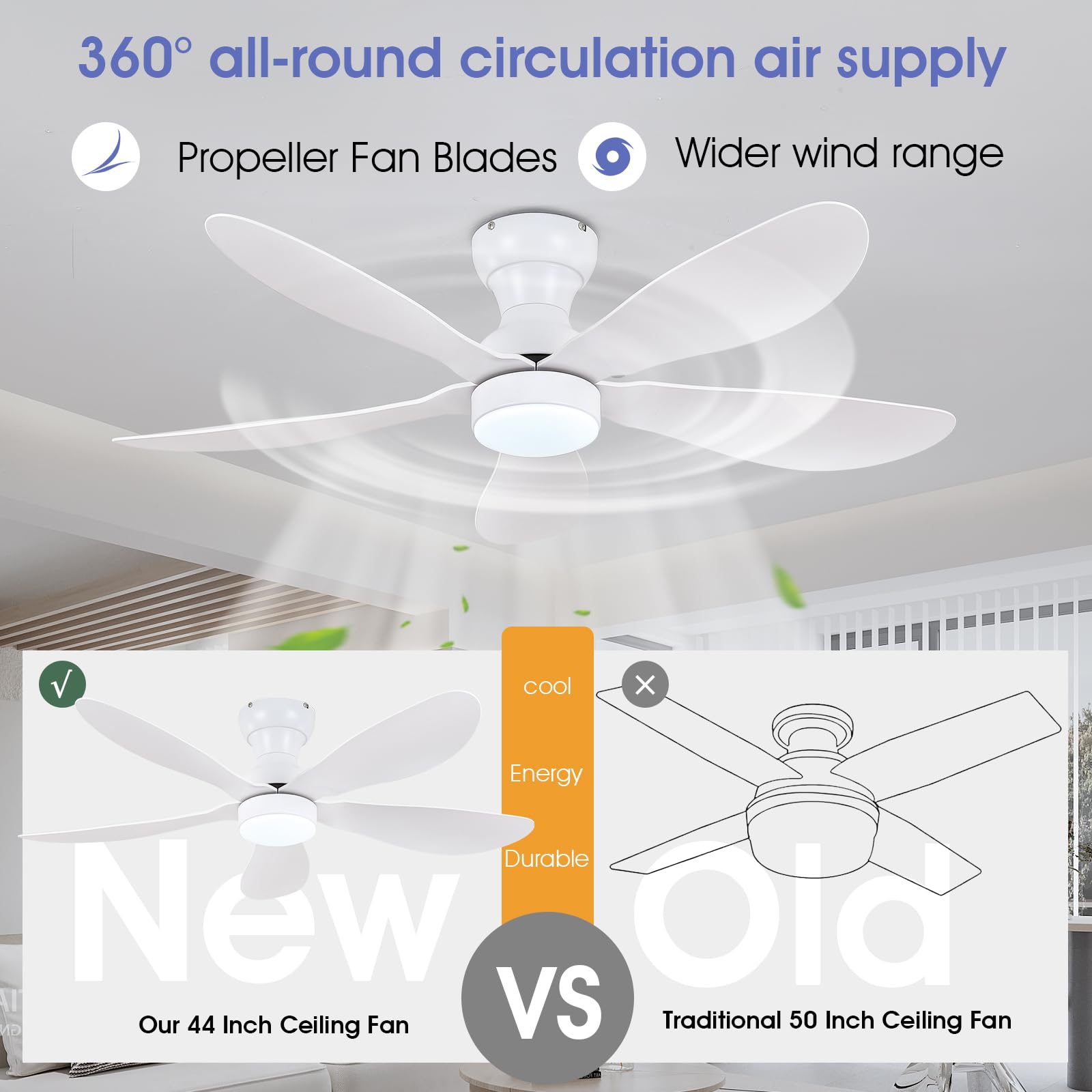 - 【High Quality】This ceiling fan is made of high-quality ABS material and stainless steel, which is strong and durable. The fan motor adopts pure copper motor, which has the characteristics of strong power and low noise.