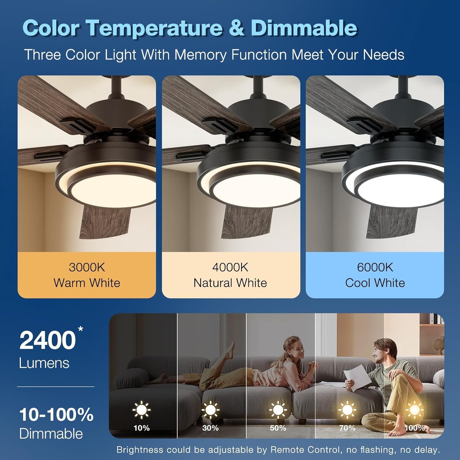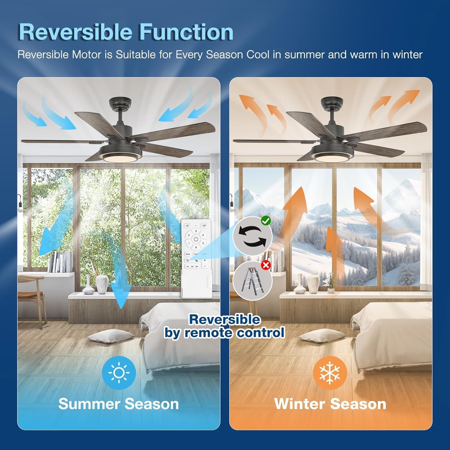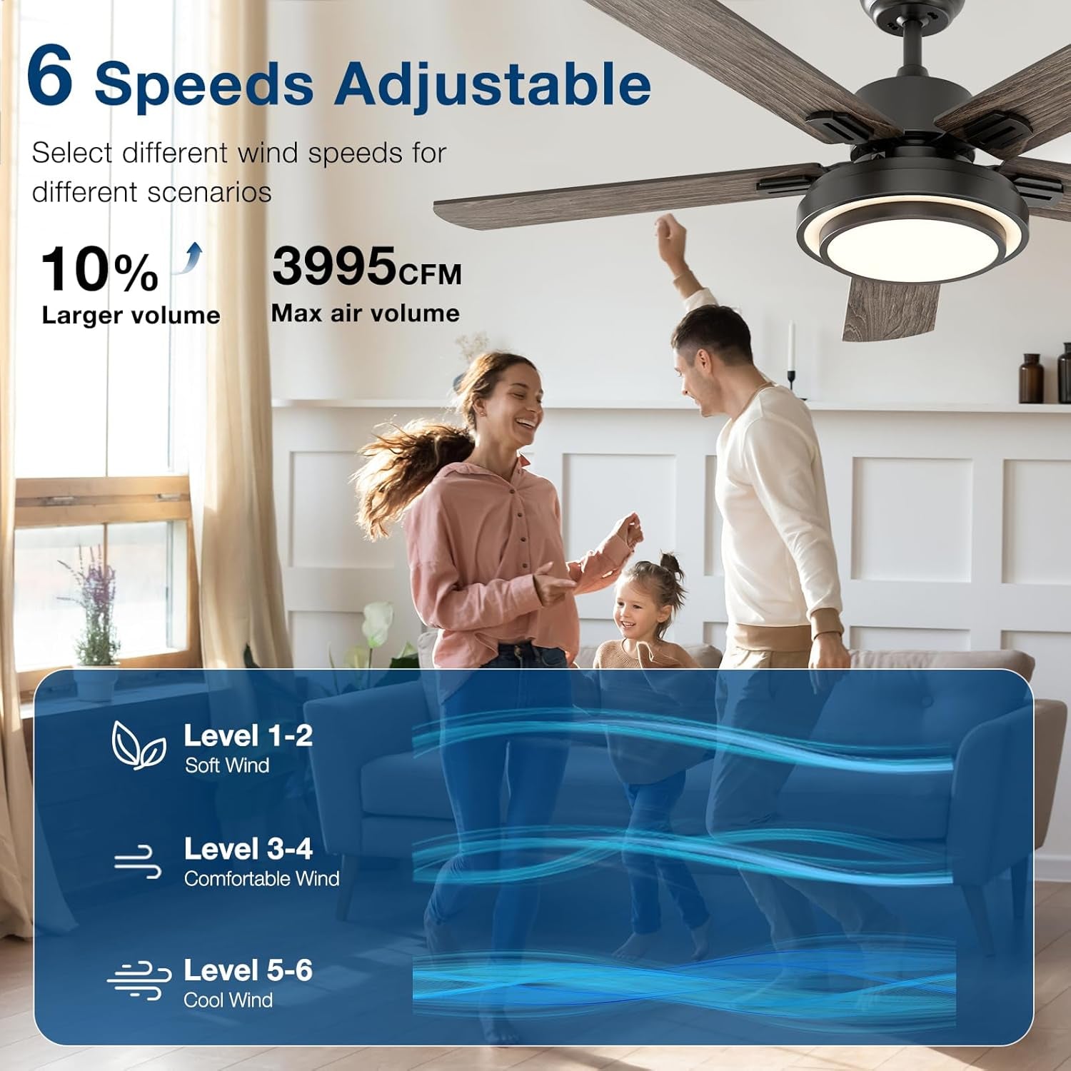 Ceiling Fans with Lights and Remote Control, 52 Inch, 6 Speeds