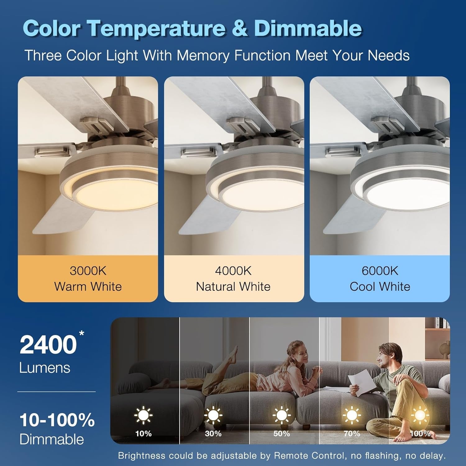 - Whisper-Quiet Operation: Equipped with a reversible DC motor, this ceiling fan ensures silent performance, making it ideal for homes with babies or elderly residents.