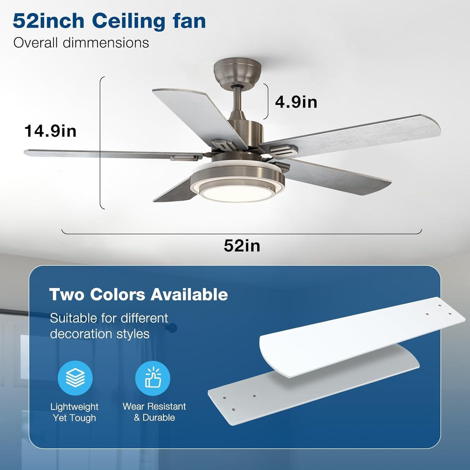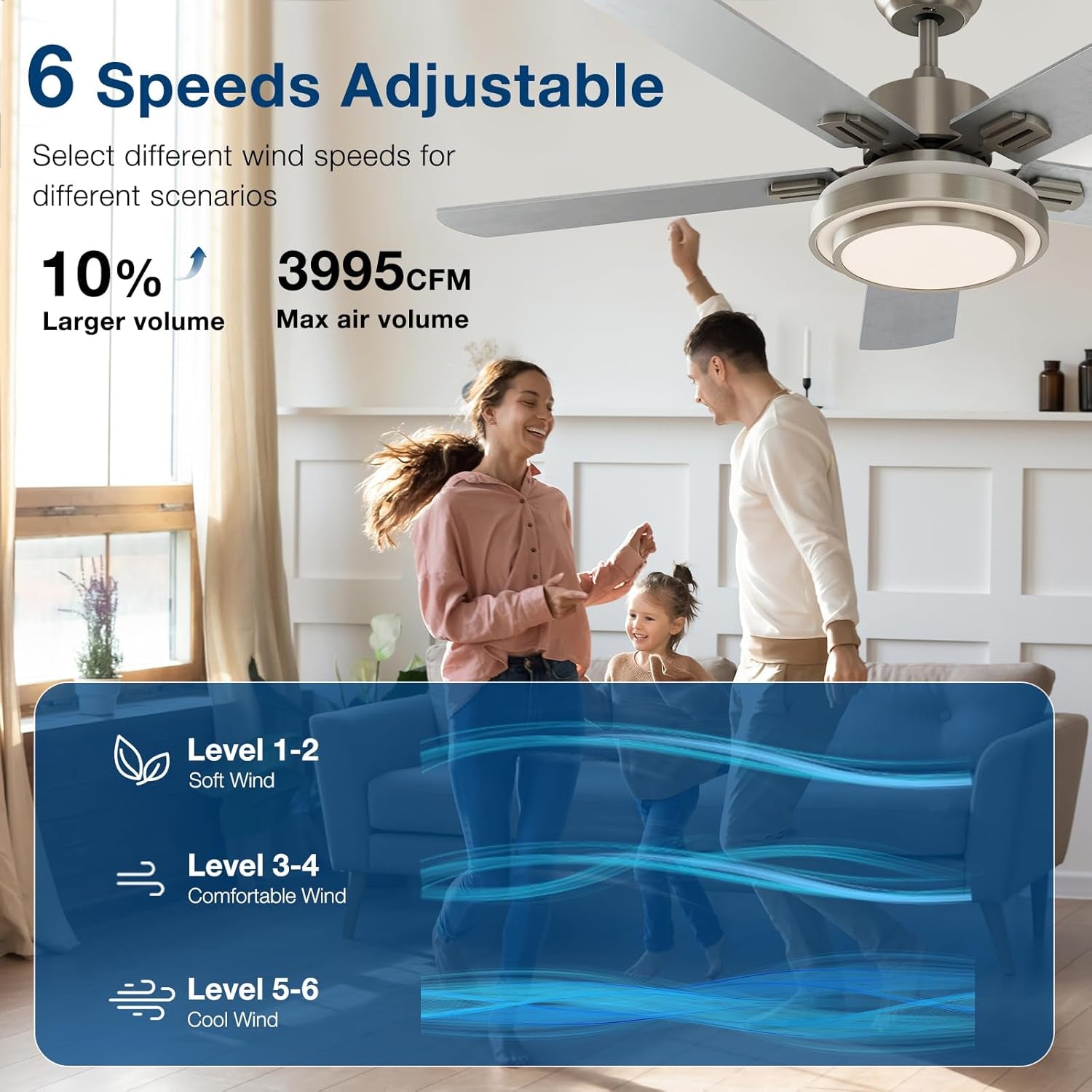 Ceiling Fans with Lights and Remote Control, 52 Inch, 6 Speeds