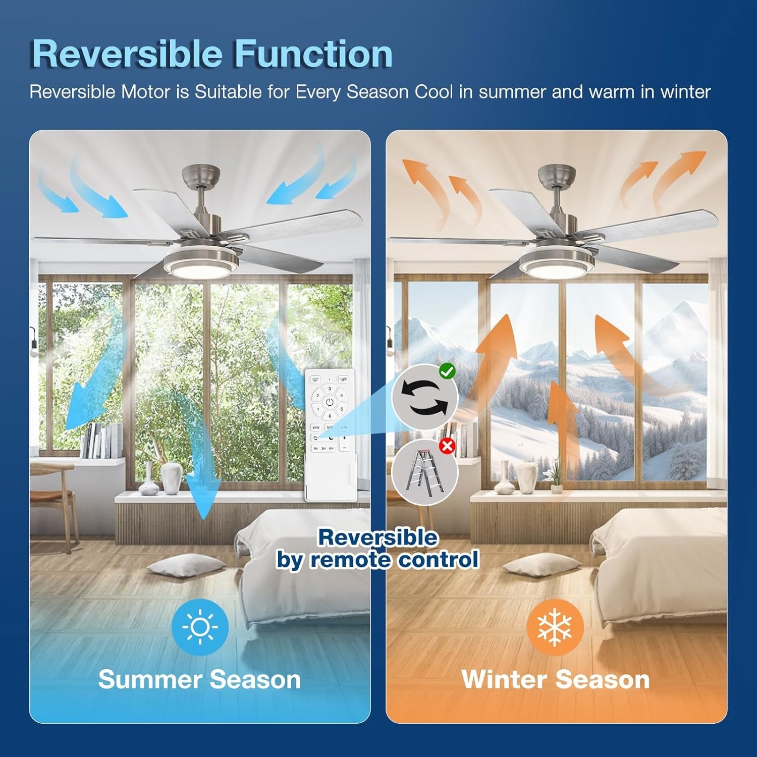 Remote-Controlled Reversible Ceiling Fan with Dimmable Lights
