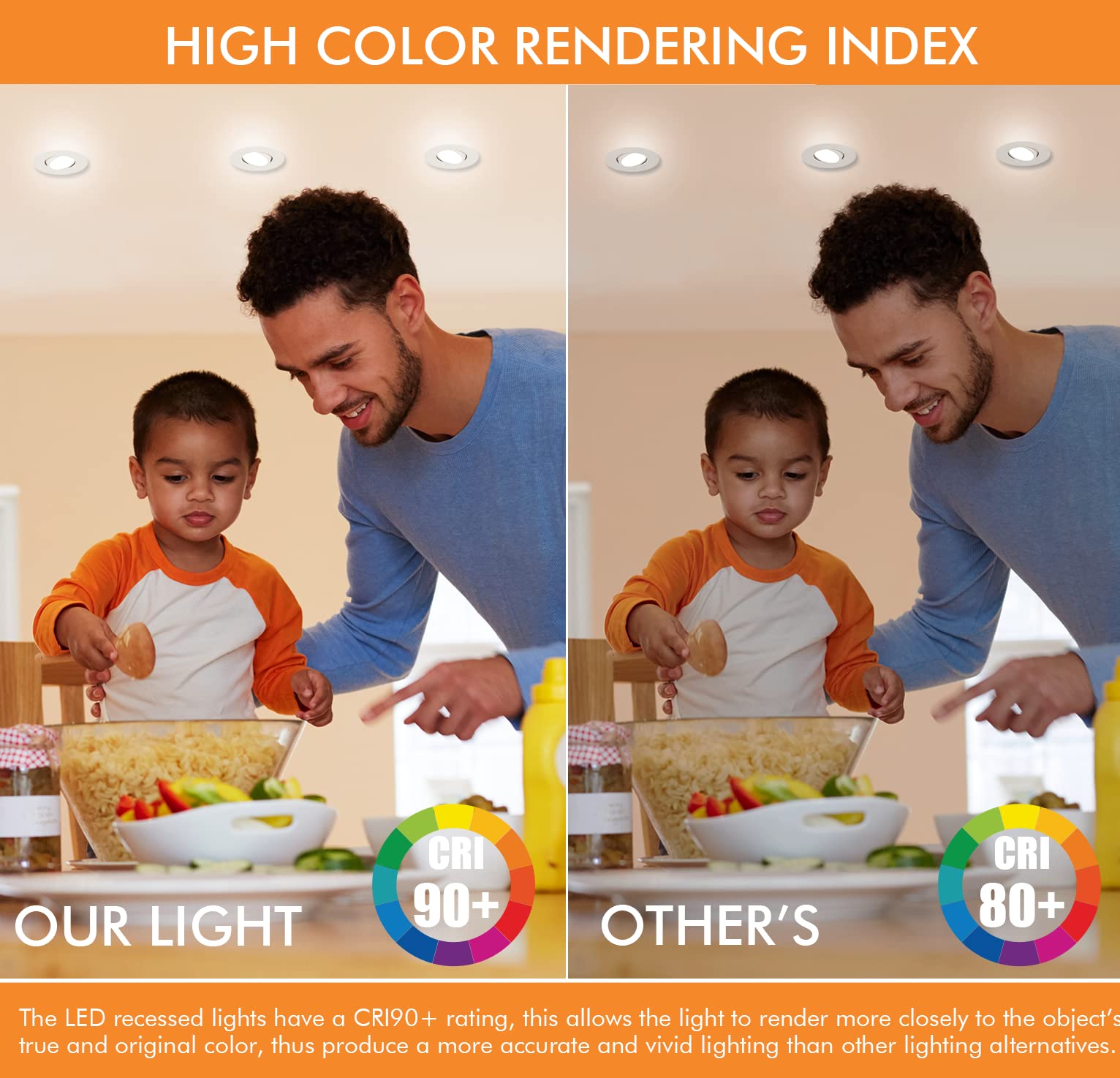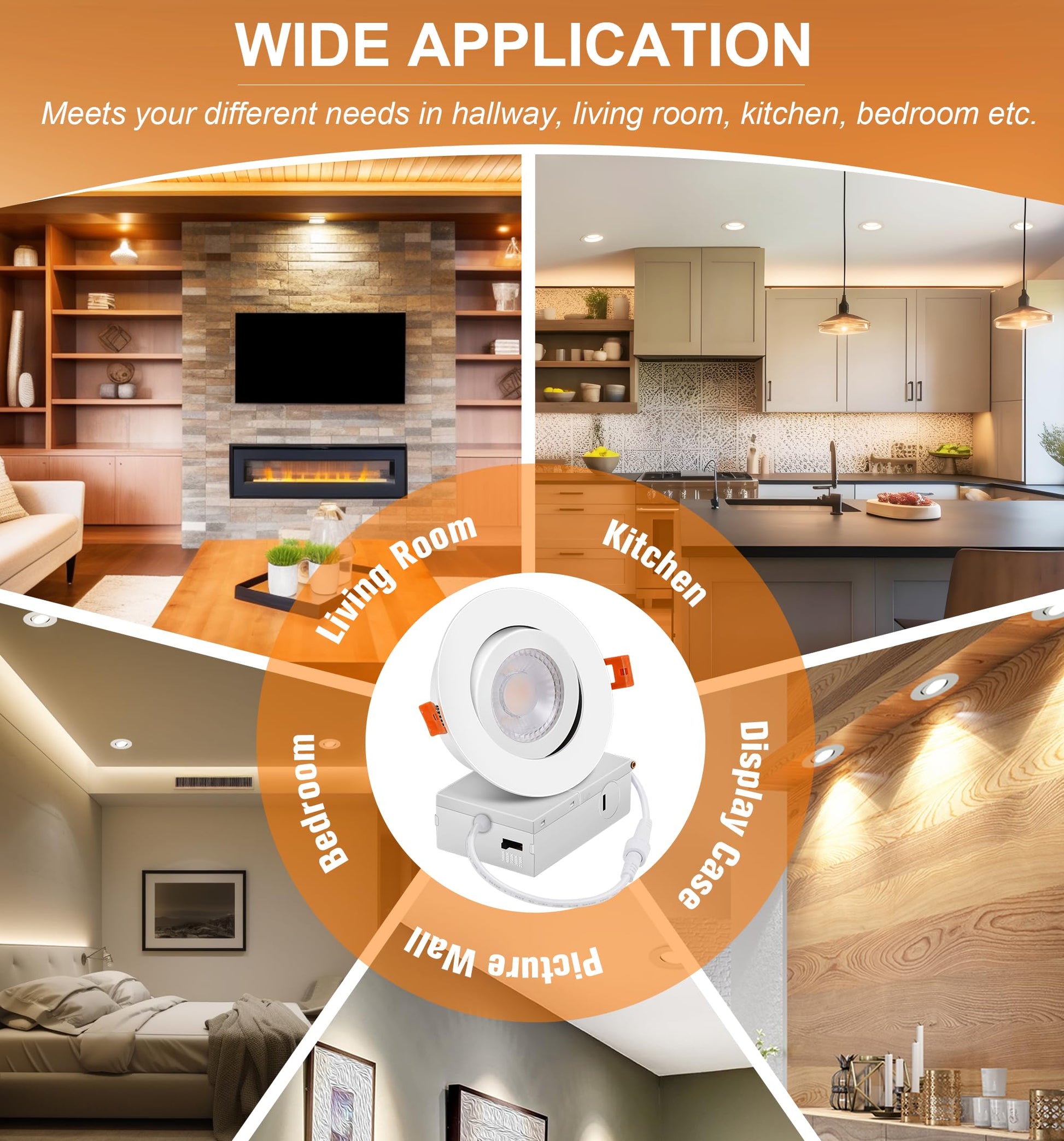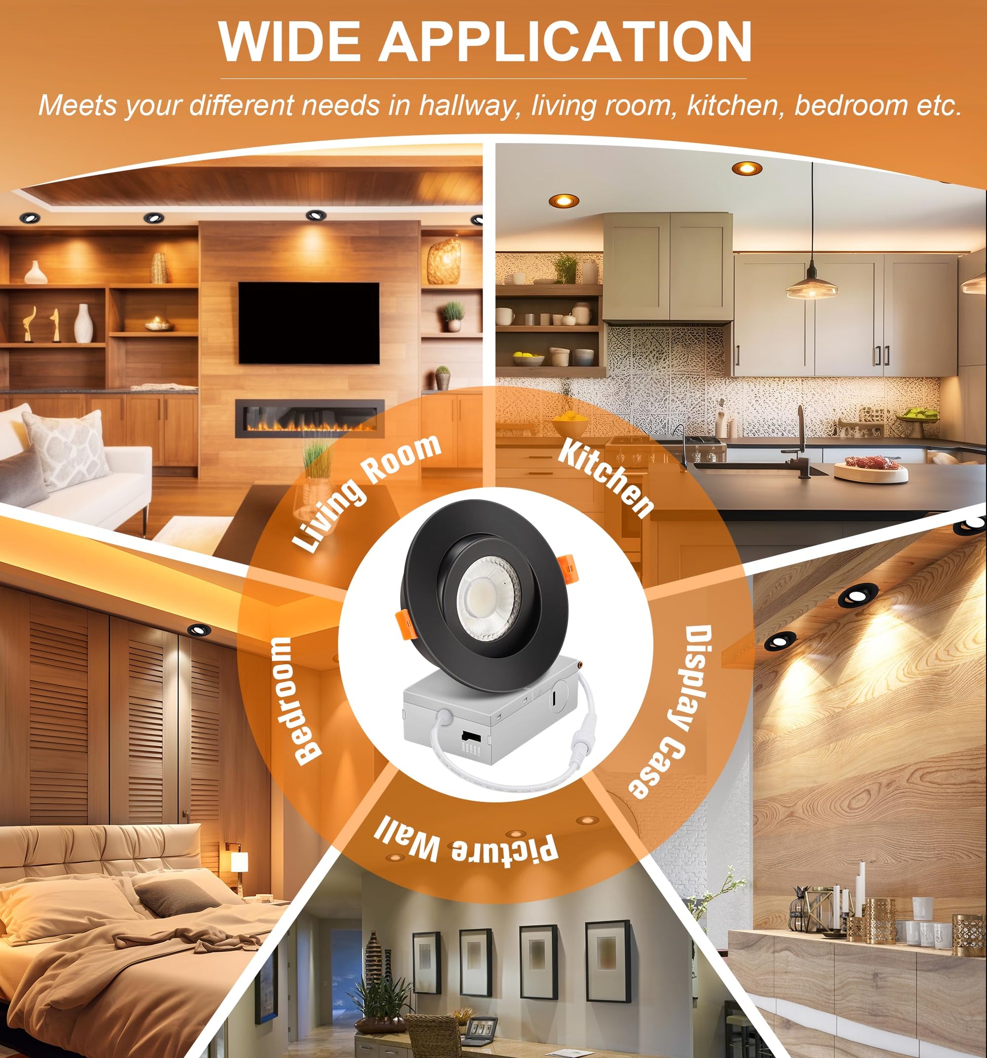 - 5 Color Temperature Selectable: 2700K/3000K/3500K/4000K/5000K in one fixture meets your different needs in hallway, living room, kitchen, bedroom and even walk-in closet etc.Just a click on the side of the box and you will choose the most-desired color that best fit in your house
