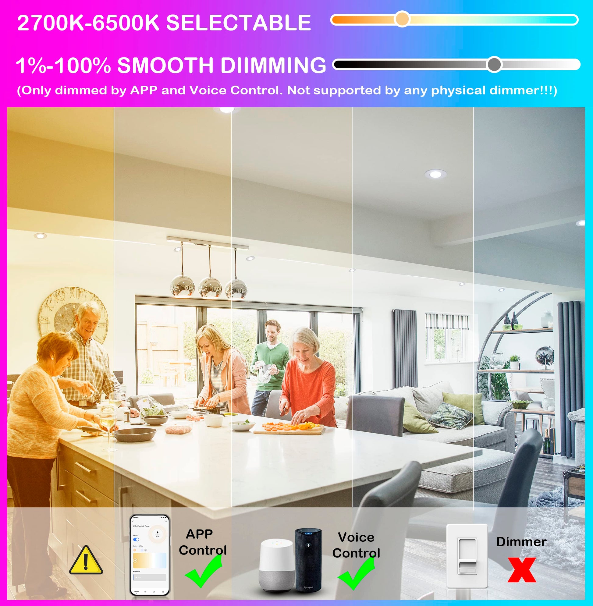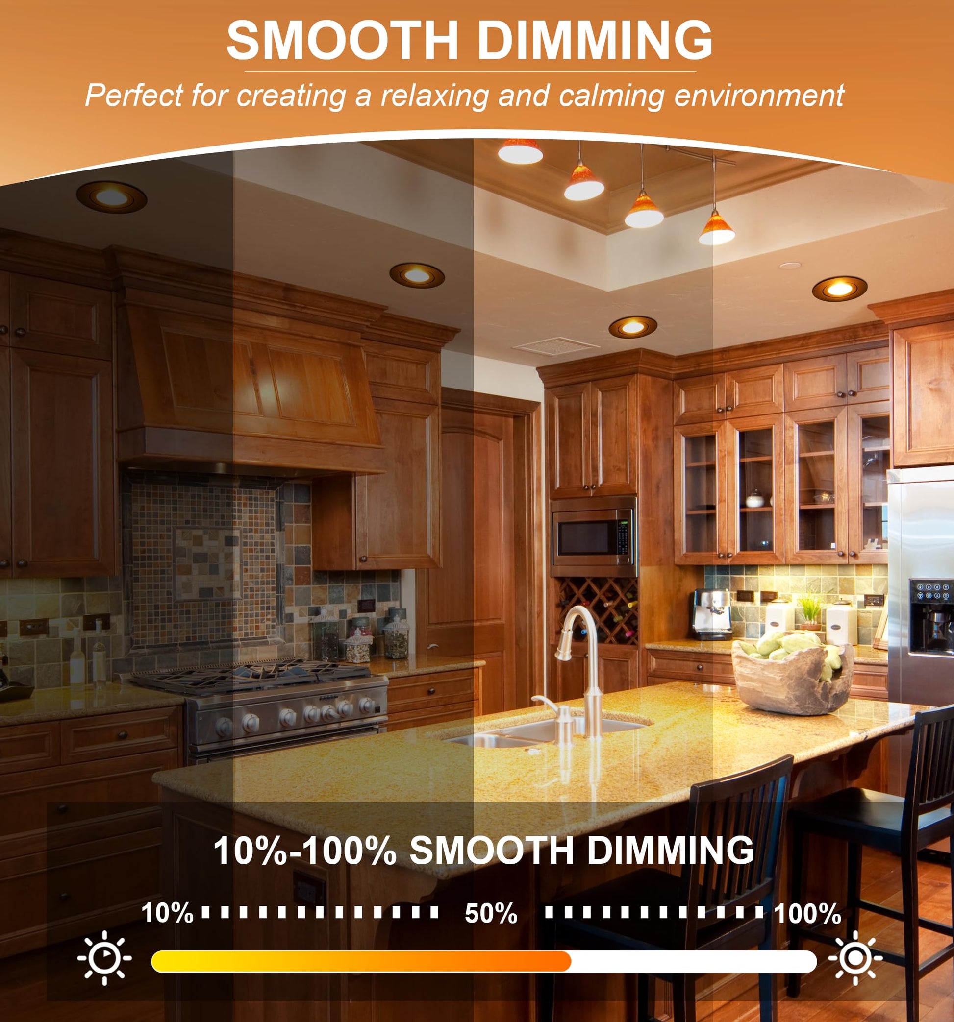 - Dimmable LED Light: Works with most LED dimmers,flexibly adjust the brightness from 10%-100%. We provide a dimmer list for you reference. You can set it to the lowest light without flicker and noise