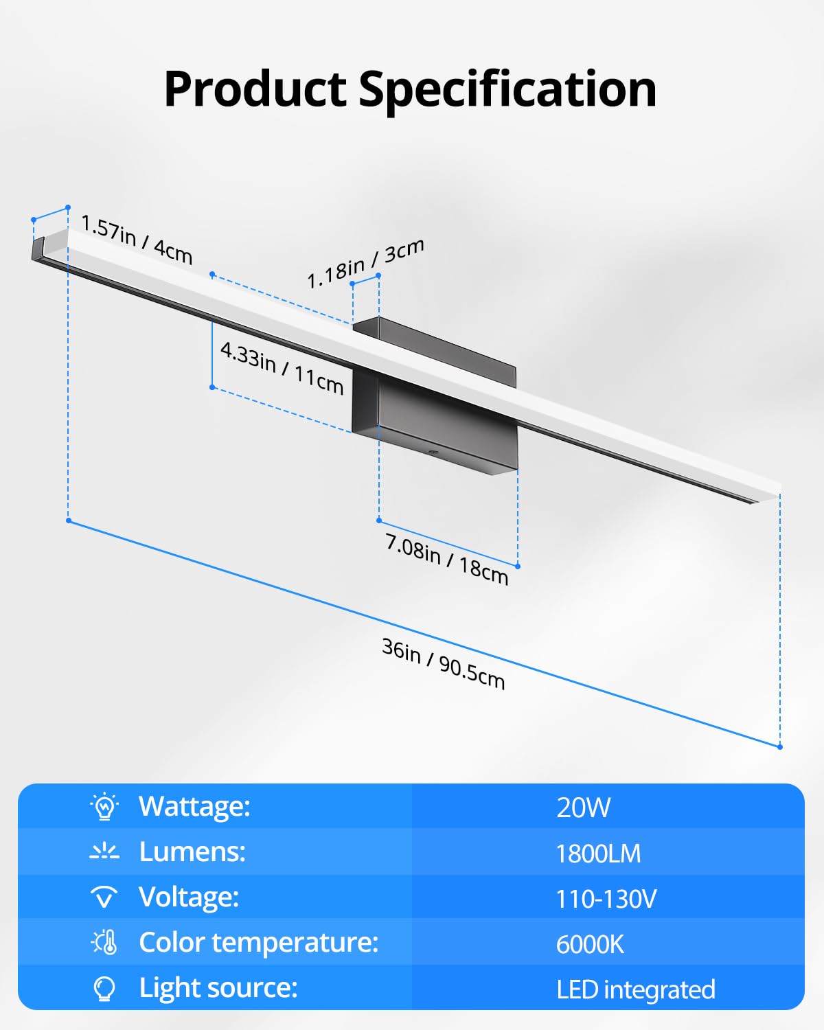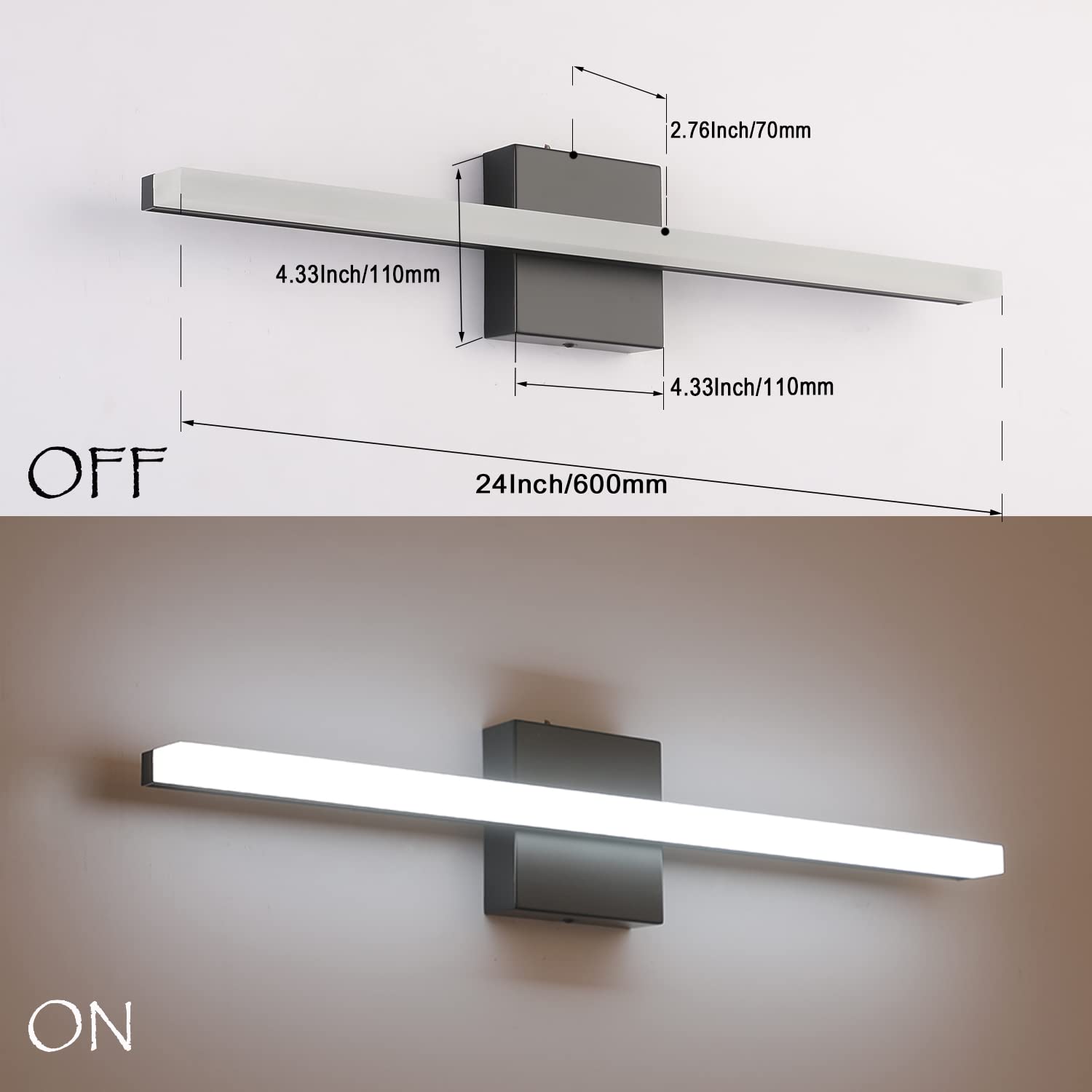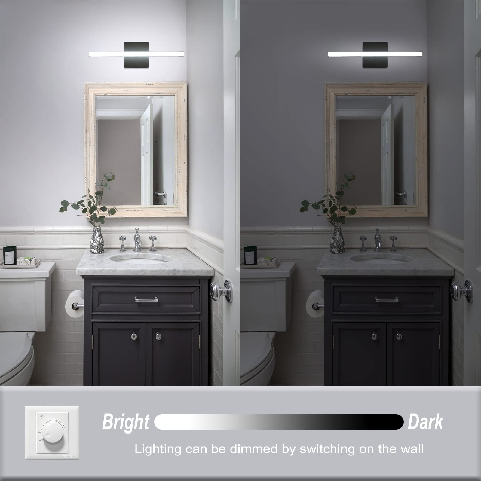 - MODERN DESIGN: The Bathroom Lamp features a sleek and modern design, with 9W/16Inch, providing 800LM of cool white light at a color temperature of 6000K. The softer light color creates a comfortable atmosphere in your bathroom. Not dimmable.